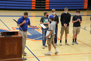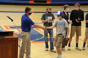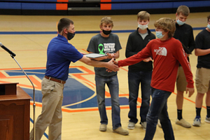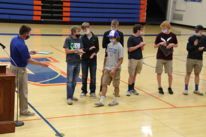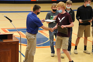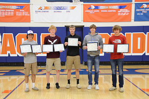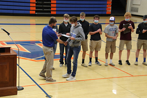 The 2021 NCHS Boys Basketball team held their awards ceremony in the NCHS Gym. Awards were given based on team voting and stats. The LIC conference team members were also recognized.