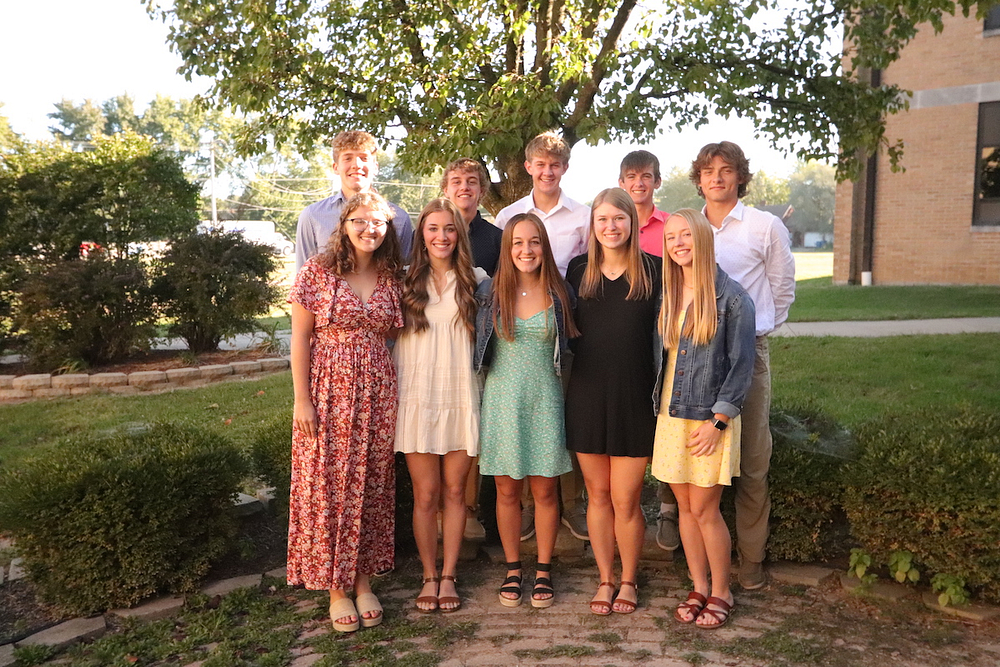 King and Queen Candidates Front Row: Left to Right: Abbie Fitzmaurice, Laney Hemrich, Alli Kirts, Emma Rauch, Kayla Kocher. Second Row: Trevor Haarman, Marc Jansen, Owen Mahaffey, Ben Street, Carder Reich.