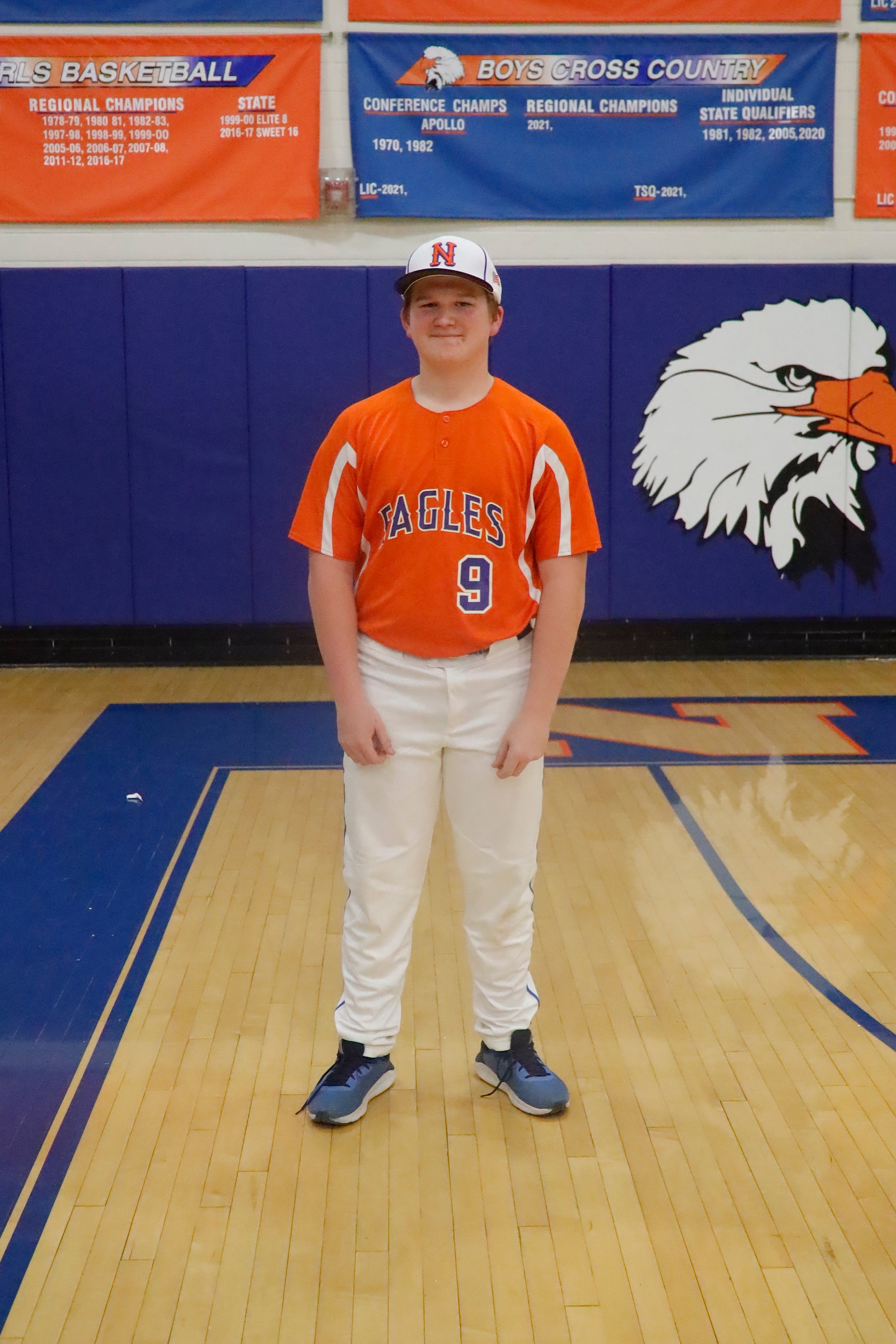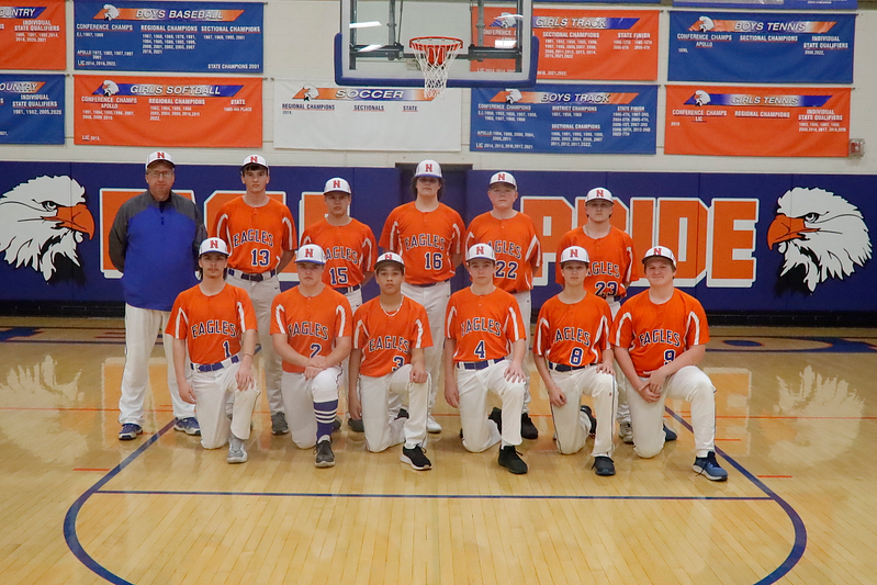 Front Row: Left to Right: Jordan Walker, Logan Ochs, Dexter Fulton, Drake Wolf, Luke Farley, Dominic Baltzell. Second Row: Coach Brad Harris, Wade Ochs, David Ferguson, Carson Barthelme, Reed Tharp, Kohlten Barthelme. Not Pictured Grant Ochs and Seth Ochs.