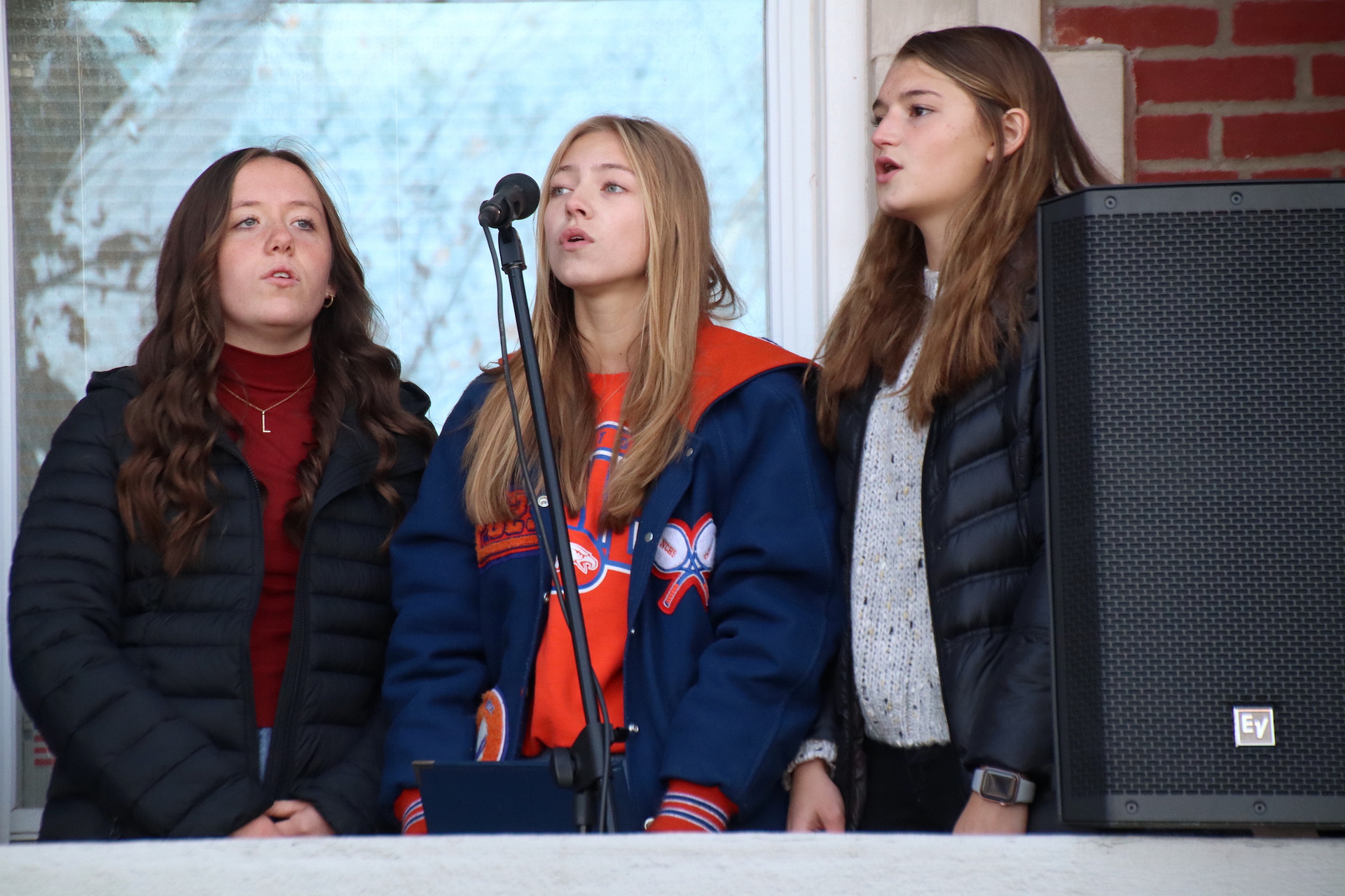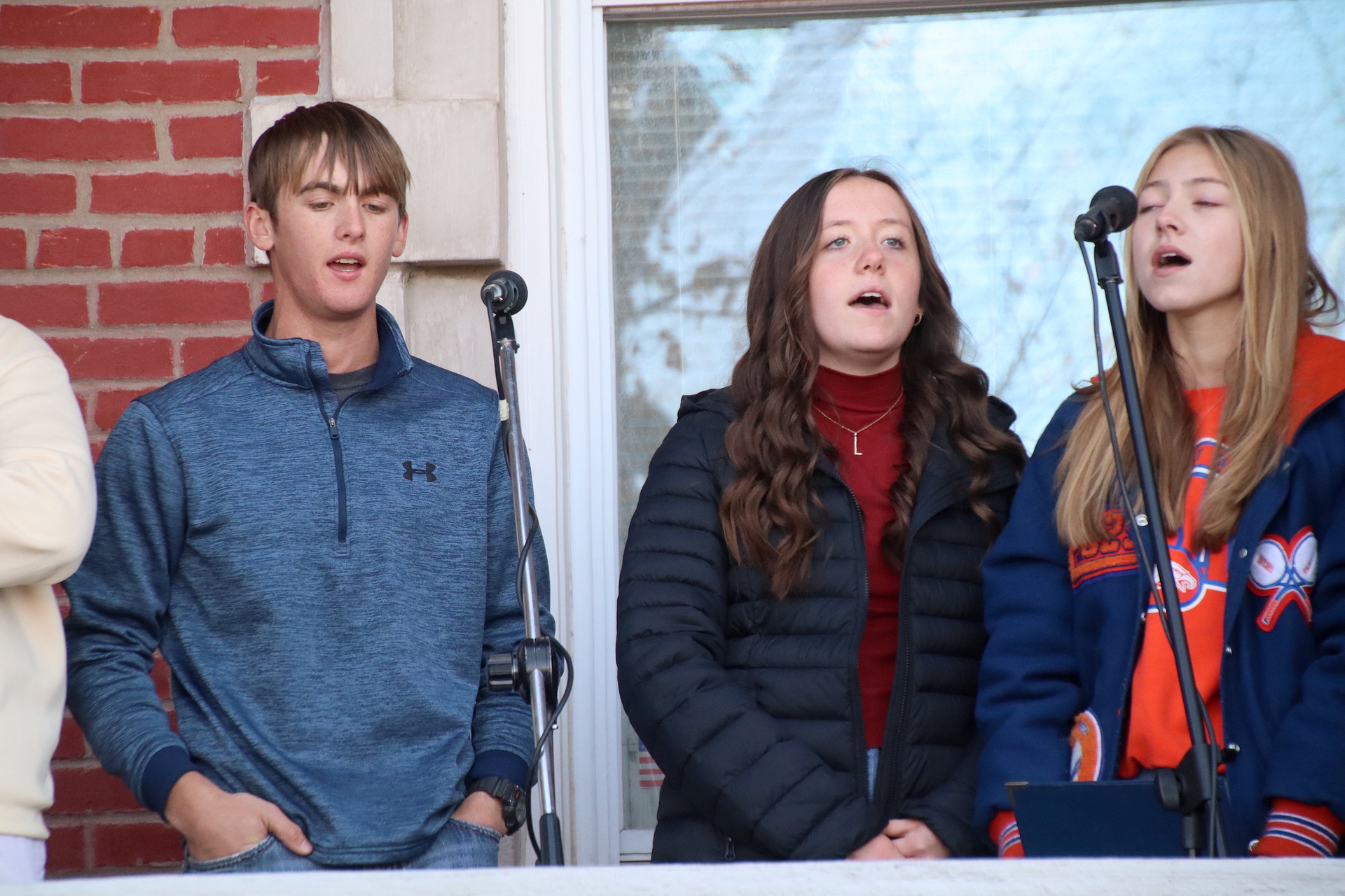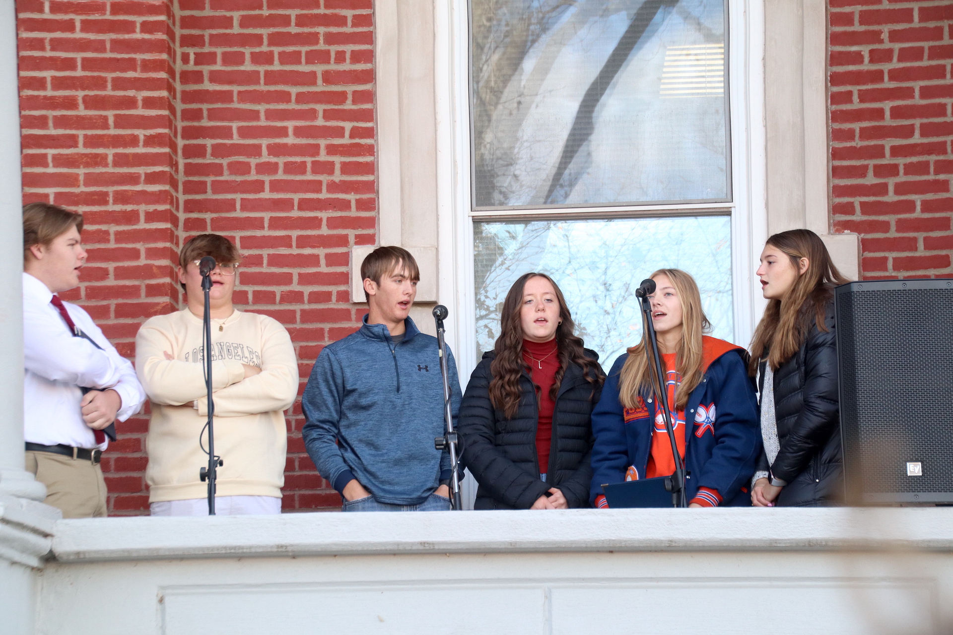 The Star Spangled Banner was sung by Lucy Bierman, Johnathan Blecha, Garridan Goss, Ella Radke, Charlotte Schackmann, and Isaac Street. The Pledge of Allegiance was led by the Jasper County Girl Scouts. The group above then sang Battle Hymn of the Republic.