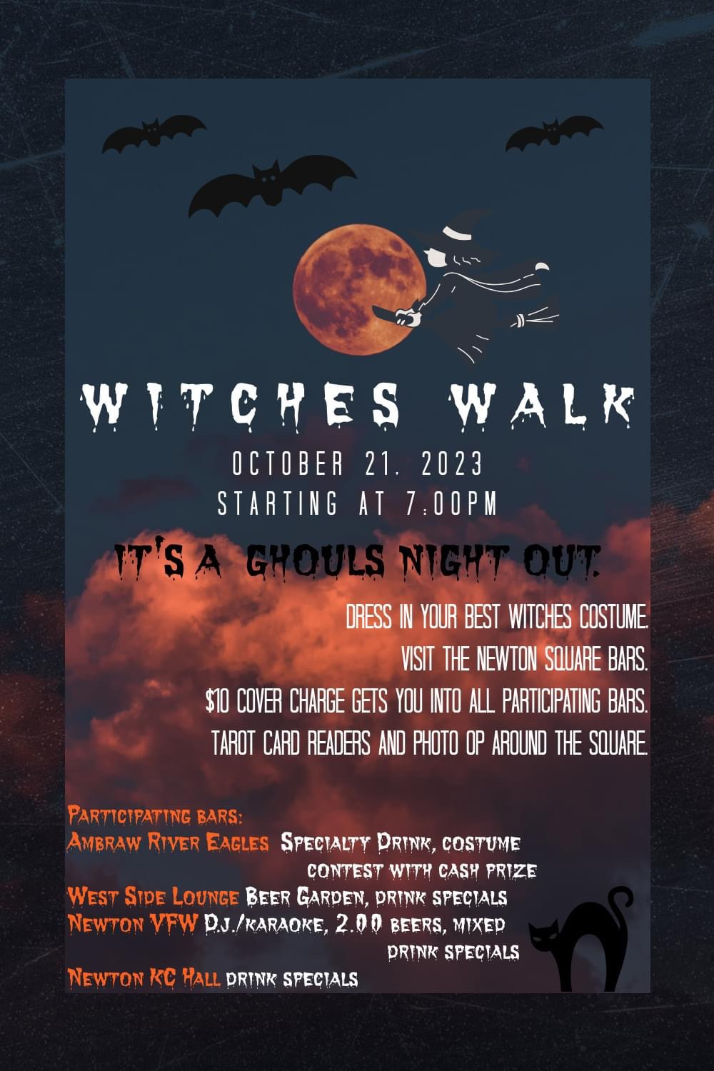 While the daylight is for the children, when the sun goes down the witches come out. Come join the cackling clan of witchy women as they stroll around the square drinking the magical concoctions created craftily by local artisans by the light of the moon. On October 21st, at 7:00