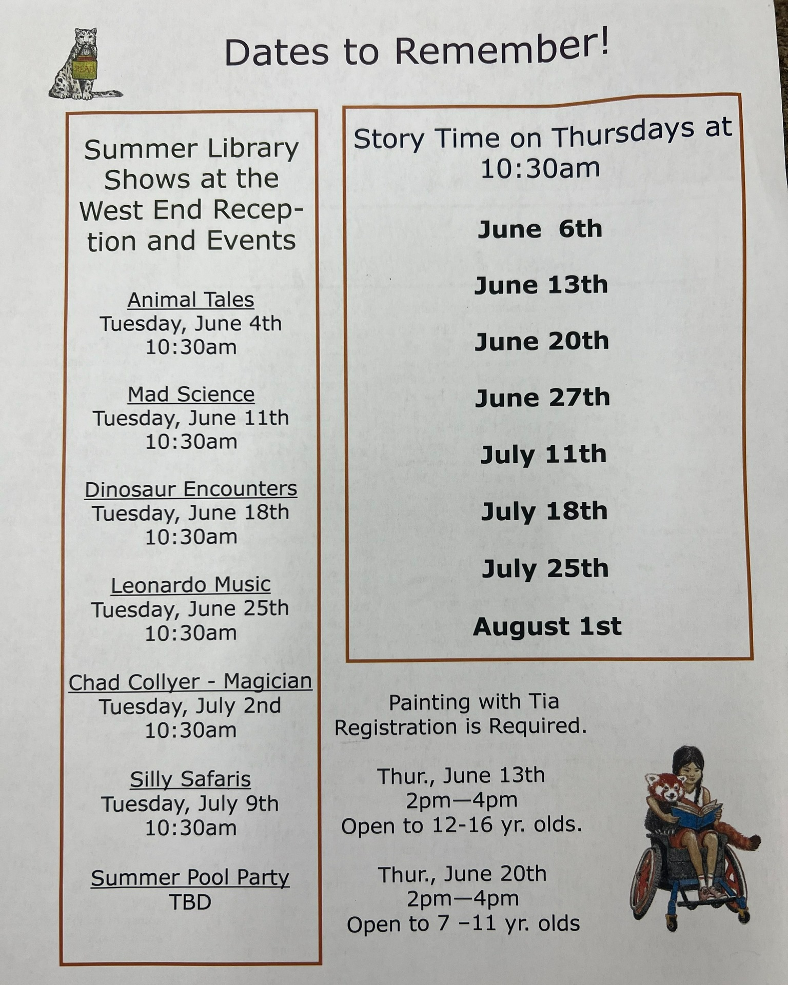 The Newton Public Library will be having its Summer Reading Shows starting on June 4th and going to July 9th at West End Reception and Events 202 Museum Drive in Newton. The shows are free to the public. All programs will be on Tuesdays and will start at 10:30 am.