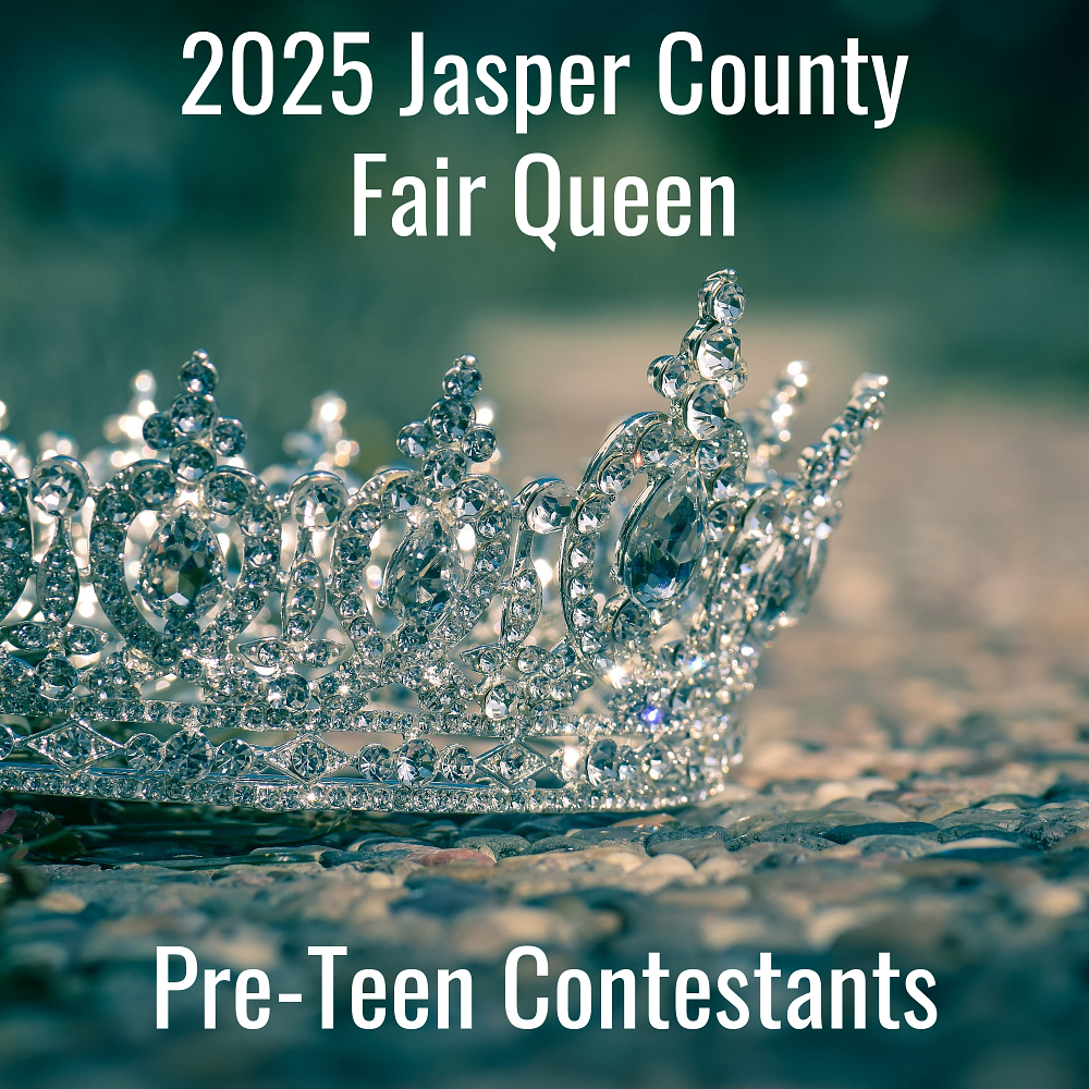 The 2025 Pre-Teen contestants will take the stage on June 22 at 7:30 pm during the 2025 Miss Jasper County Fair Queen contest on the stage at the Jasper County Fairgrounds. The pre-teen candidates will compete for the Pre-Teen crown and will be joined by the Little Miss participants, Jr. Miss candidates, and the Miss candidates.