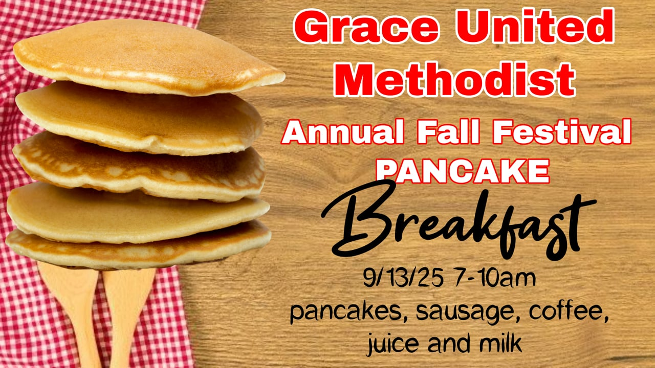 Grace United Methodist Church is excited to announce its Annual Fall Festival Pancake Breakfast on Saturday, September 13th, 2025. The event will run from 7:00 AM to 10:00 AM and is open to everyone in the community. This beloved tradition promises a delicious morning with pancakes, sausage, and an array