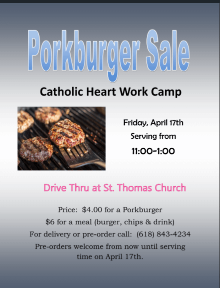 A community favorite is making its return as the Catholic Heart Work Camp prepares to host a Porkburger Sale later this week in Newton. The event is set for Friday, April 17, with serving scheduled from 11 a.m. to 1 p.m. at St. Thomas Church. Community members can take advantage