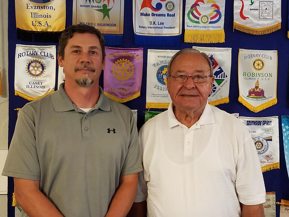 The Newton Rotary Club heard from Chris Himelick (left), General Manager of Skyline Steel in Newton on July 16. He related the history of his company from its years as Frichtl Welding to its purchase by NuCor in 2012. It is one of eleven facilities in the U.S., and currently employs 28 team members, with an average length of employment there between 20 and 25 years. They produce sheet metal fabrications, rolled pipe, and extensively test their welds, making metal components for construction. Chairperson was Rotarian Louis Ochs (right).