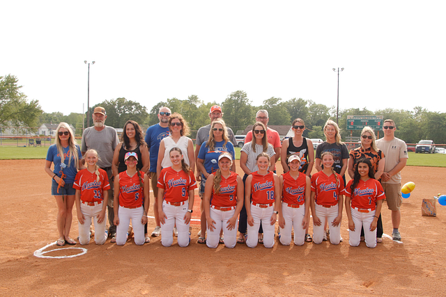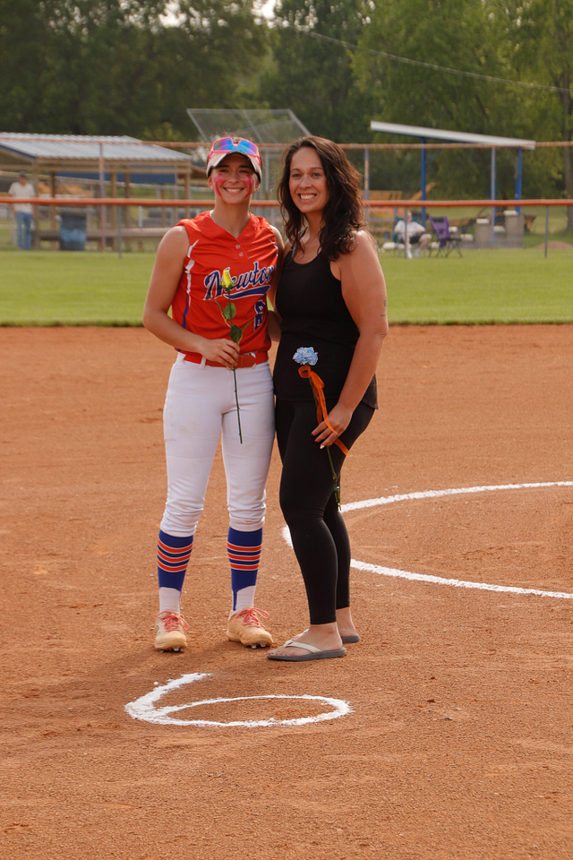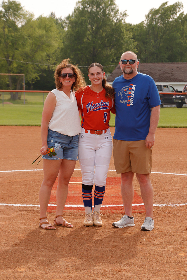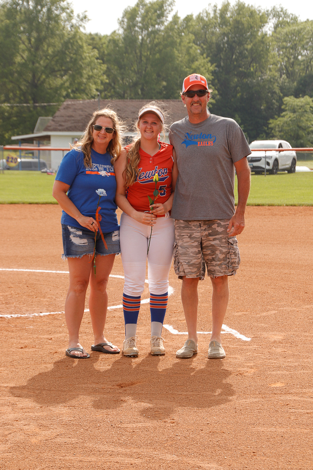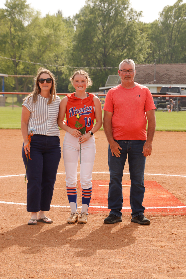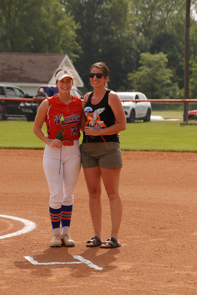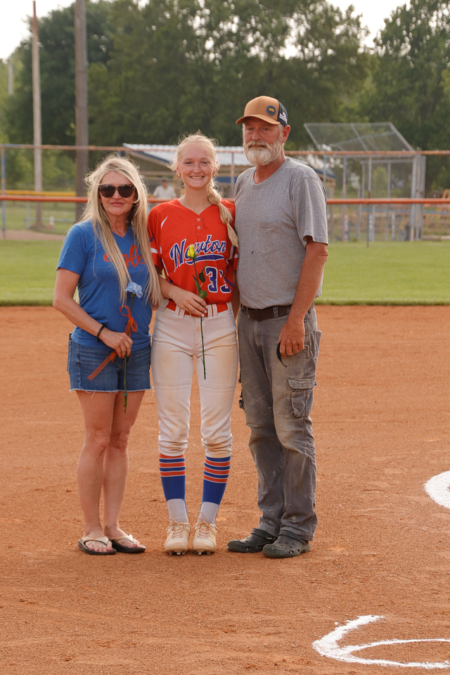 The Newton Eagles Softball team recognized their senior players before the game versus Charleston. The game also was an end for an over 40 year career mixed with umpiring and coaching softball in Jasper County. The winning senior night game was the final game for Steve Hardwick and the Lady Eagles sent him out in style with a win over the Lady Trojans of 4-1.