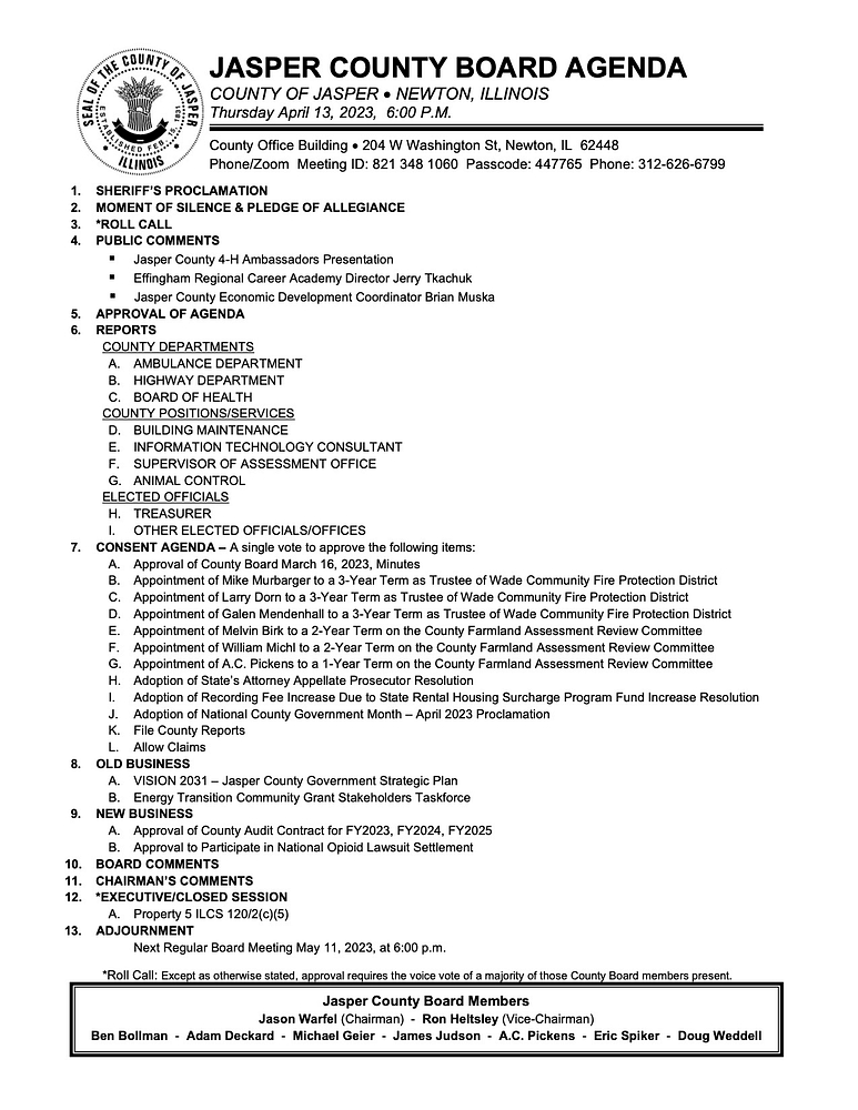 JASPER COUNTY BOARD AGENDA