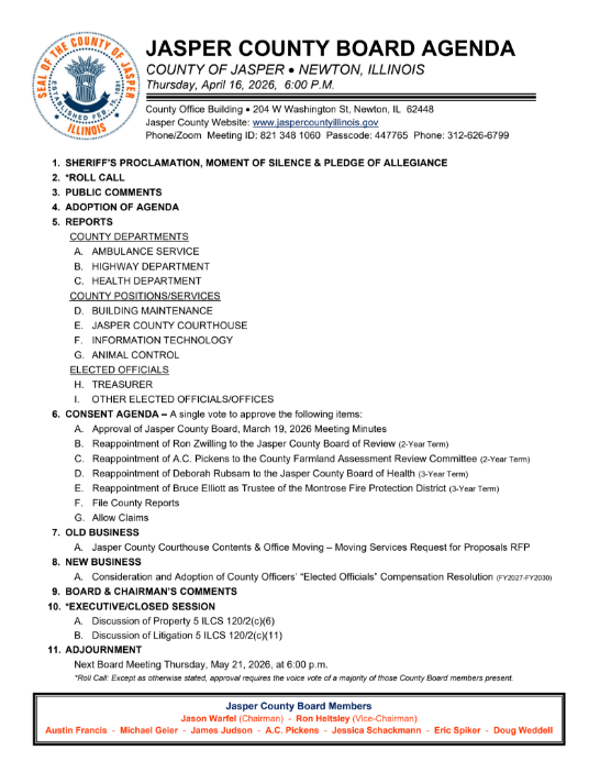 April Jasper County Board Agenda