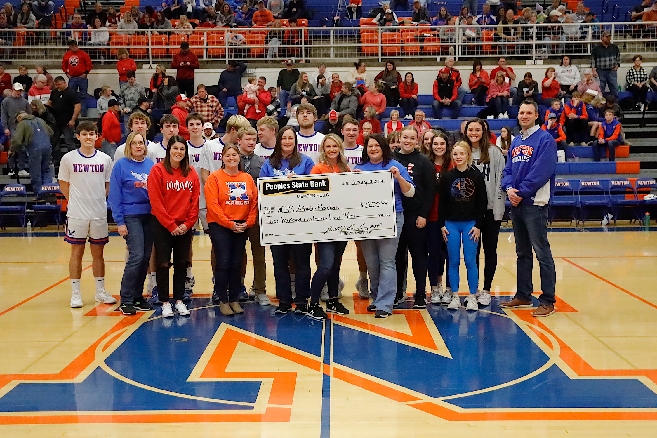 The Newton Eagles defeated Mt. Carmel with a final score of 53-42. Scoring for the Eagles included Dylan Gier and Parker Wolf with 16 each (7,0,2 for 2) and (4,1,5 for 8). Caden Nichols scored 15 (5,1,2 for 2). Gus Bierman scored 5 points (1.0.3 for 6). Jacob Weber scored