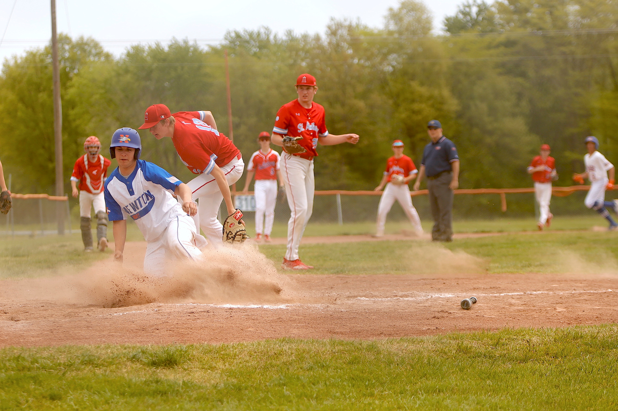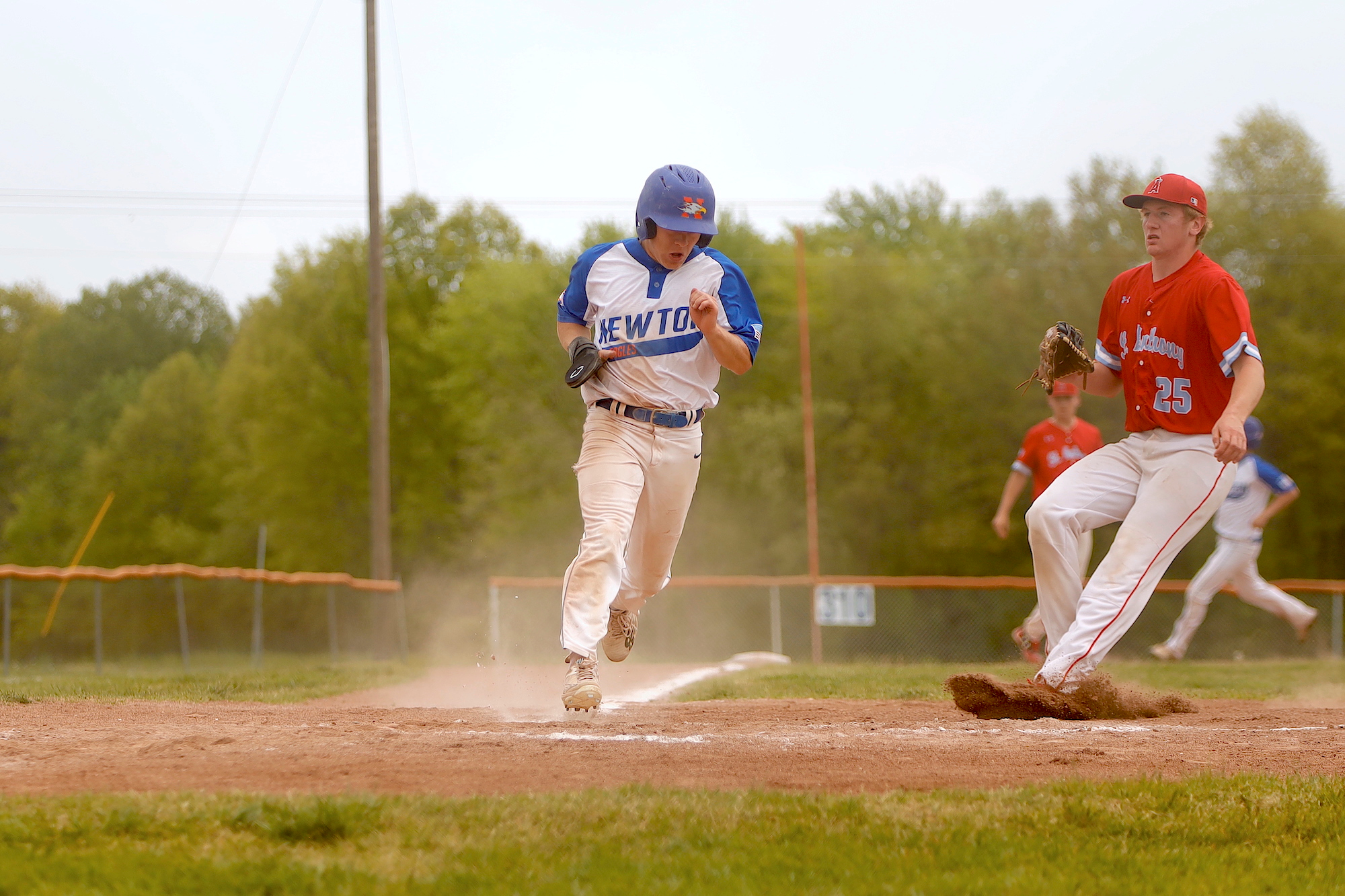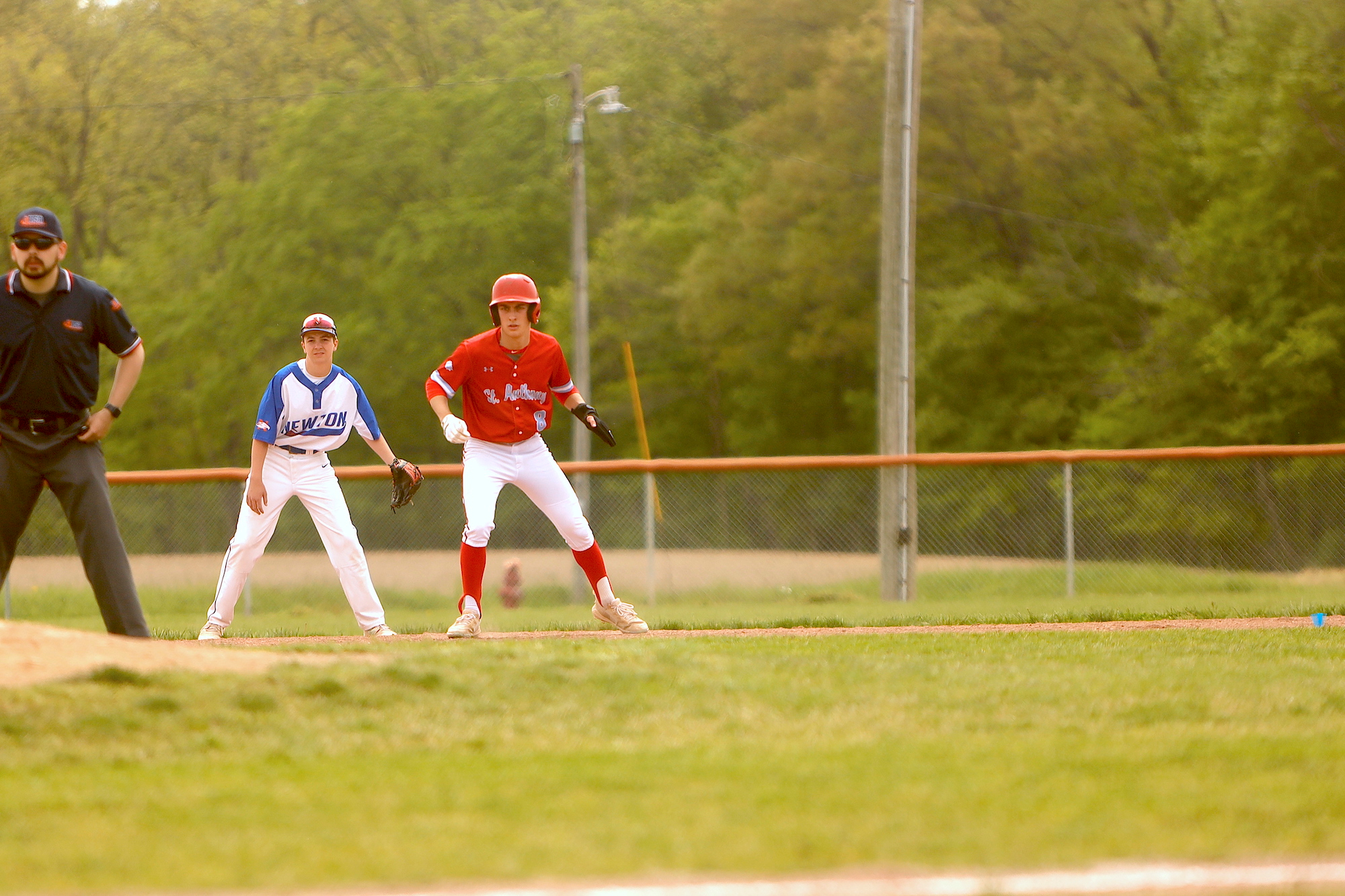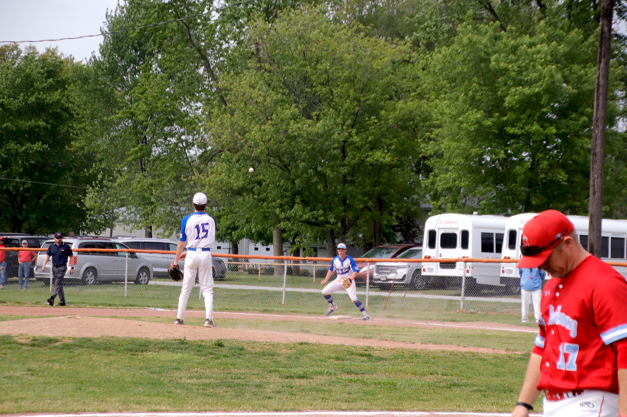 Newton Varsity Eagles stayed in it until the end, but St. Anthony Varsity Bulldogs pulled away late in a 5-1 victory on Saturday. The game was tied at one with St. Anthony Varsity Bulldogs batting in the top of the seventh when Will Fearday singled on a 2-1 count, scoring one run.