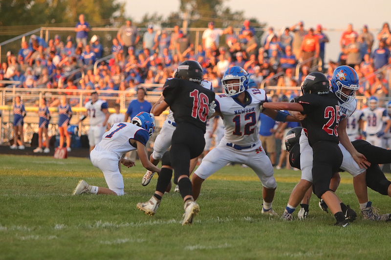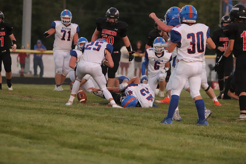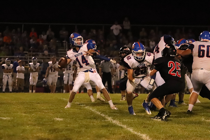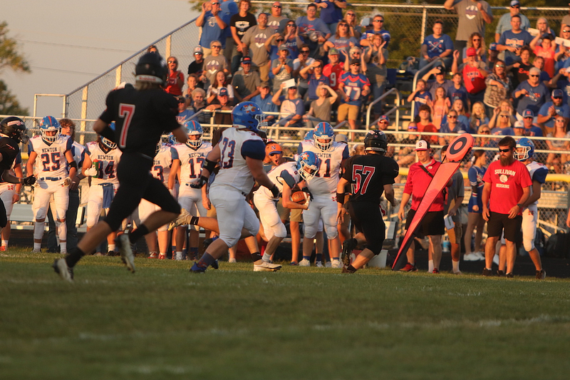 The Newton Eagles faced the Sullivan Redskins in Sullivan on August 26th. The Newton Eagles scored in the first quarter when Quarterback Max Meinhart handed off the ball at the 11 to Wade Wickham who carried the ball into the end zone. The extra point kicked by Gage Reynolds was missed.