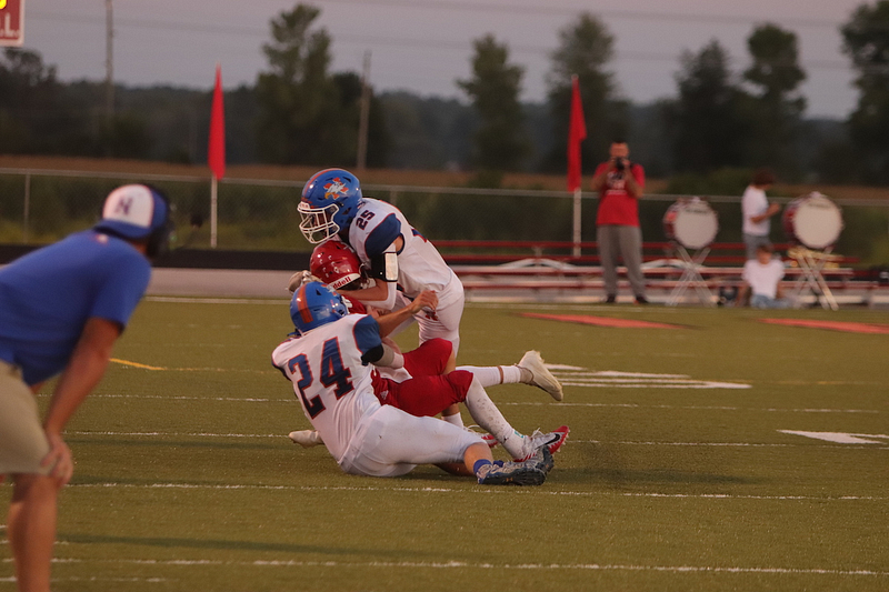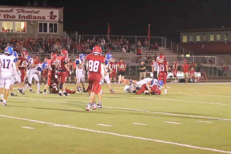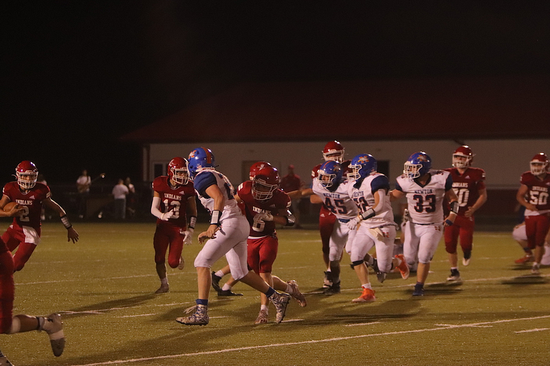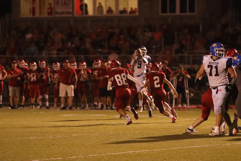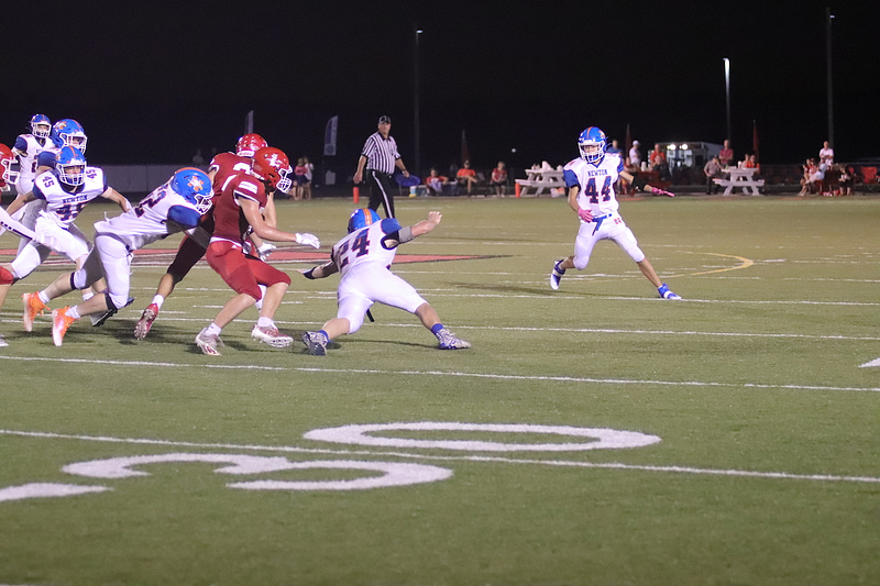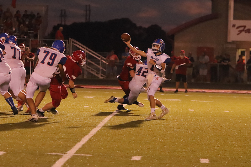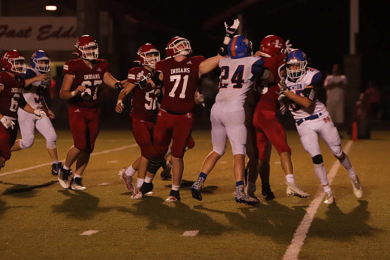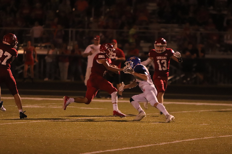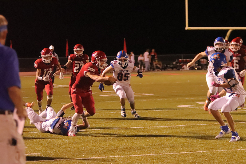 The Newton Eagles fell to the Lawrenceville Indians with a final score of 34-7 at Lawrenceville. The lone touchdown occurred when Trevor Haarman caught a pass from Quarterback Max Meinhart in the fourth quarter. Gage Reynolds kicked the extra point.