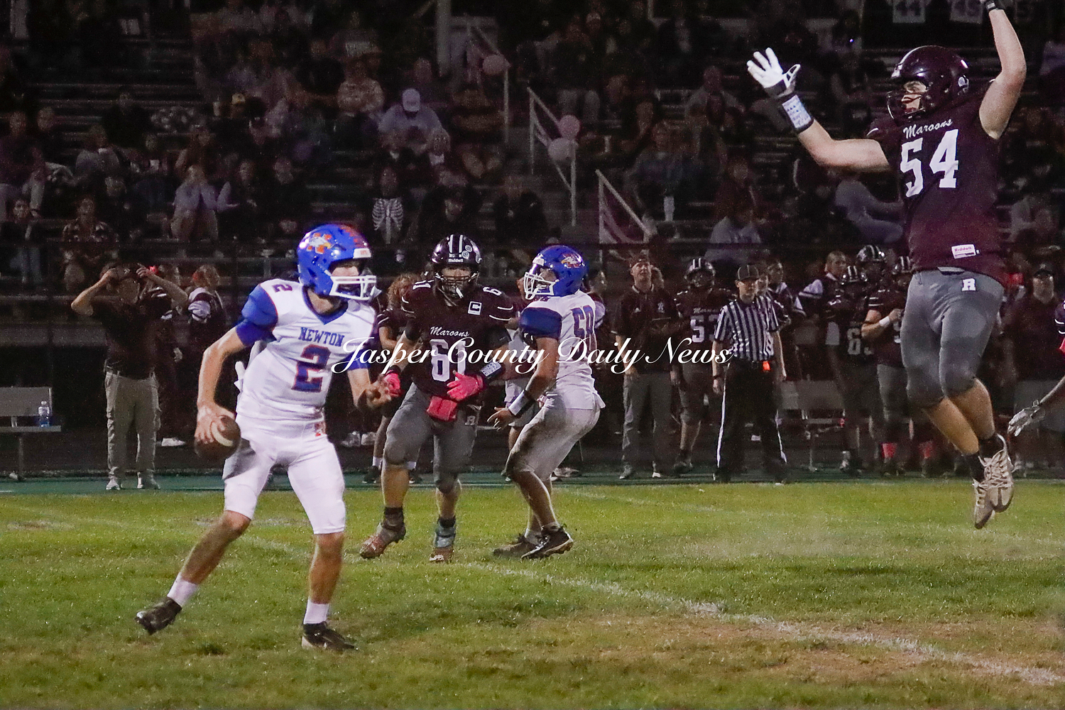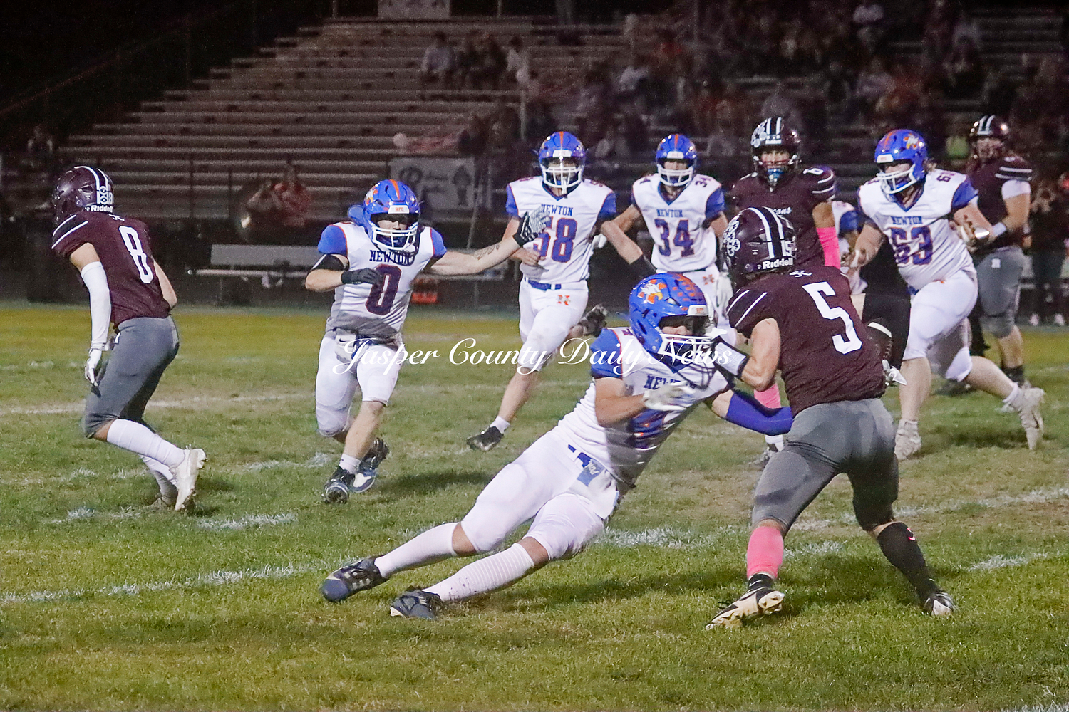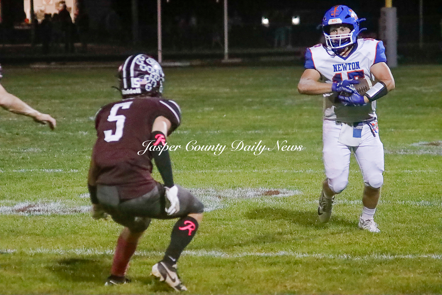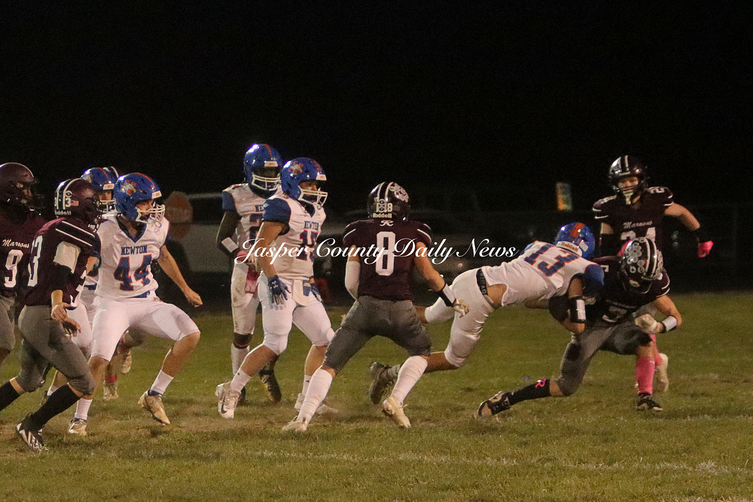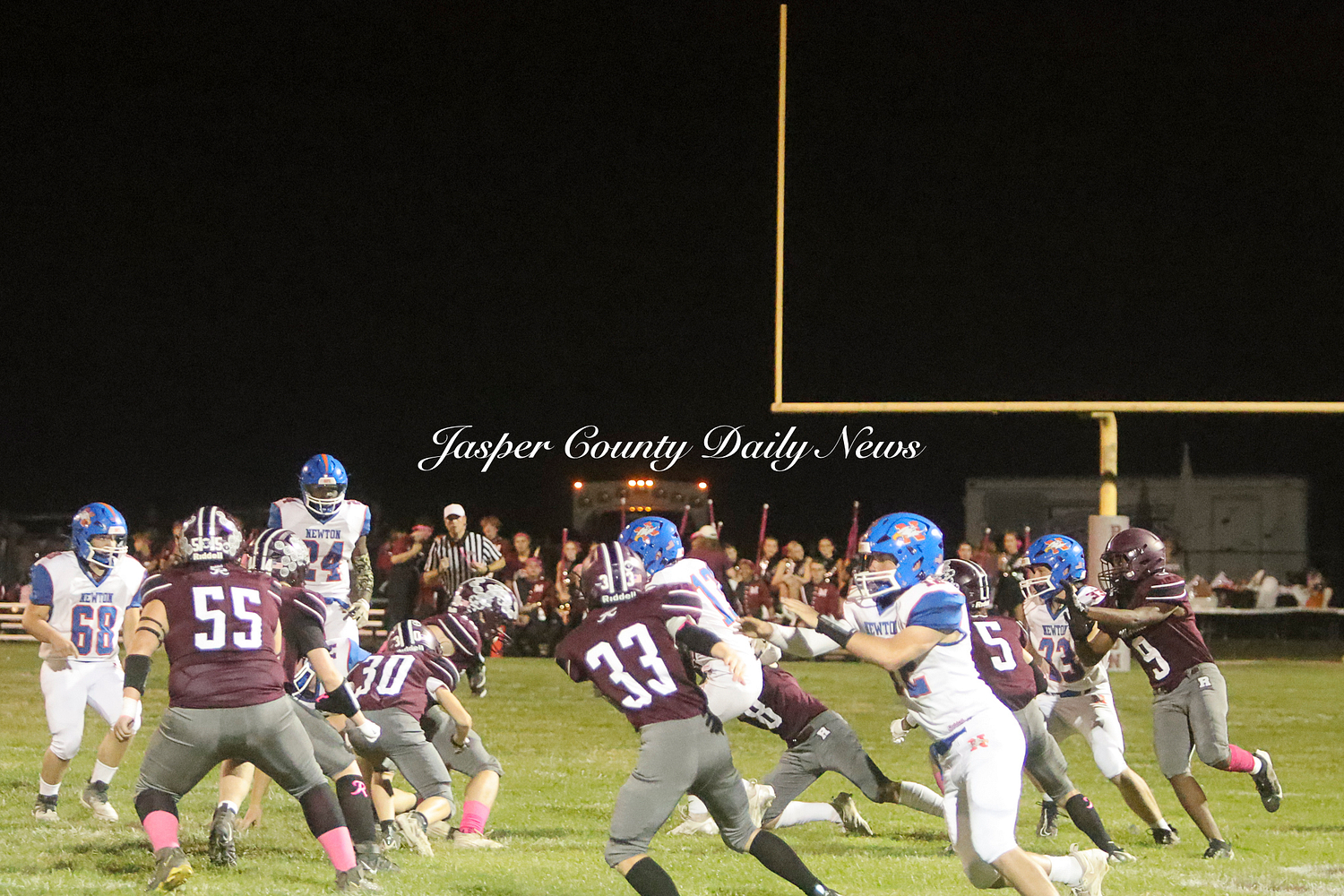 The Newton Eagles fell after a hard-fought battle against the Robinson Maroons on Friday. The Eagles started off the game with a touchdown after Drake Wolf ran 63 yards down the field after catching a pass by Hayden Mulvey. The Maroons countered with a 67 yard touchdown after Reese Johnson throws a pass to AJ Knoblett. Mulvey again throws a pass to Wolf for another 11 yard touchdown. Henry Will misses the extra point on this attempt. For the final touchdown of the first quarter, the Maroons score when Landyn Bonnell runs the ball in.