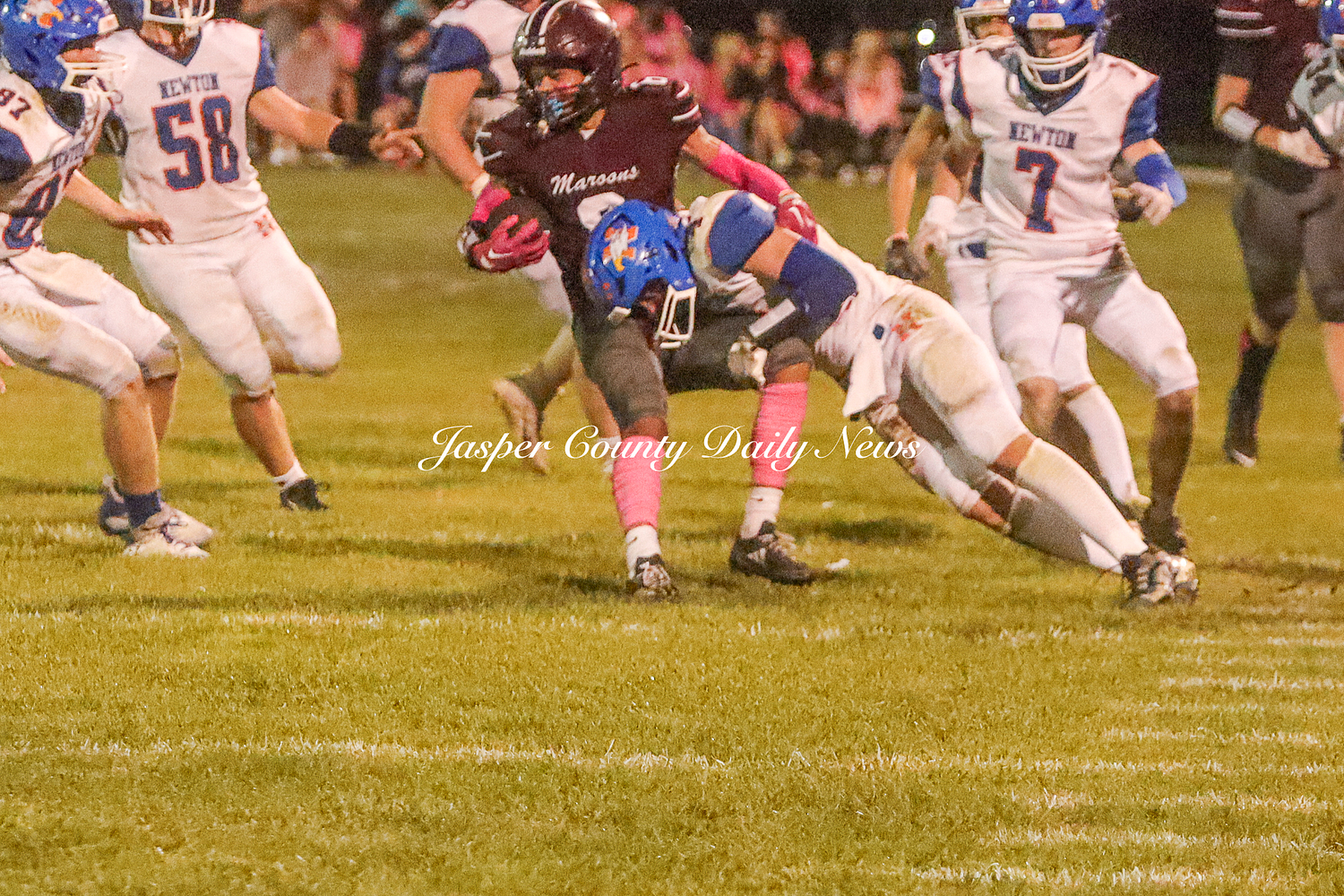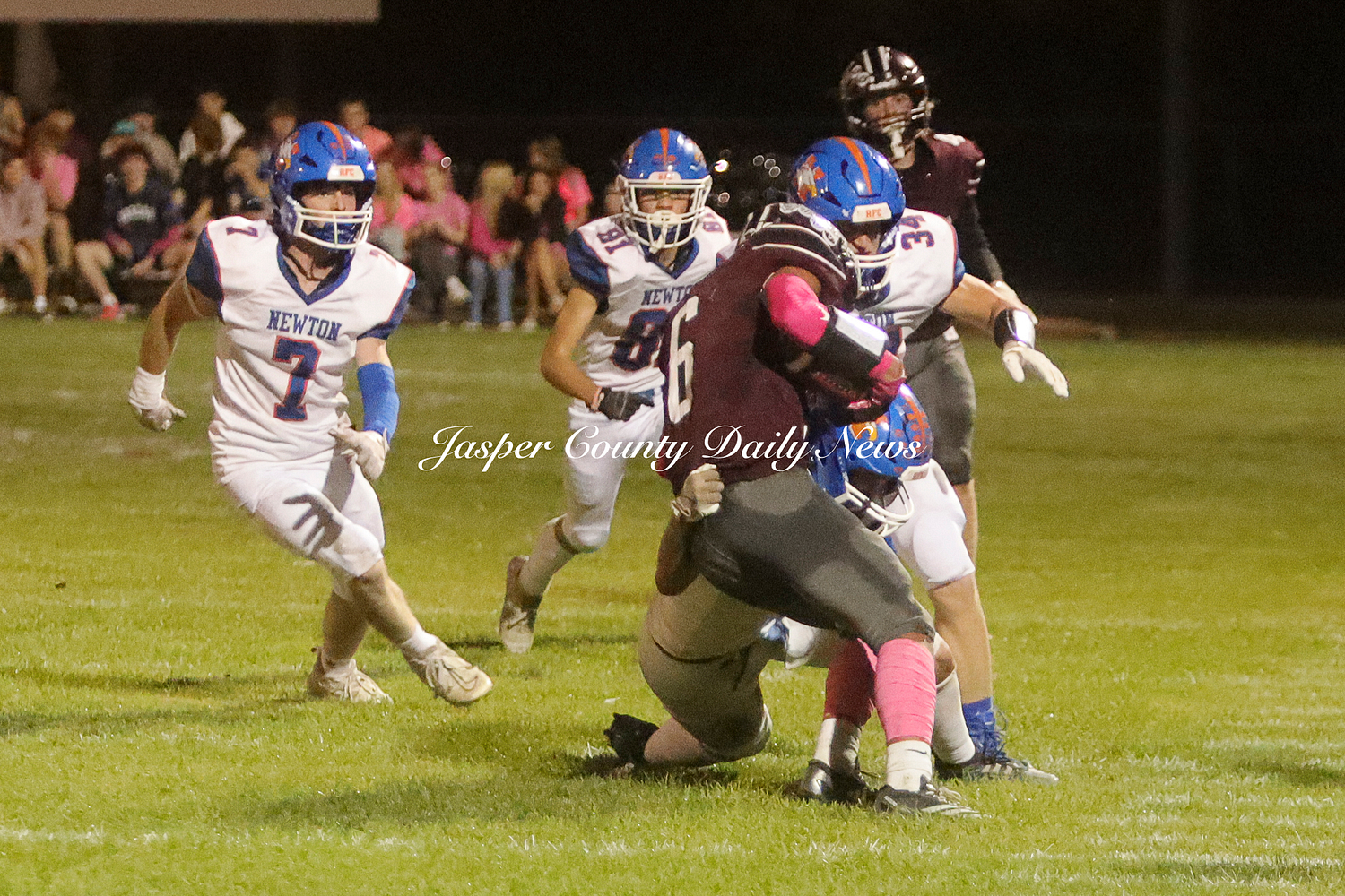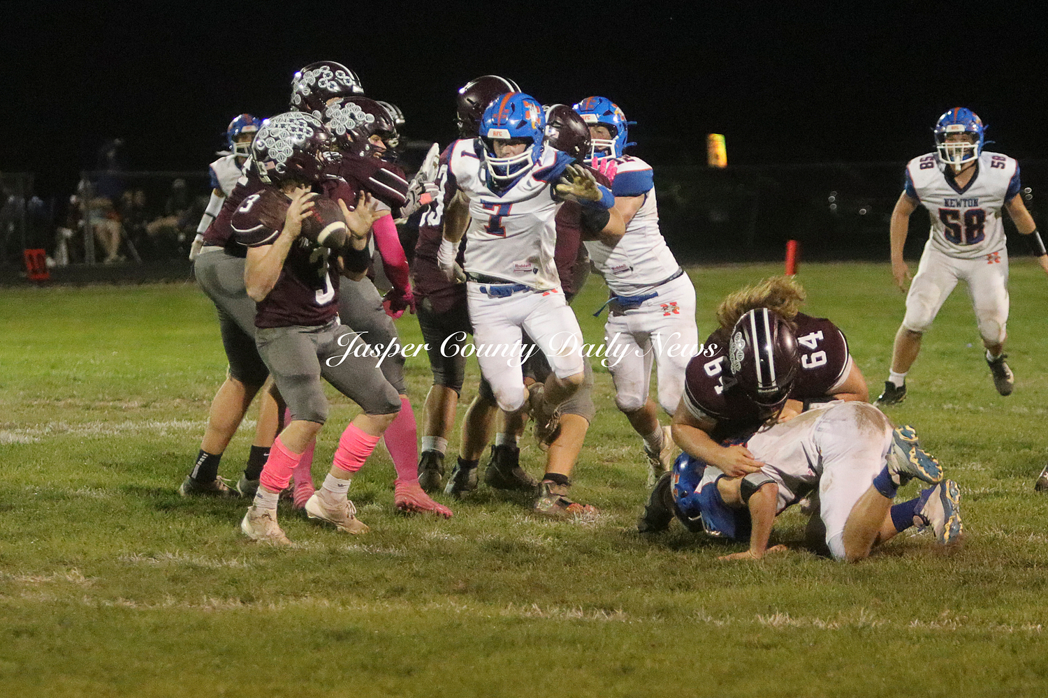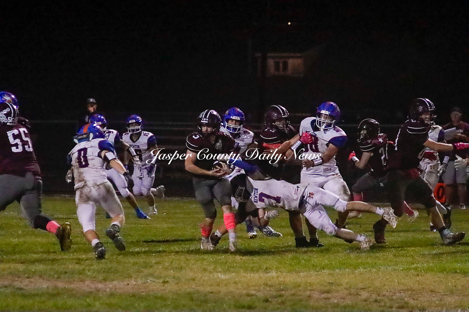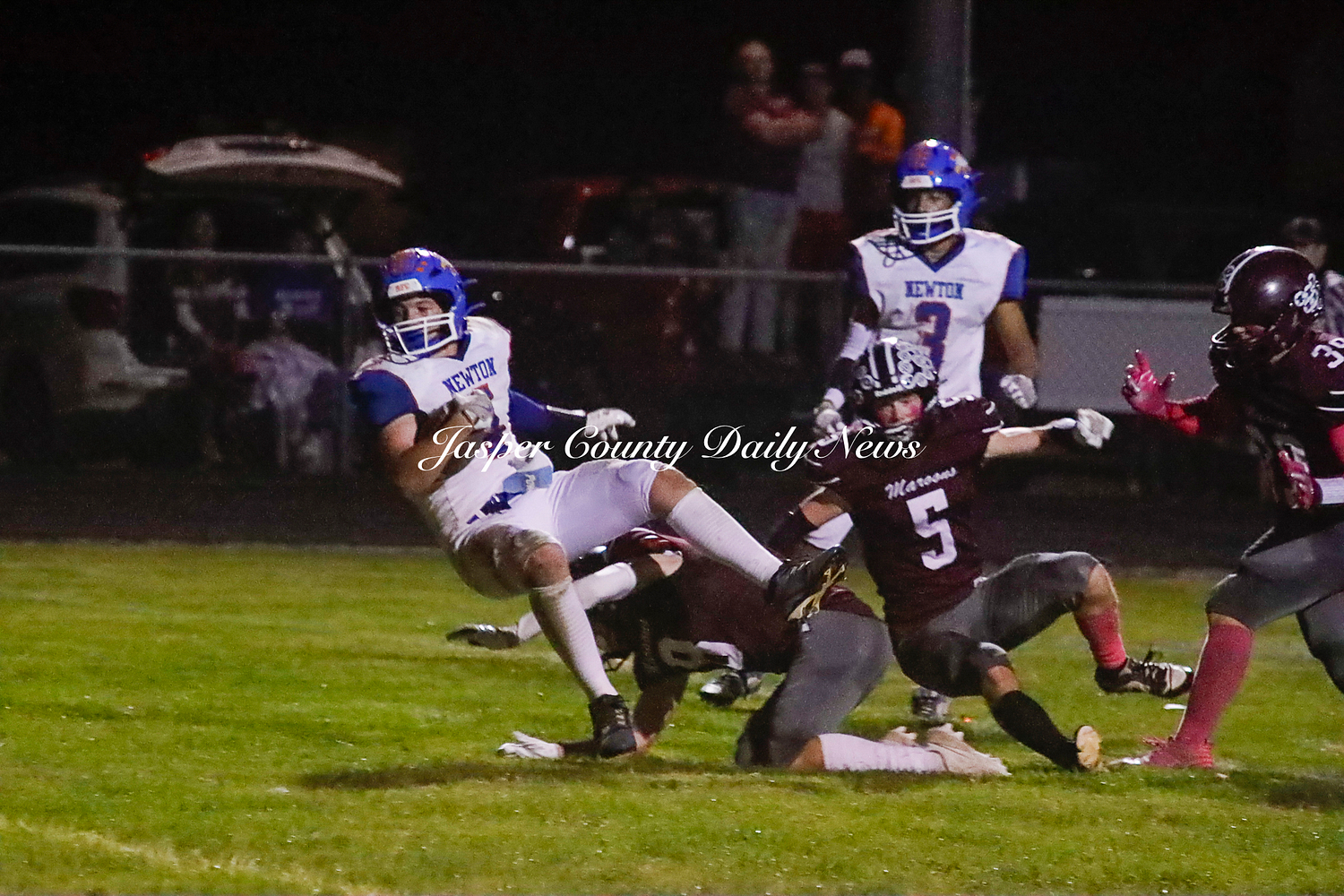 The Newton Eagles fell after a hard-fought battle against the Robinson Maroons on Friday. The Eagles started off the game with a touchdown after Drake Wolf ran 63 yards down the field after catching a pass by Hayden Mulvey. The Maroons countered with a 67 yard touchdown after Reese Johnson throws a pass to AJ Knoblett. Mulvey again throws a pass to Wolf for another 11 yard touchdown. Henry Will misses the extra point on this attempt. For the final touchdown of the first quarter, the Maroons score when Landyn Bonnell runs the ball in.