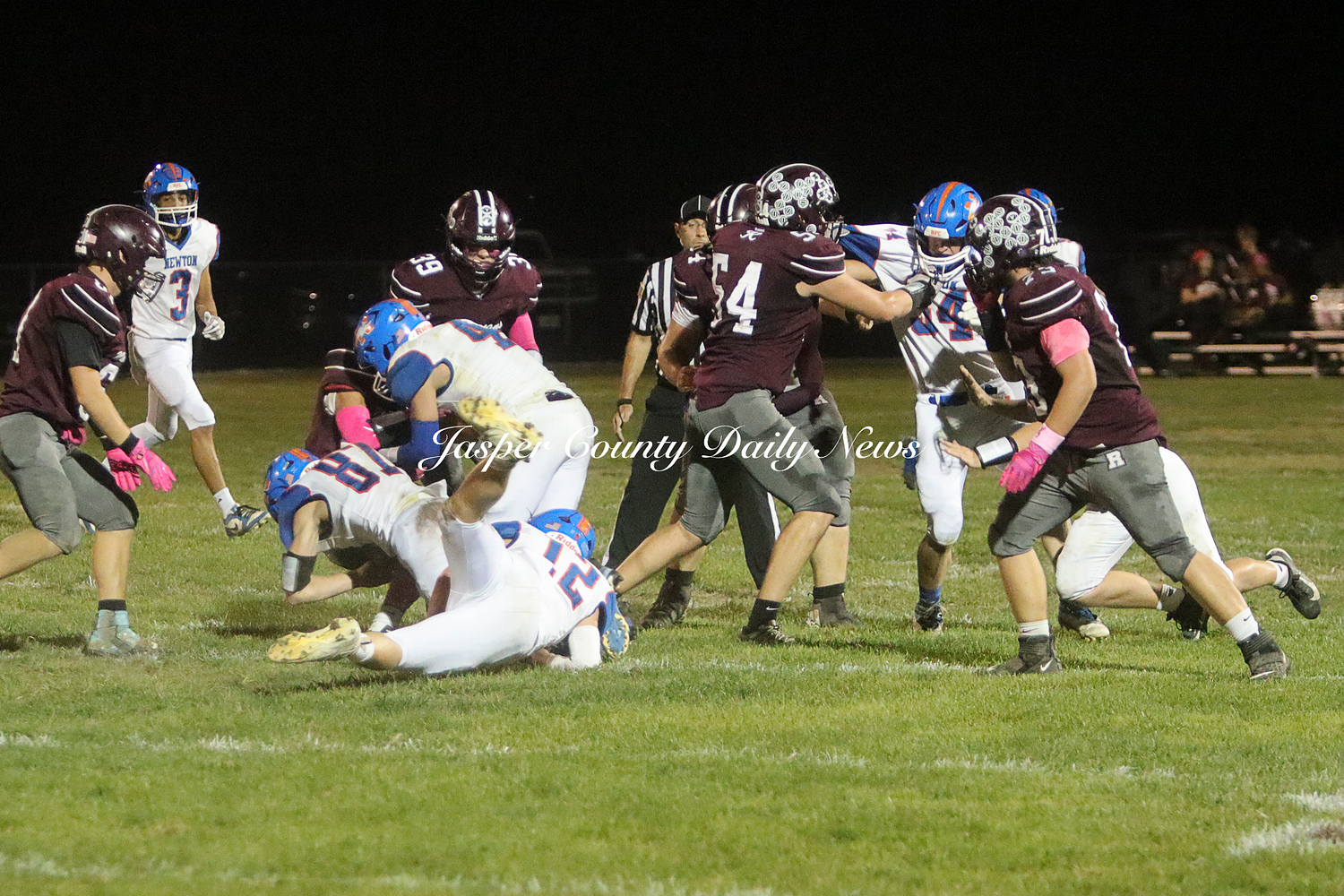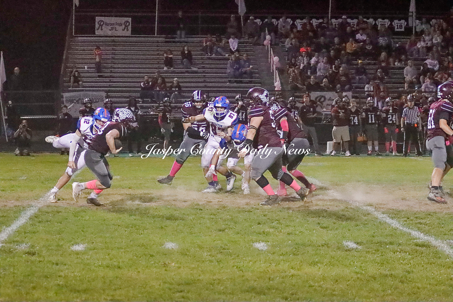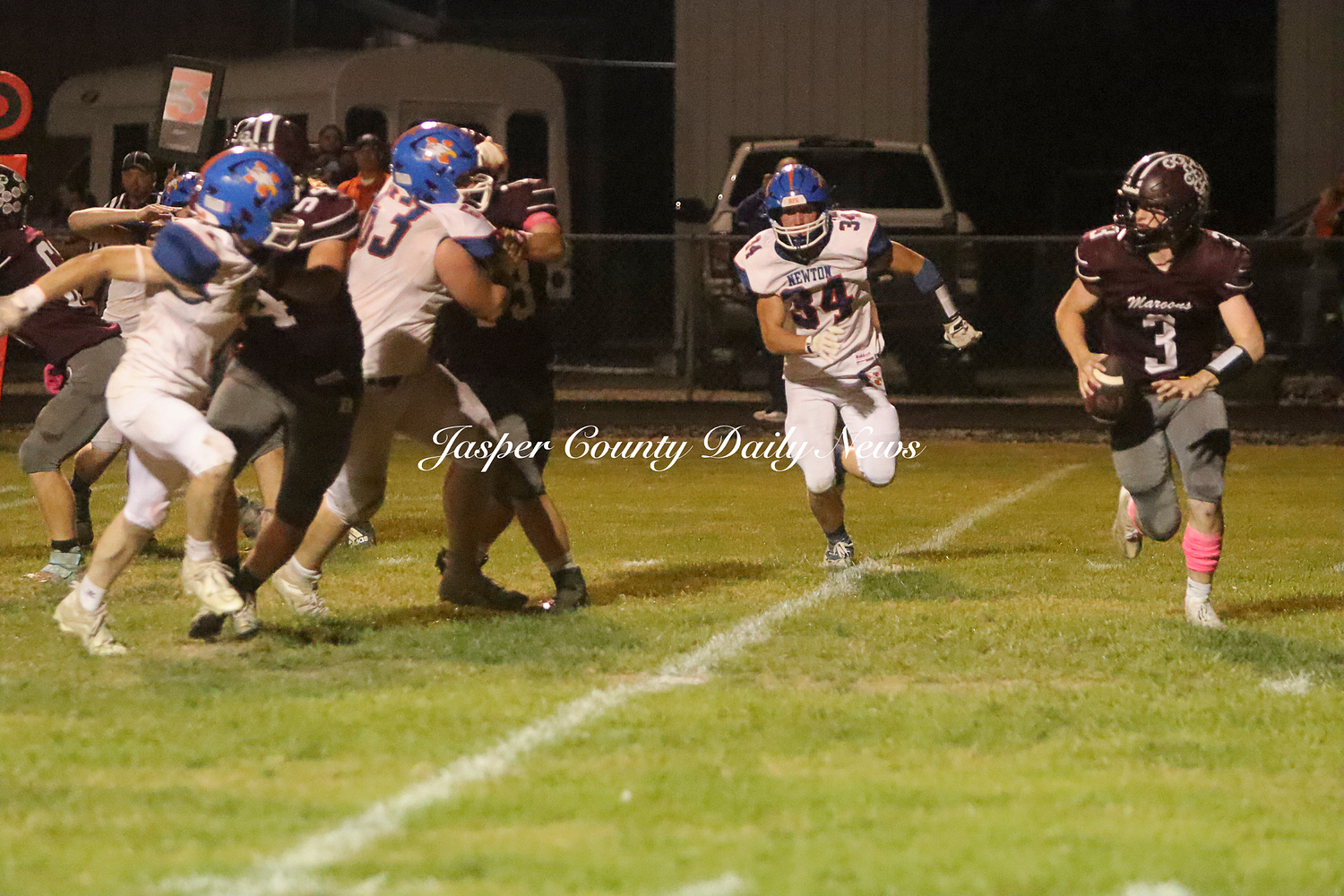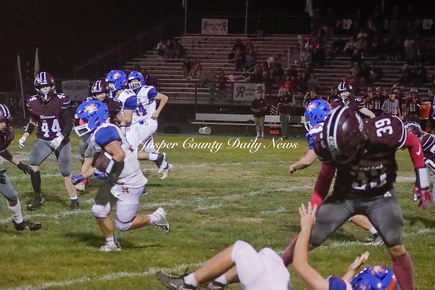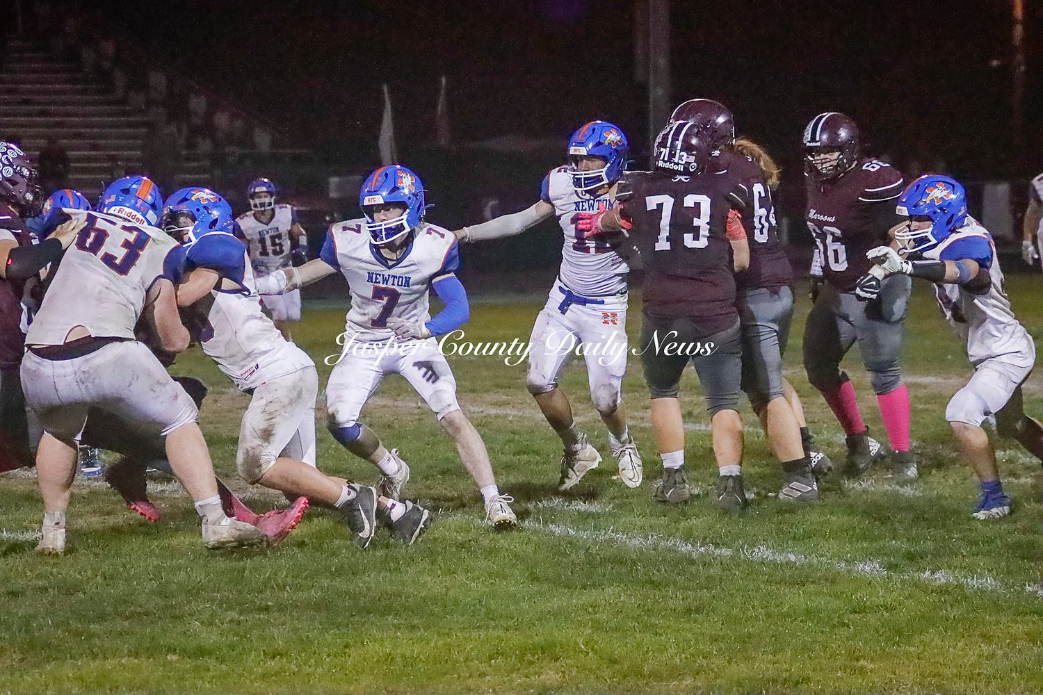 The Newton Eagles fell after a hard-fought battle against the Robinson Maroons on Friday. The Eagles started off the game with a touchdown after Drake Wolf ran 63 yards down the field after catching a pass by Hayden Mulvey. The Maroons countered with a 67 yard touchdown after Reese Johnson throws a pass to AJ Knoblett. Mulvey again throws a pass to Wolf for another 11 yard touchdown. Henry Will misses the extra point on this attempt. For the final touchdown of the first quarter, the Maroons score when Landyn Bonnell runs the ball in.