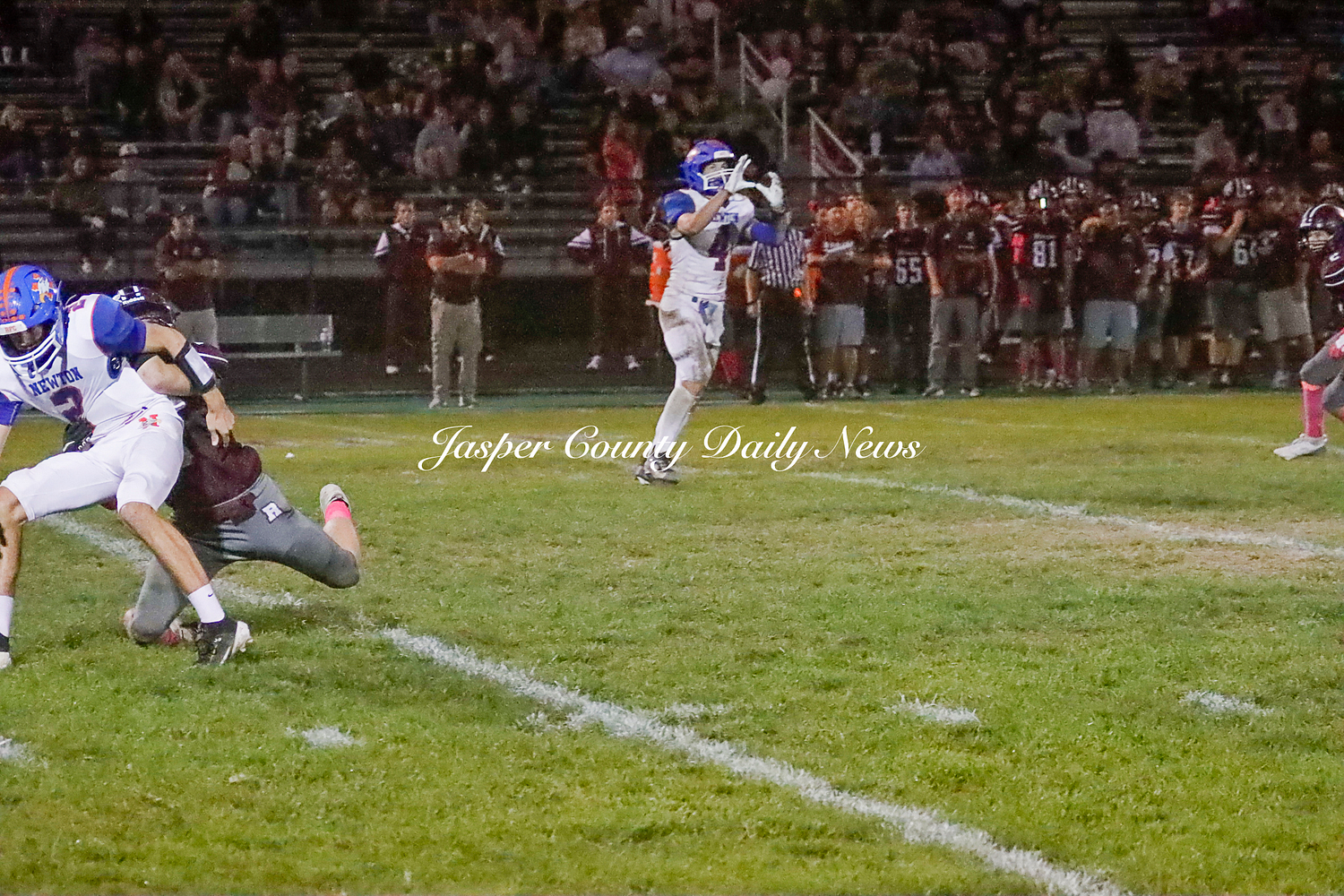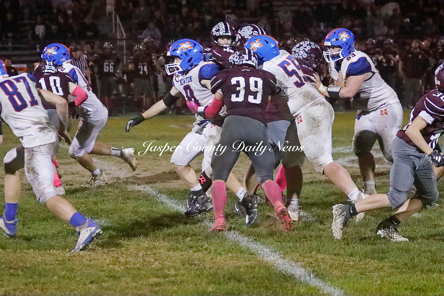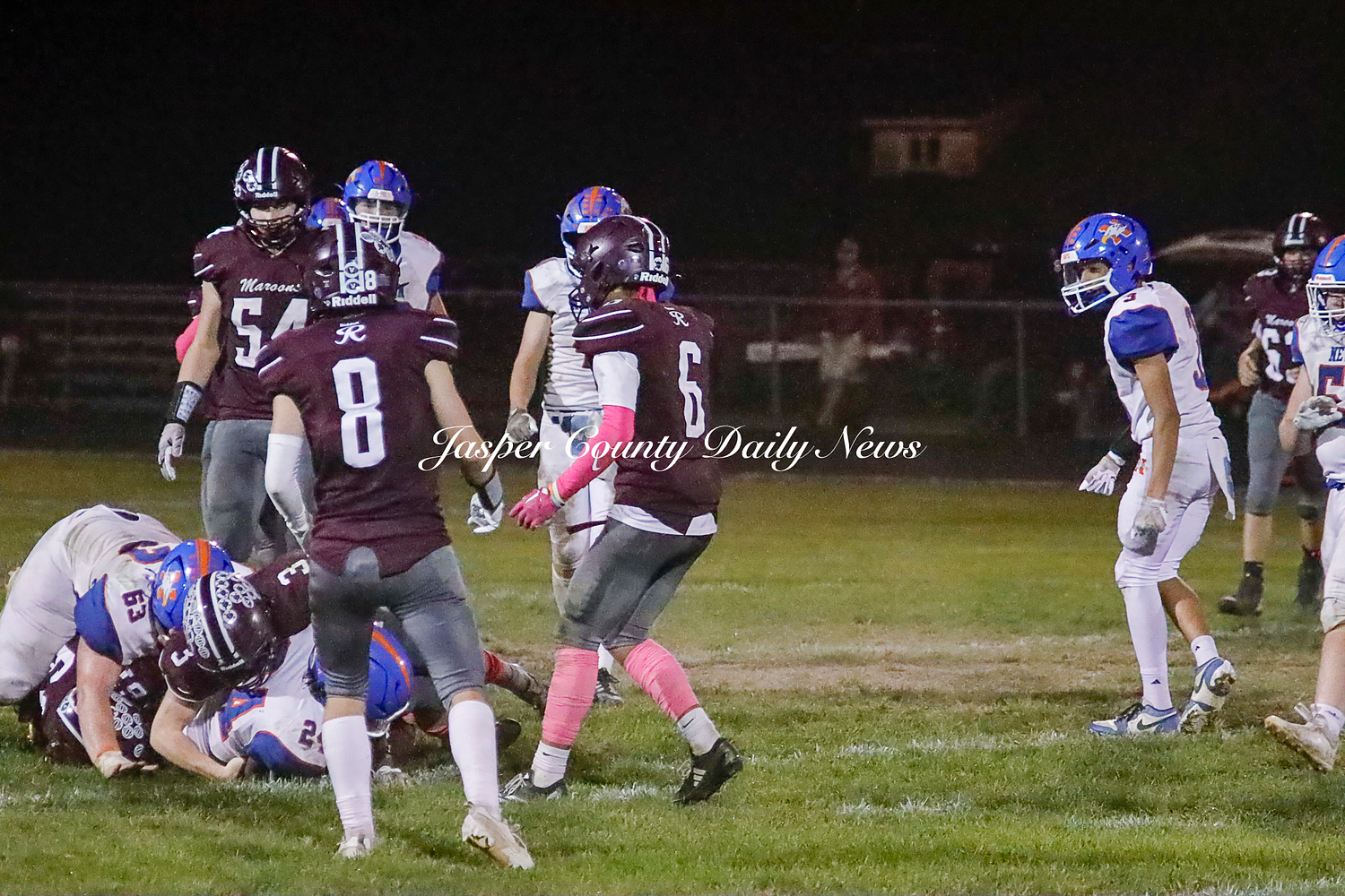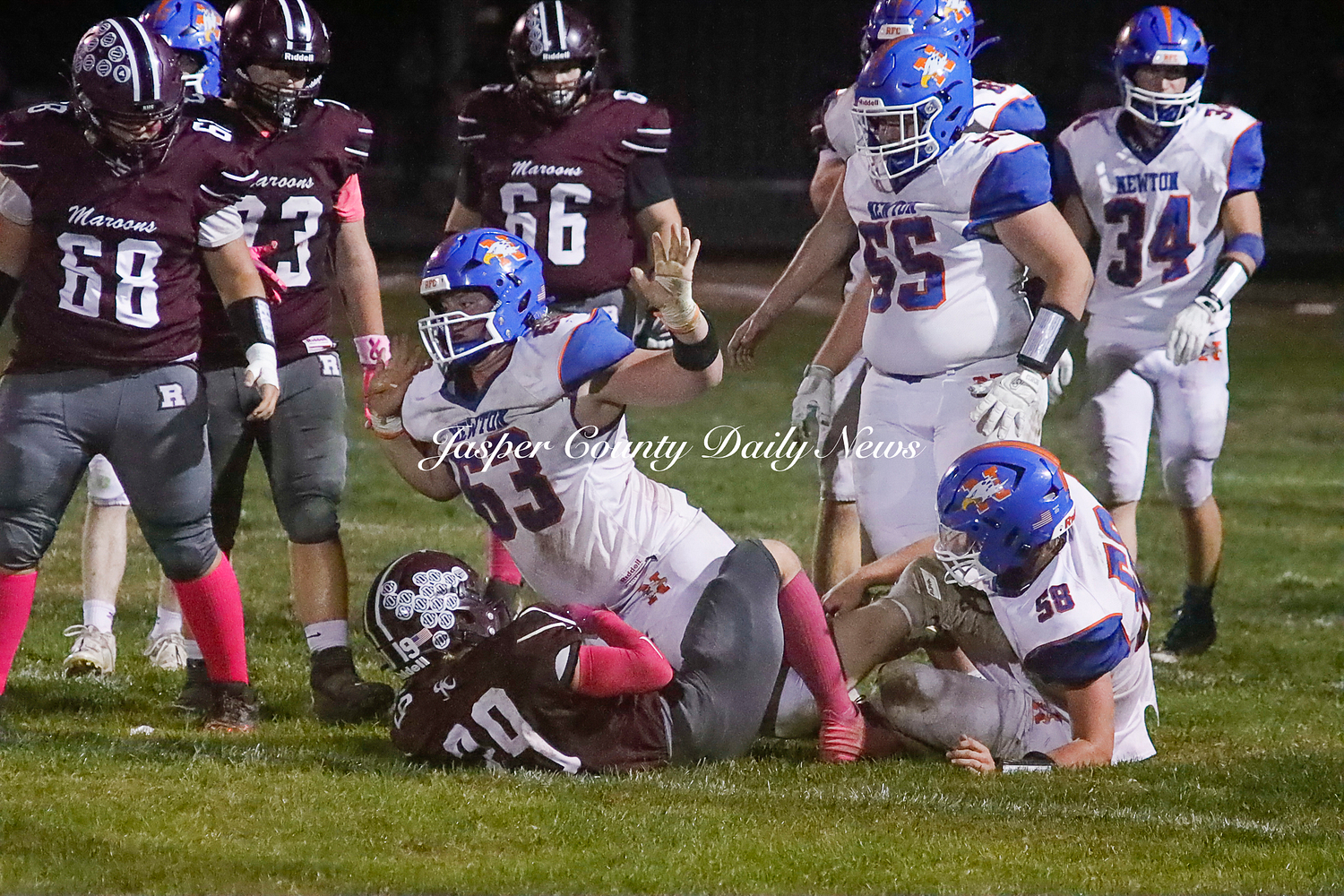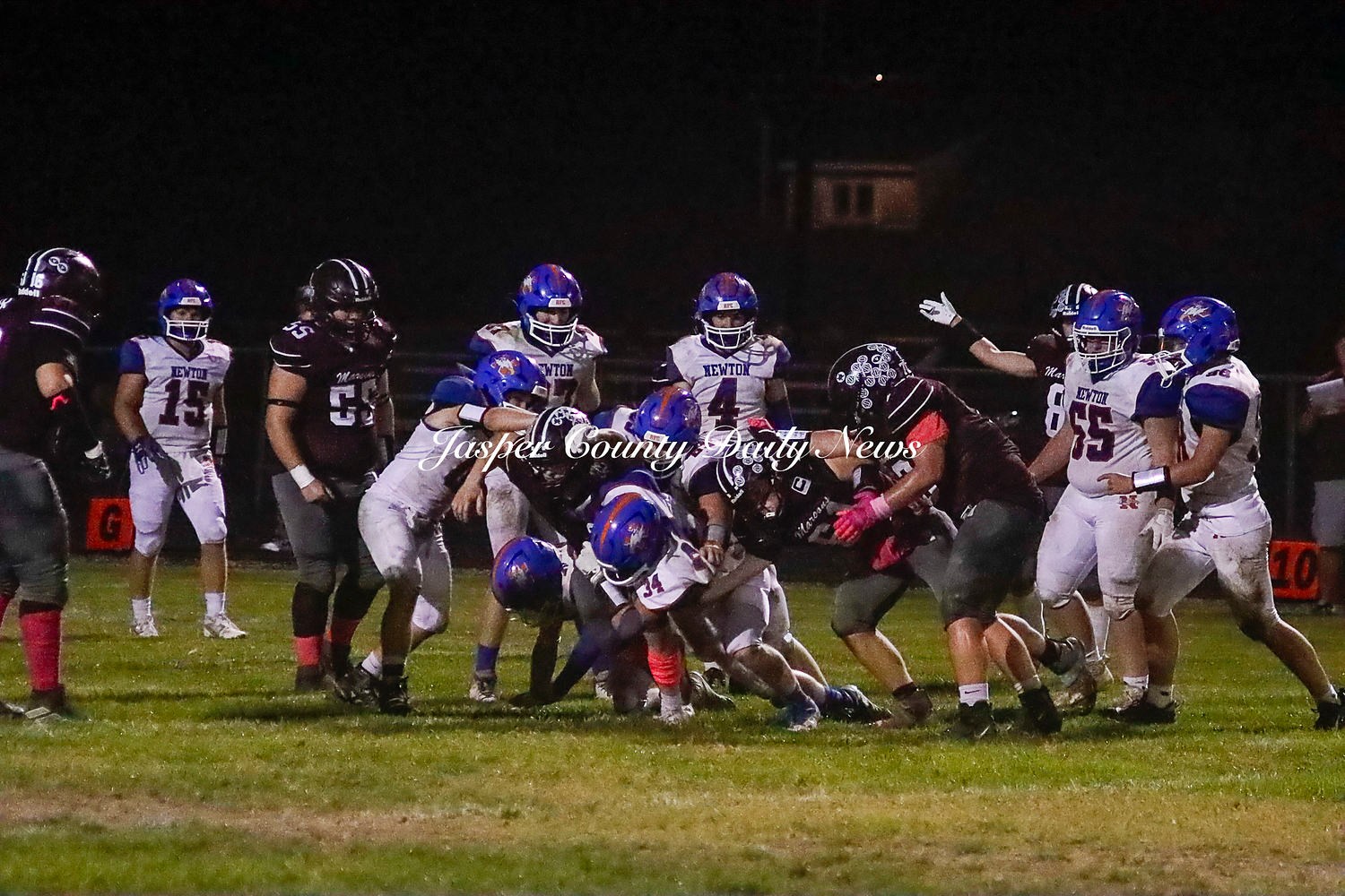 The Newton Eagles fell after a hard-fought battle against the Robinson Maroons on Friday. The Eagles started off the game with a touchdown after Drake Wolf ran 63 yards down the field after catching a pass by Hayden Mulvey. The Maroons countered with a 67 yard touchdown after Reese Johnson throws a pass to AJ Knoblett. Mulvey again throws a pass to Wolf for another 11 yard touchdown. Henry Will misses the extra point on this attempt. For the final touchdown of the first quarter, the Maroons score when Landyn Bonnell runs the ball in.