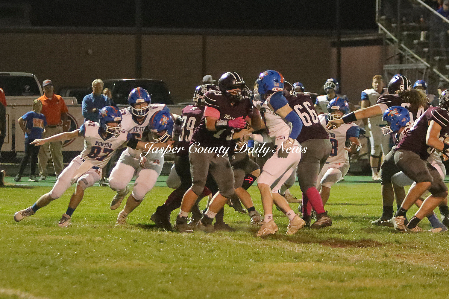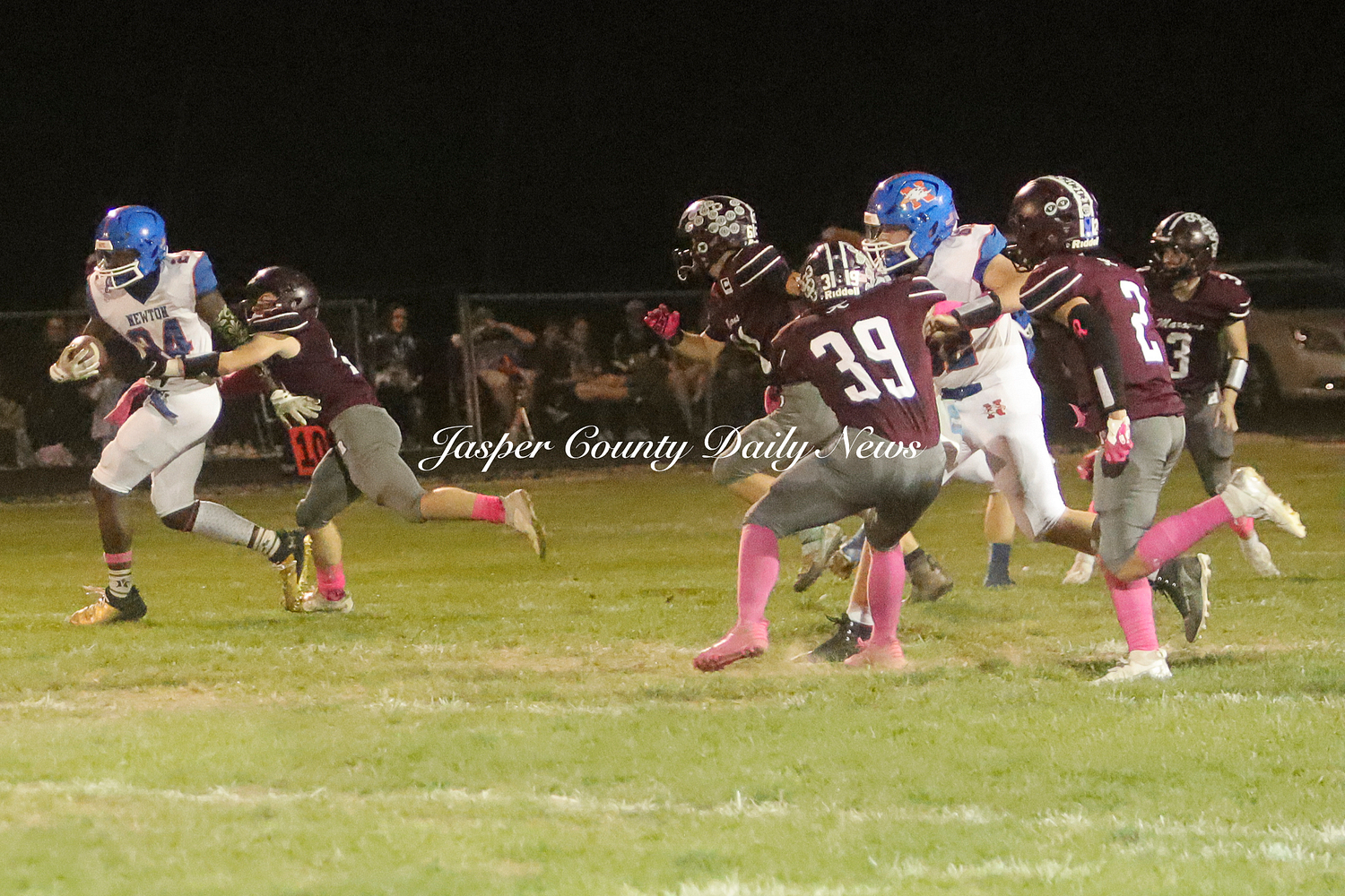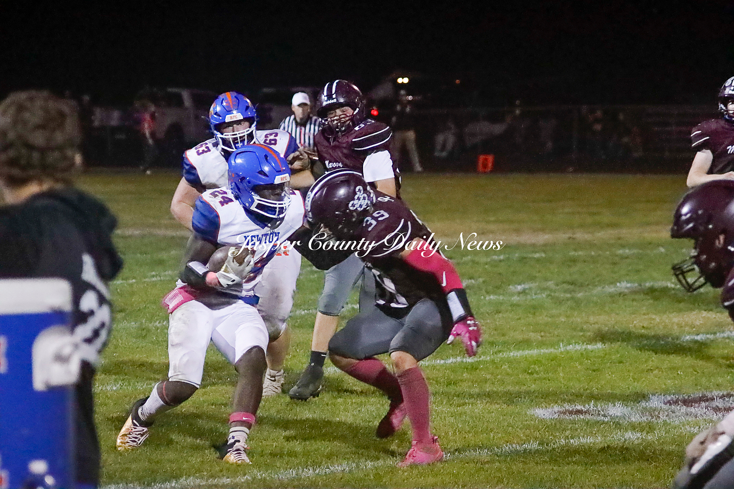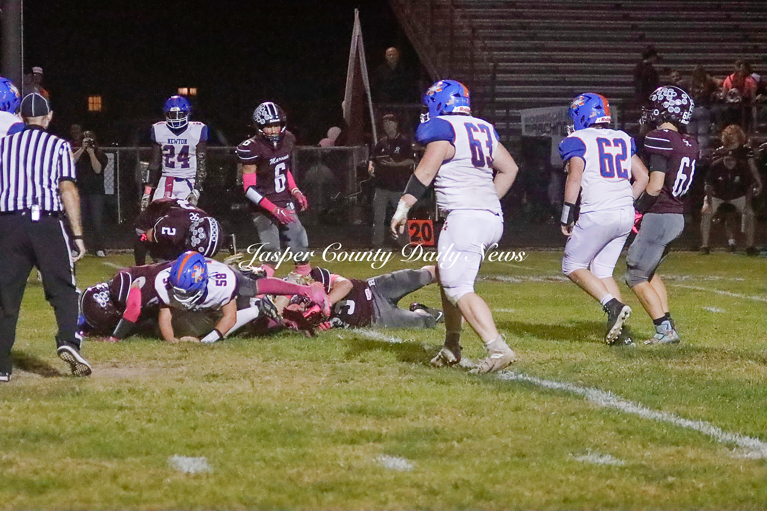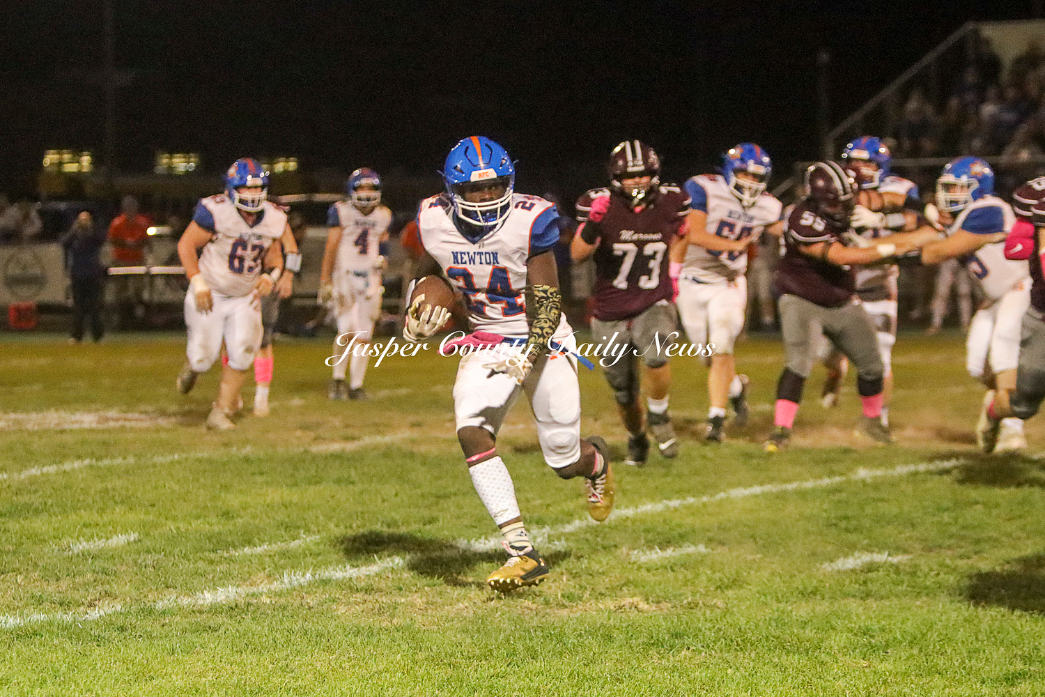 The Newton Eagles fell after a hard-fought battle against the Robinson Maroons on Friday. The Eagles started off the game with a touchdown after Drake Wolf ran 63 yards down the field after catching a pass by Hayden Mulvey. The Maroons countered with a 67 yard touchdown after Reese Johnson throws a pass to AJ Knoblett. Mulvey again throws a pass to Wolf for another 11 yard touchdown. Henry Will misses the extra point on this attempt. For the final touchdown of the first quarter, the Maroons score when Landyn Bonnell runs the ball in.