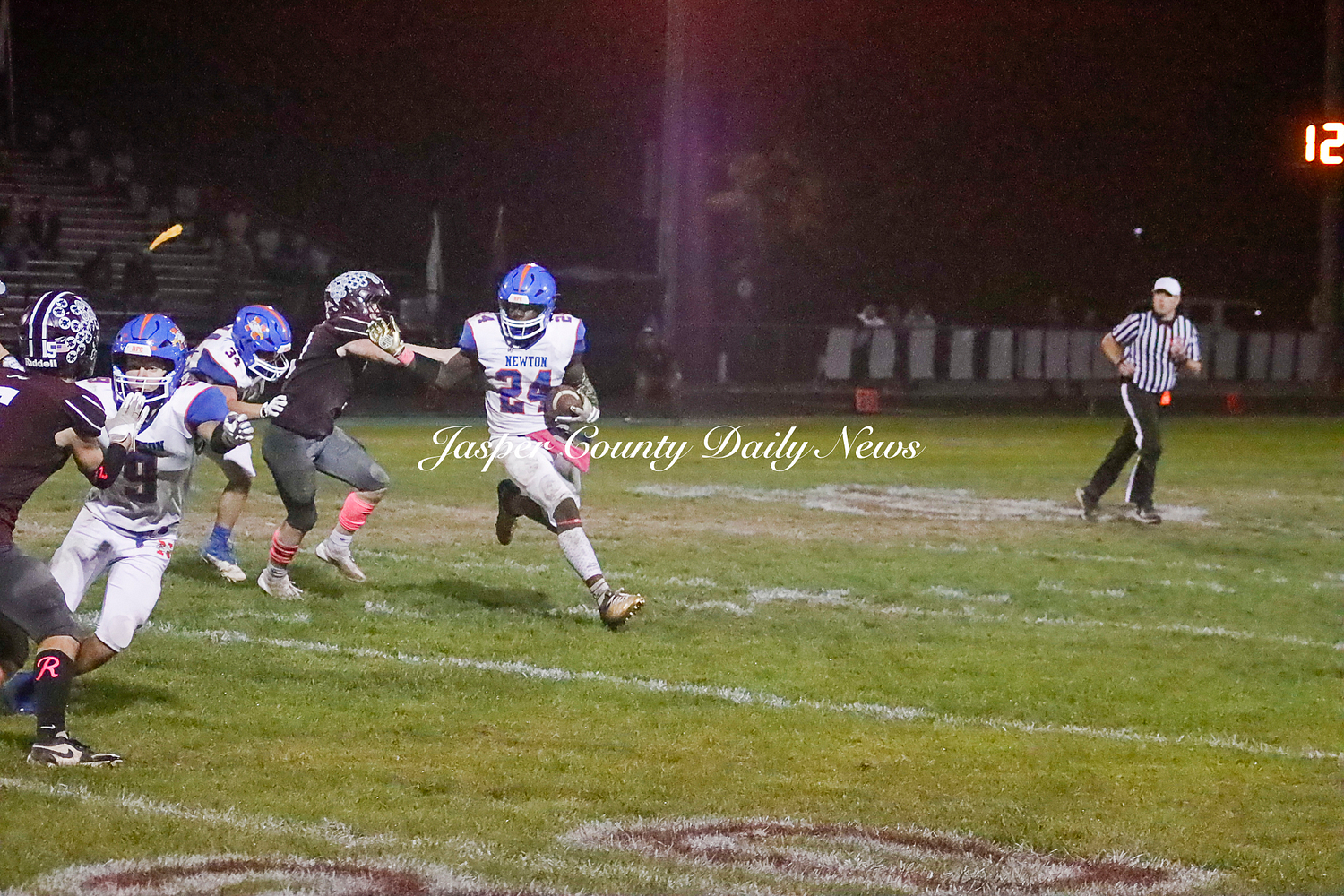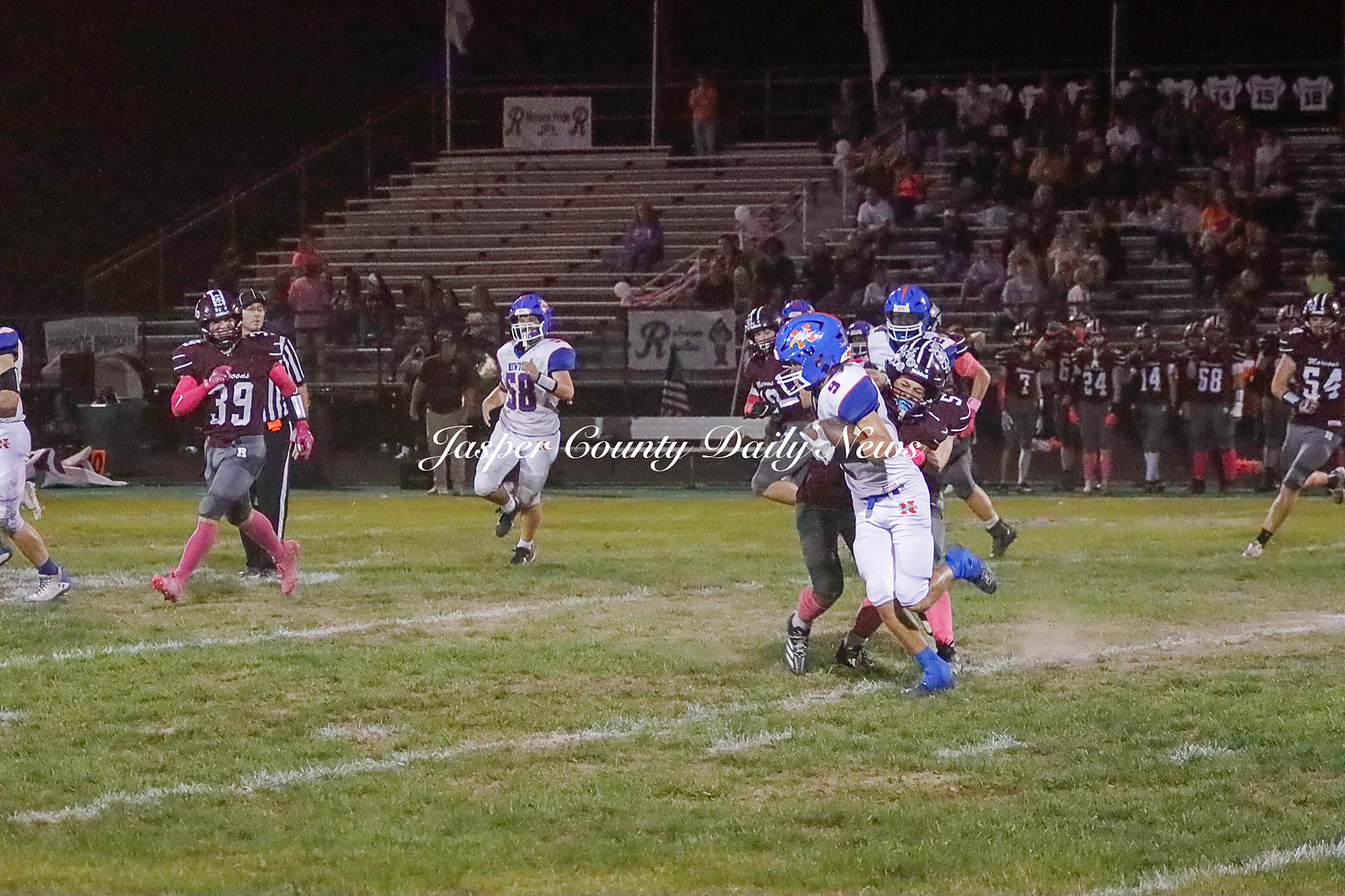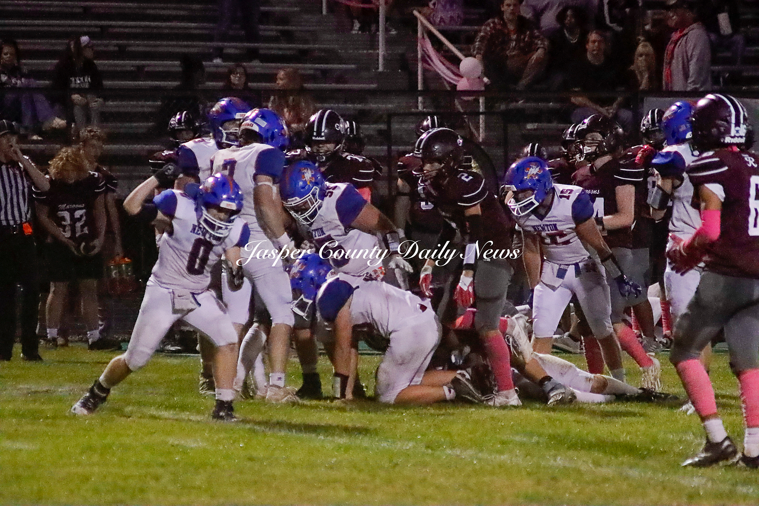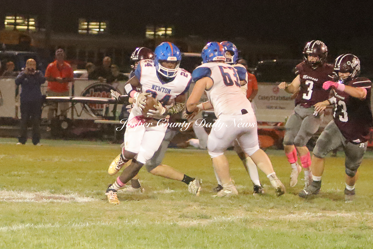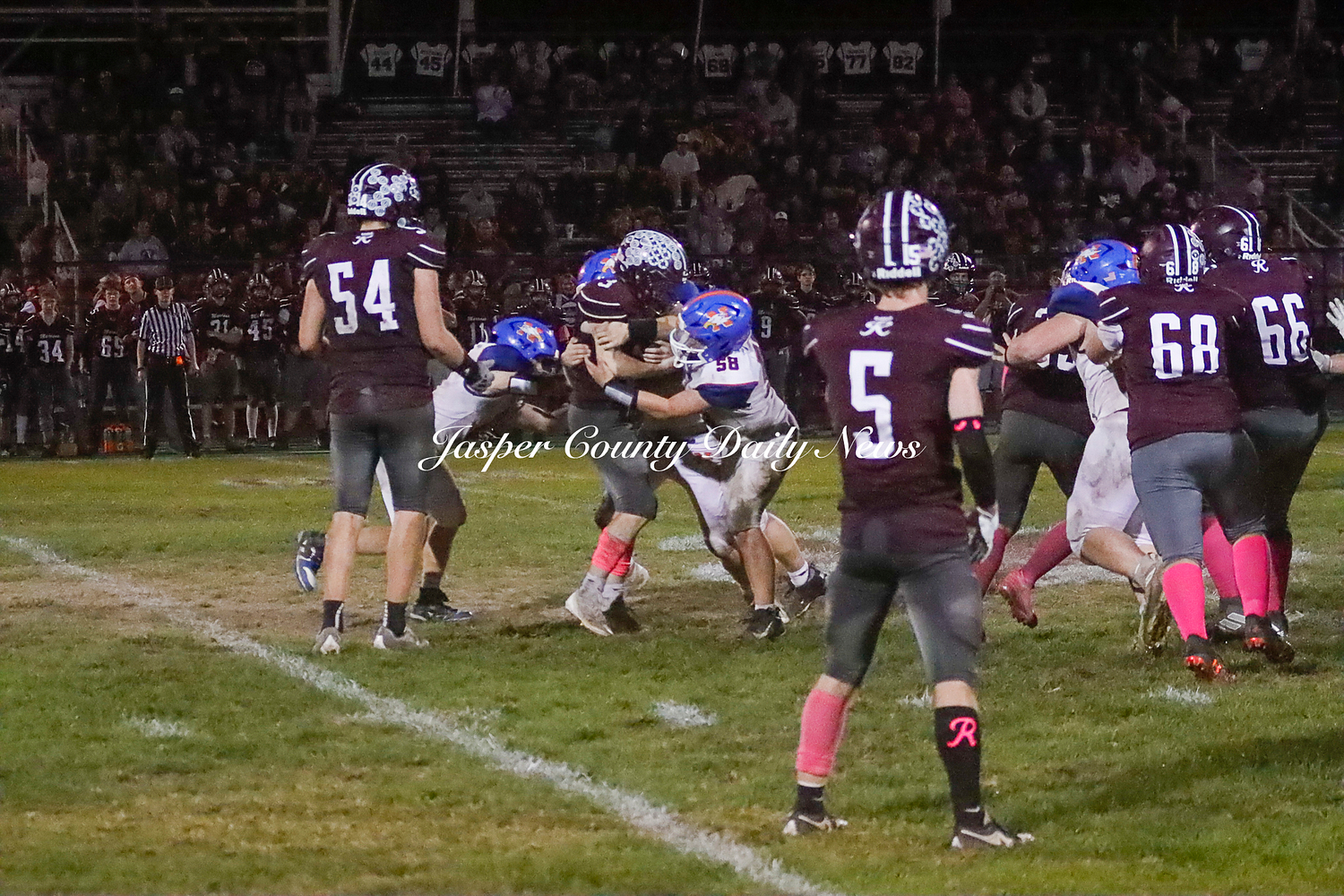 The Newton Eagles fell after a hard-fought battle against the Robinson Maroons on Friday. The Eagles started off the game with a touchdown after Drake Wolf ran 63 yards down the field after catching a pass by Hayden Mulvey. The Maroons countered with a 67 yard touchdown after Reese Johnson throws a pass to AJ Knoblett. Mulvey again throws a pass to Wolf for another 11 yard touchdown. Henry Will misses the extra point on this attempt. For the final touchdown of the first quarter, the Maroons score when Landyn Bonnell runs the ball in.