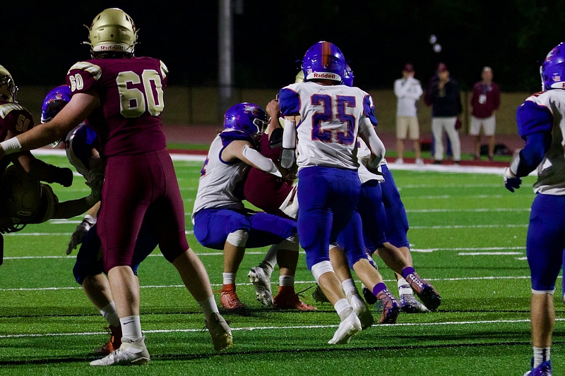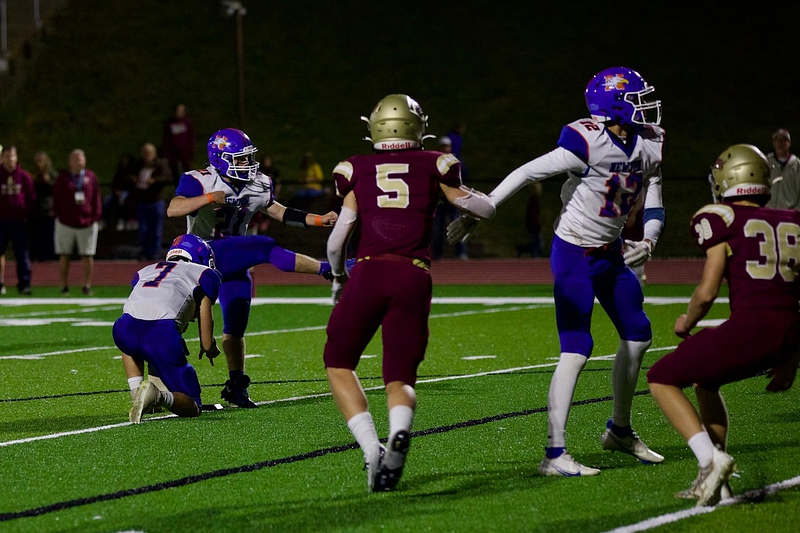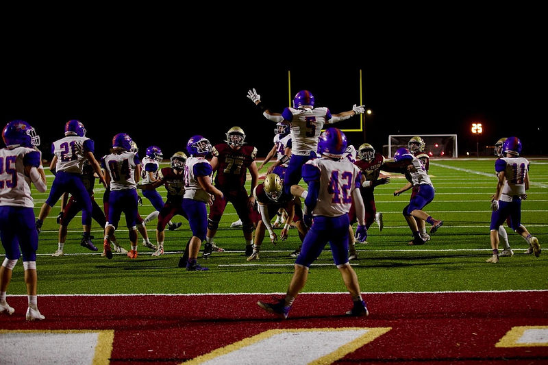 the endzone. TOUCHDOWN! #2 Blayne Sisson attempts the point after touchdown from the < 6. #2 Blayne Sisson hands off ball at the < 6