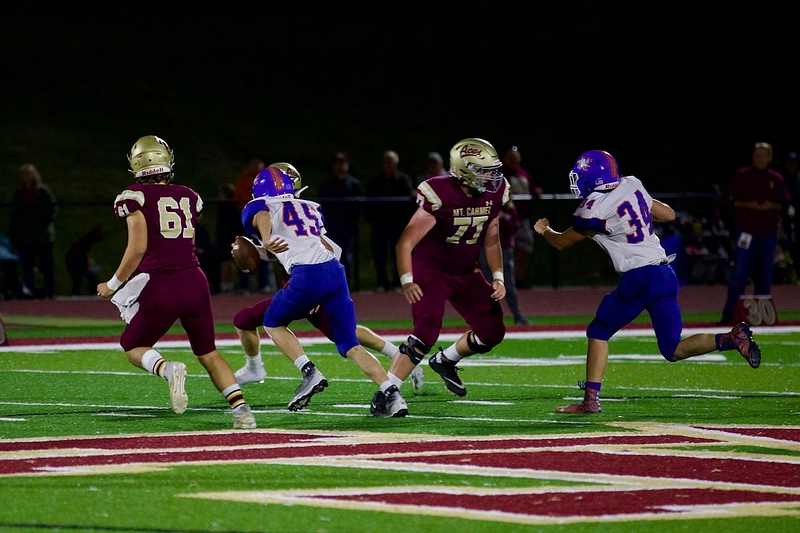 The Newton Eagles fell to Mt. Carmel with a final score of 42-. The Eagle’s lone touchdown was in the third quarter.