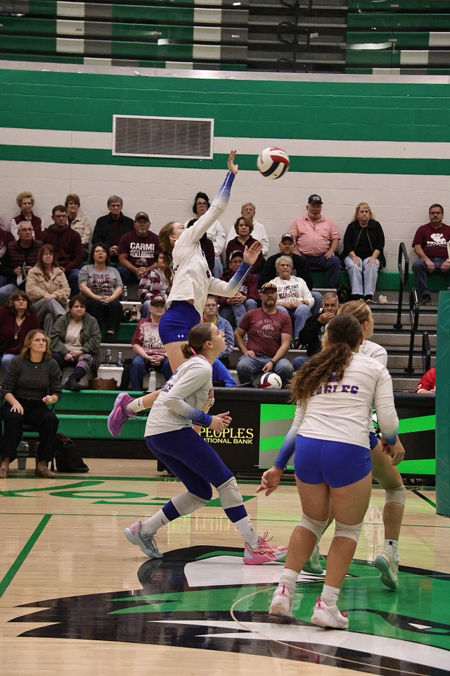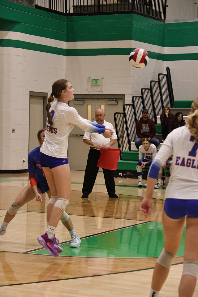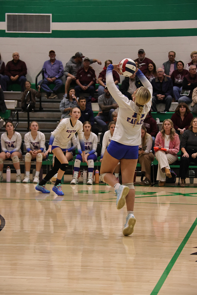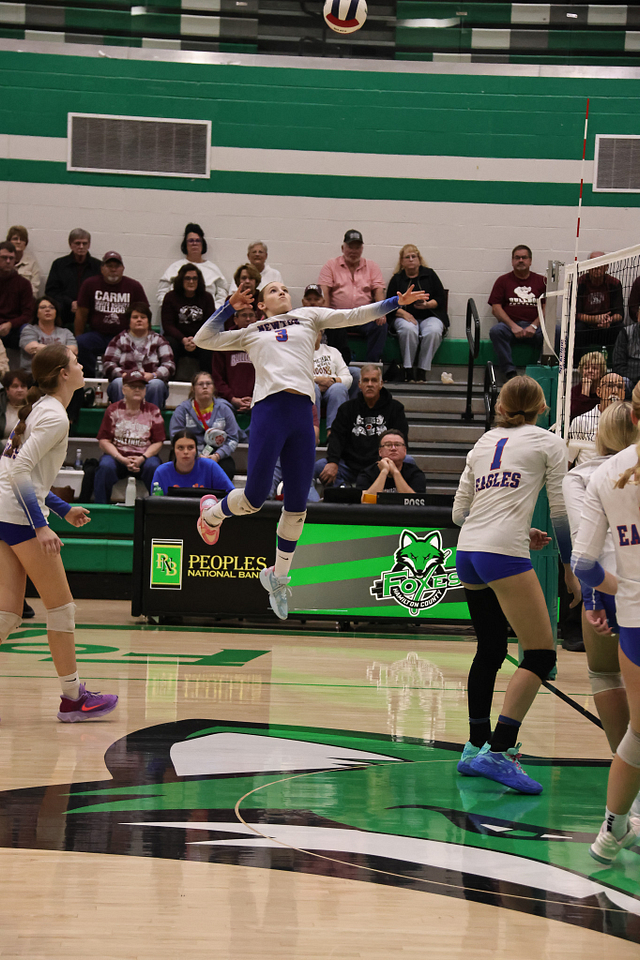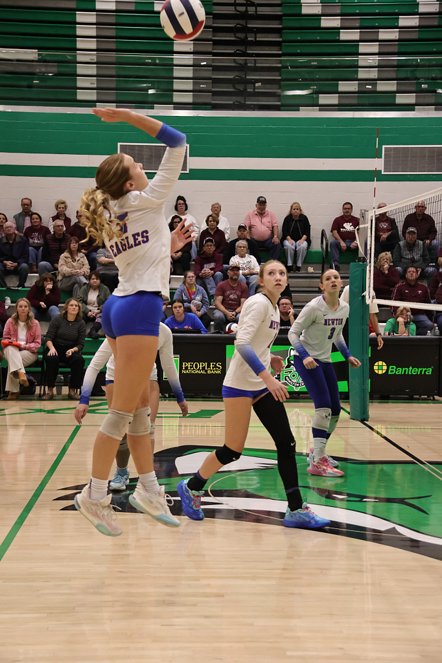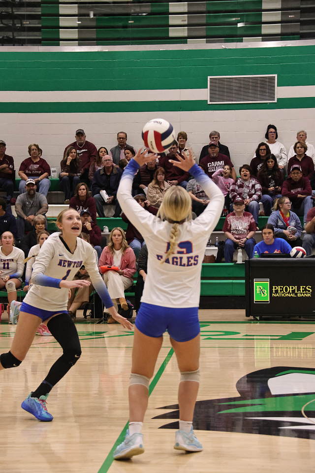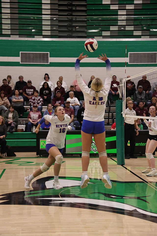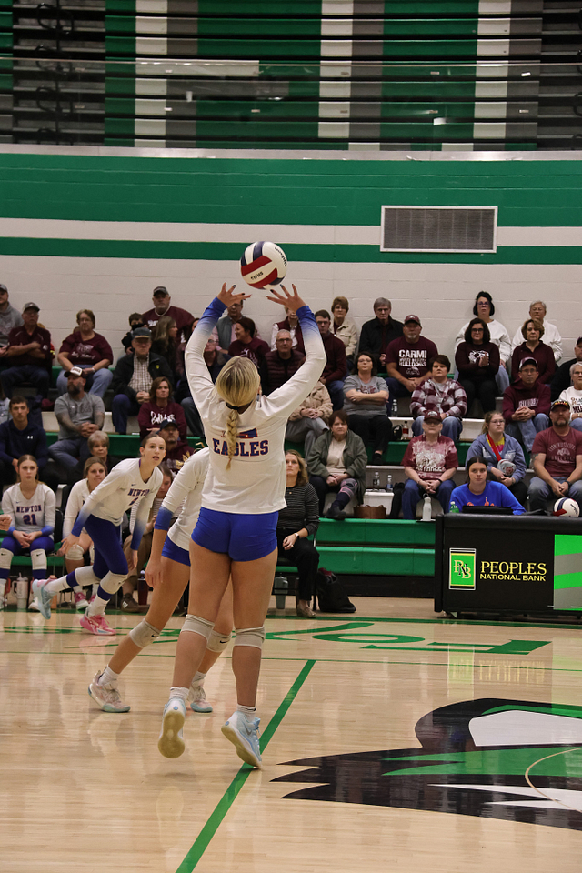 The Newton Eagles volleyball team saw their postseason run come to an end on Wednesday night, falling to Carmi in straight sets, 14-25 and 11-25. Despite the loss, the Eagles wrapped up an outstanding season with a final record of 21-16, highlighted by earning a share of the Little Illini Conference Championship.
