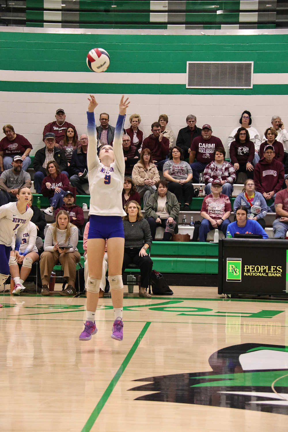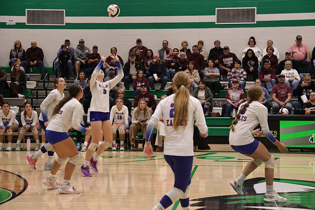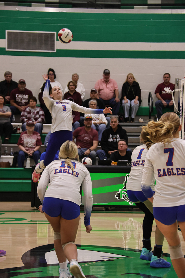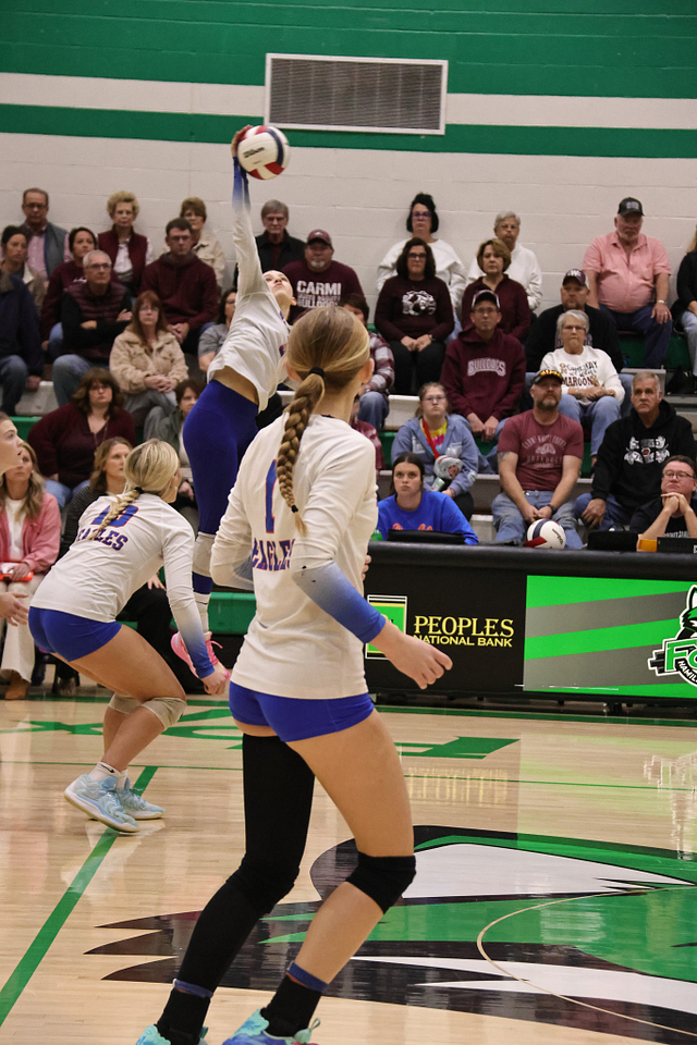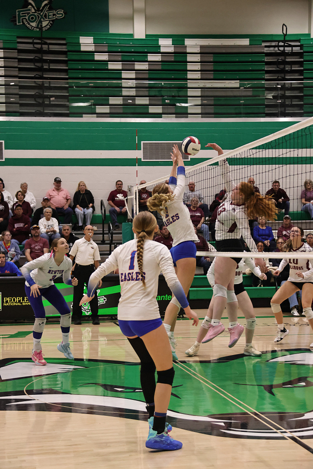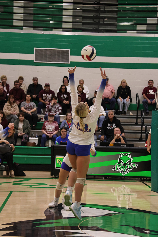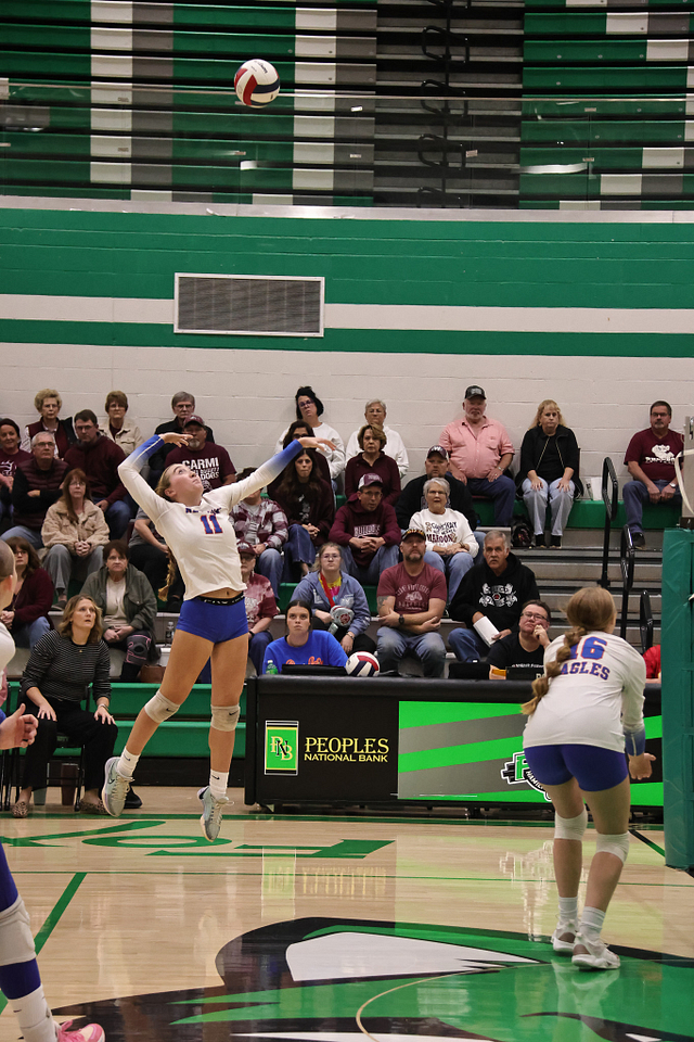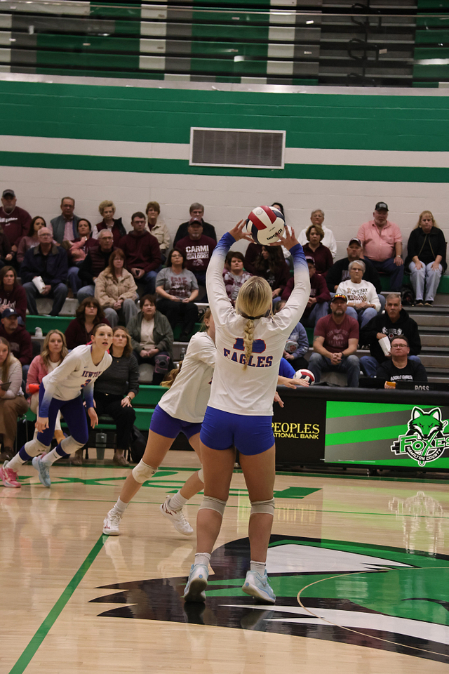 The Newton Eagles volleyball team saw their postseason run come to an end on Wednesday night, falling to Carmi in straight sets, 14-25 and 11-25. Despite the loss, the Eagles wrapped up an outstanding season with a final record of 21-16, highlighted by earning a share of the Little Illini Conference Championship.