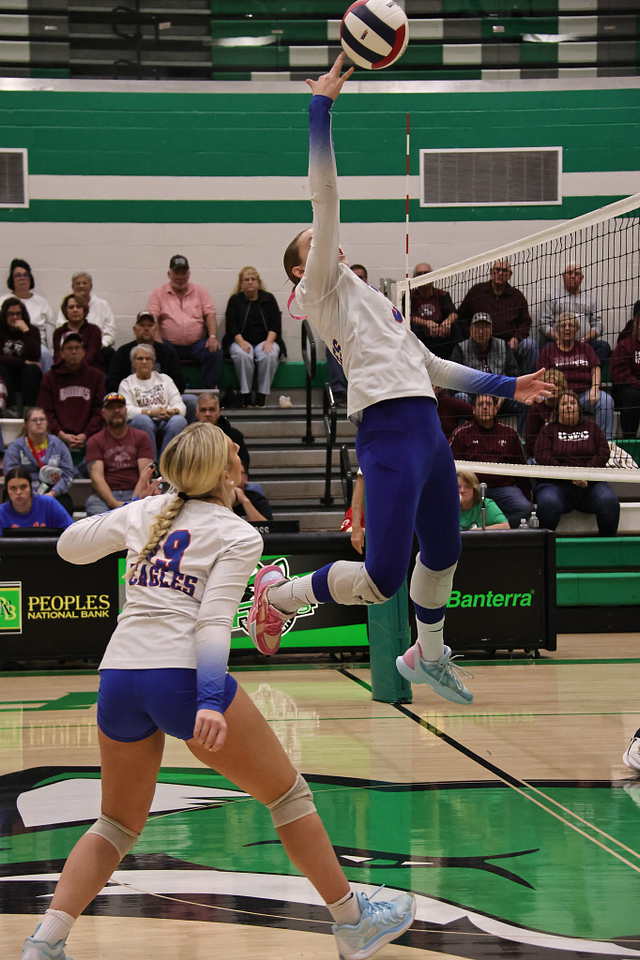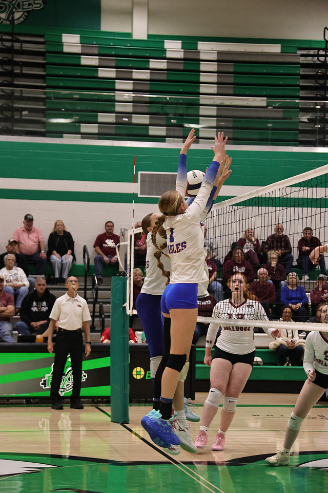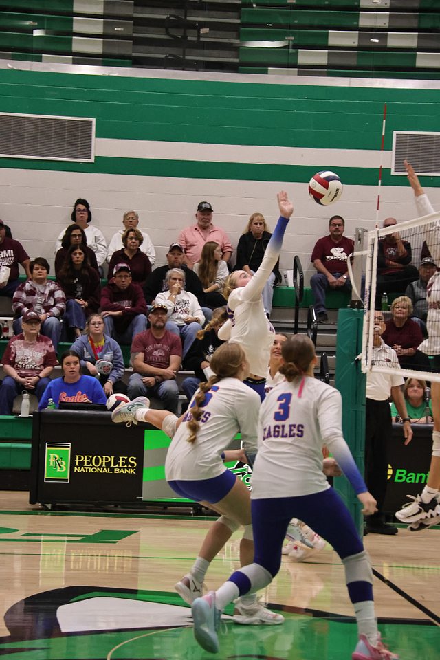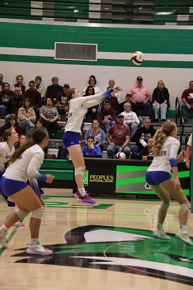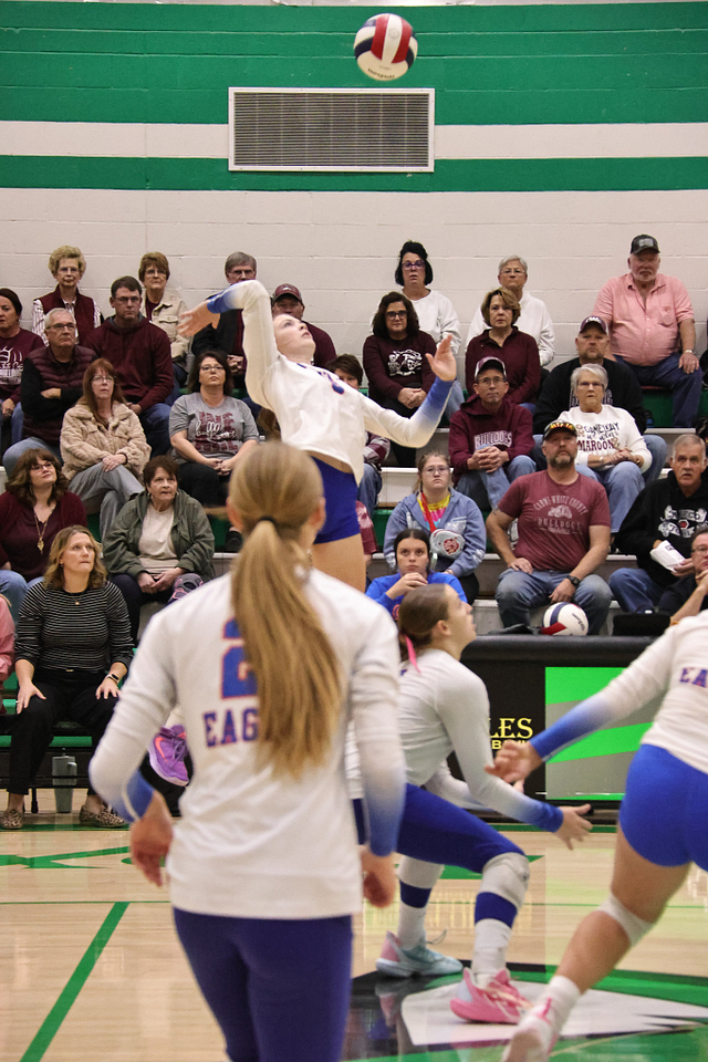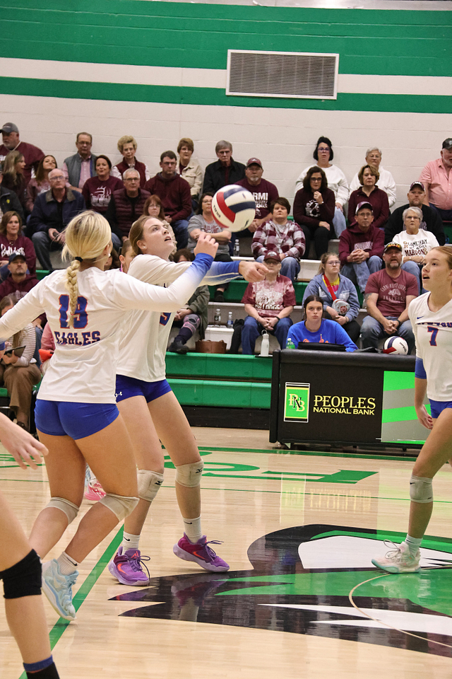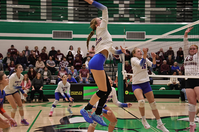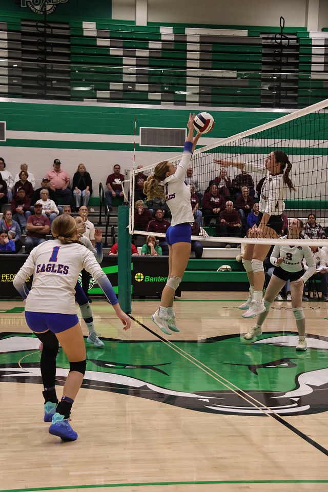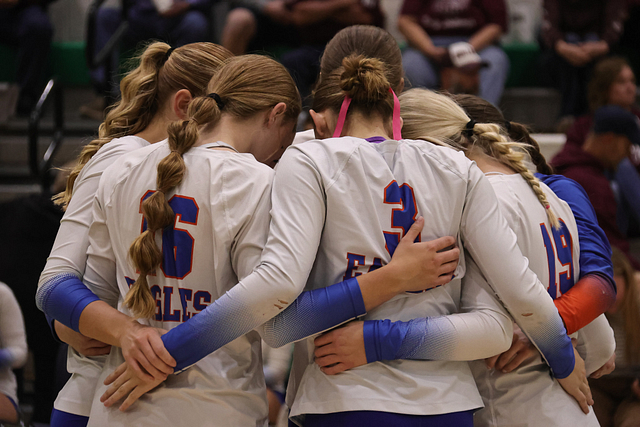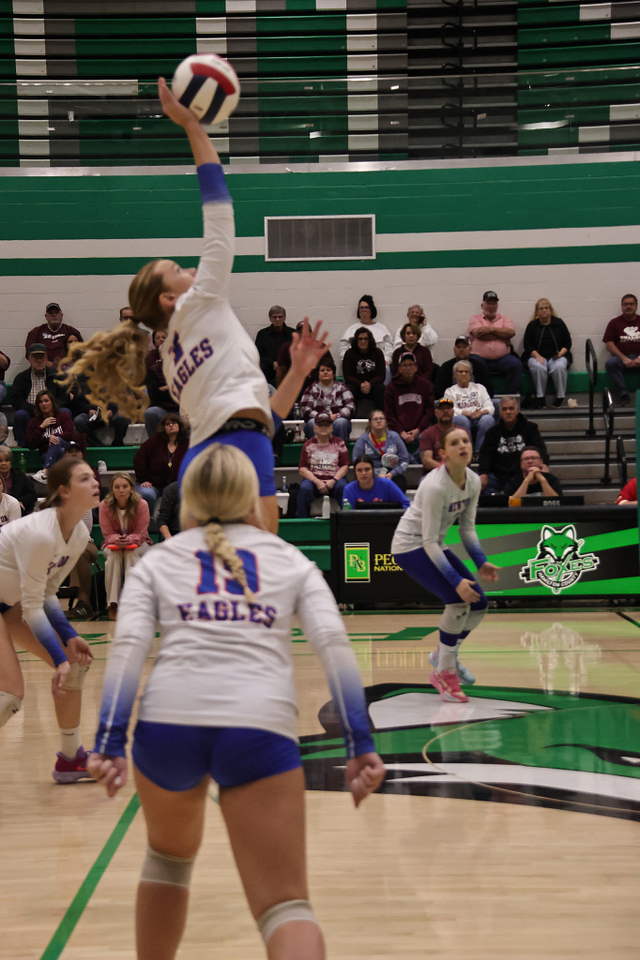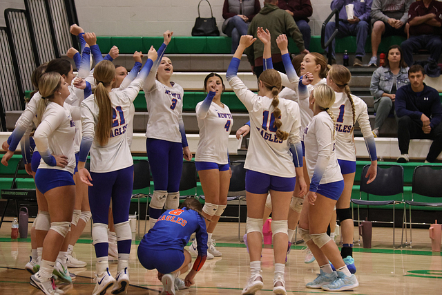 The Eagles’ offense was led by Hydi Bierman with nine kills, followed by Stella Schackmann with five. Amy Shull tallied 13 assists, while Morgan Schafer and Allie Hermann each recorded five digs on defense.