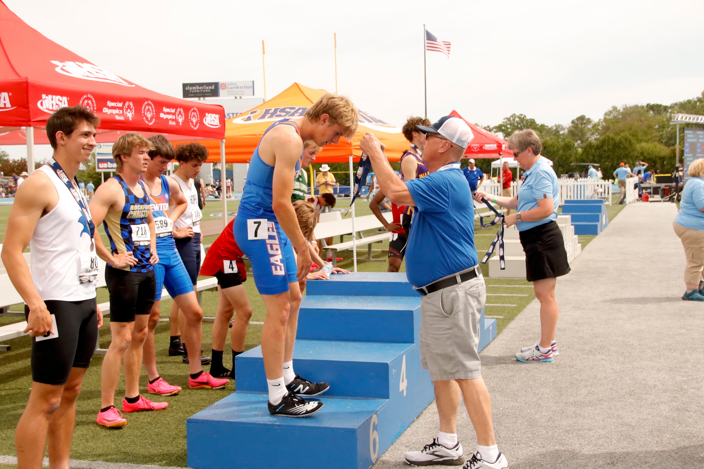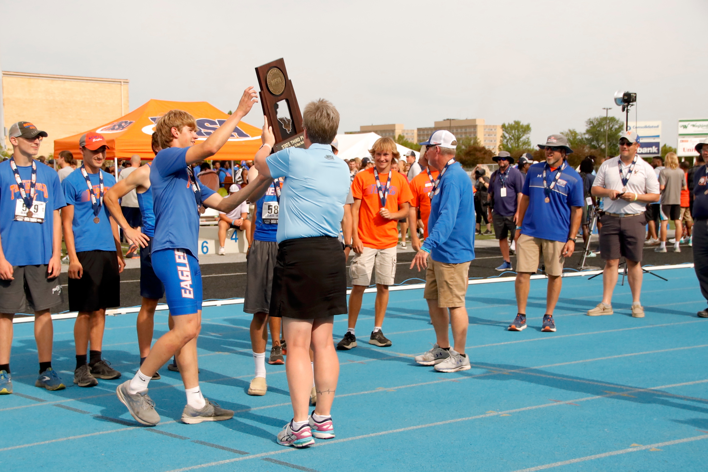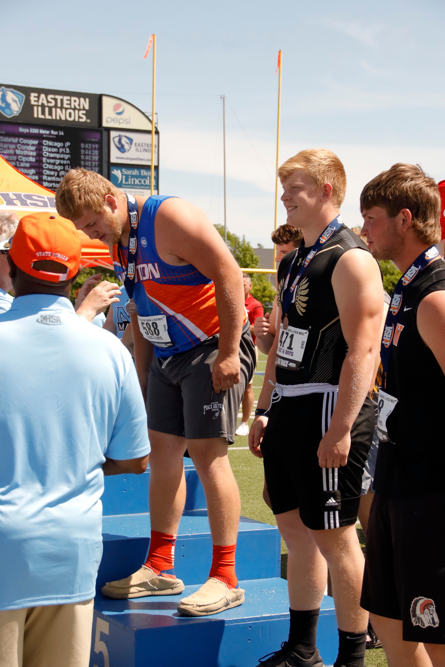 The Newton Eagles Boys Track team placed third in State 1A competition at the State Finals in Charleston on Saturday, May 27th. The team scored 30 points and were just barely edged out by Shelbyville who scored 30,5 points. Catlin (Salt Fork) scored 45 points.