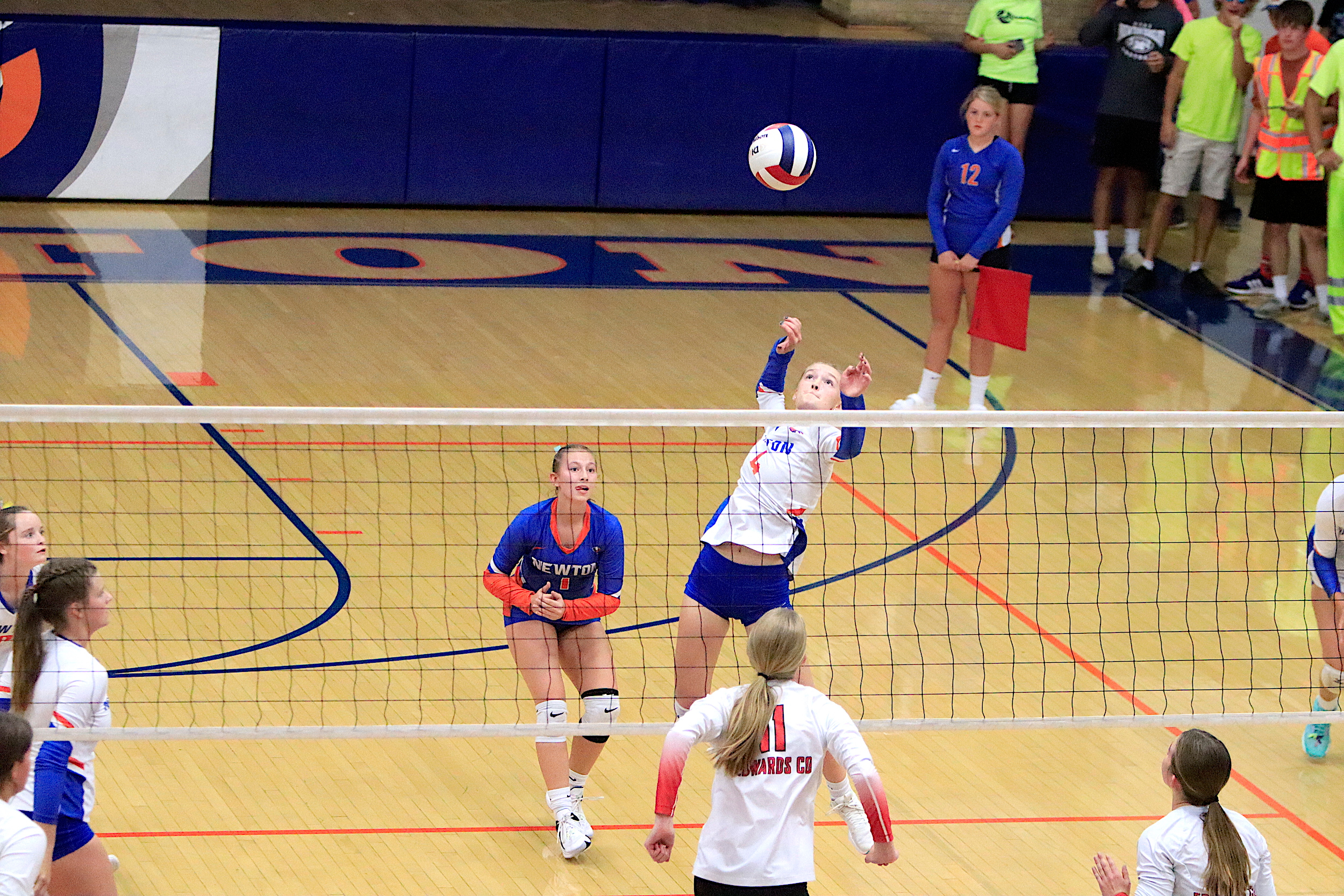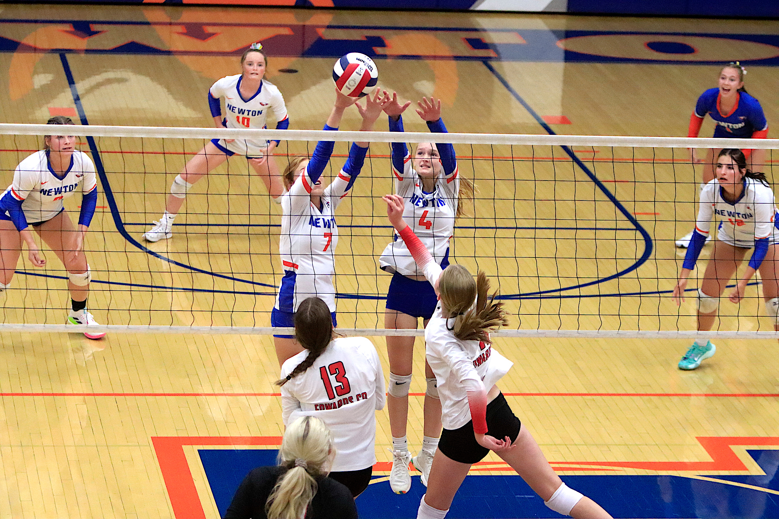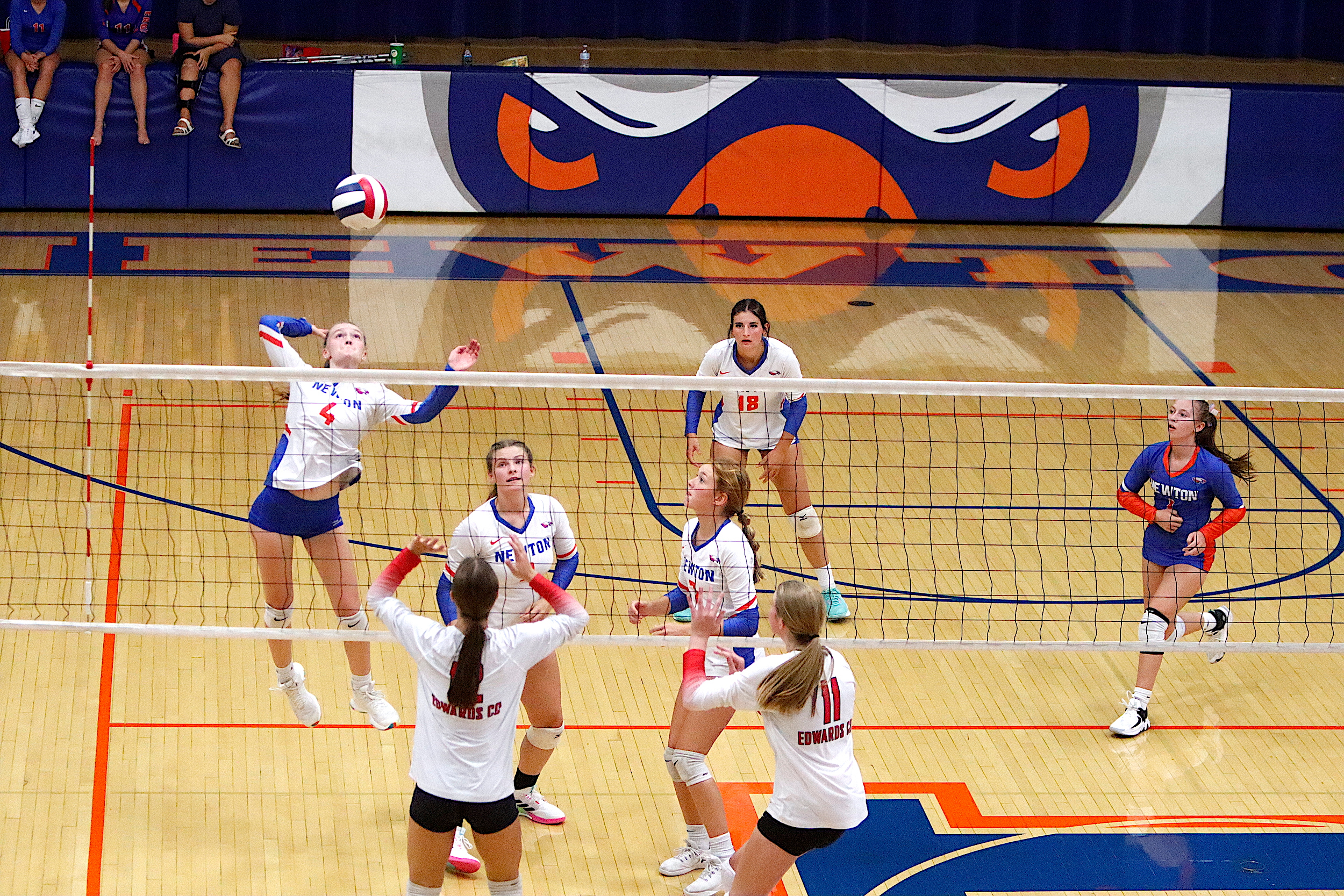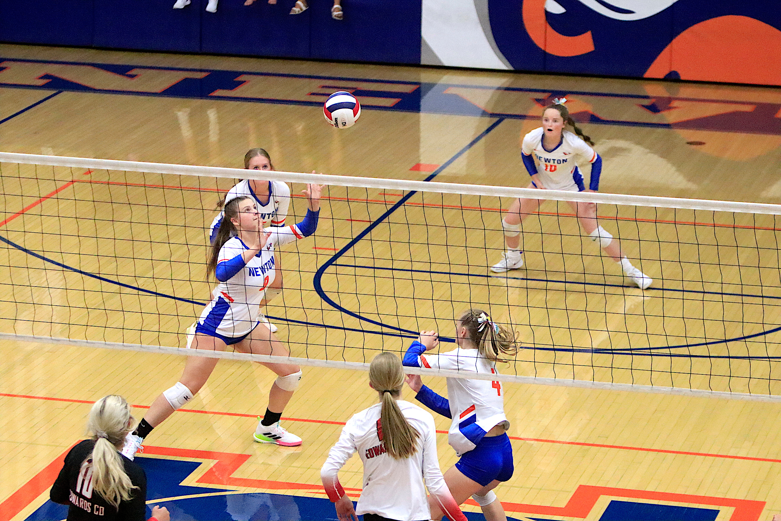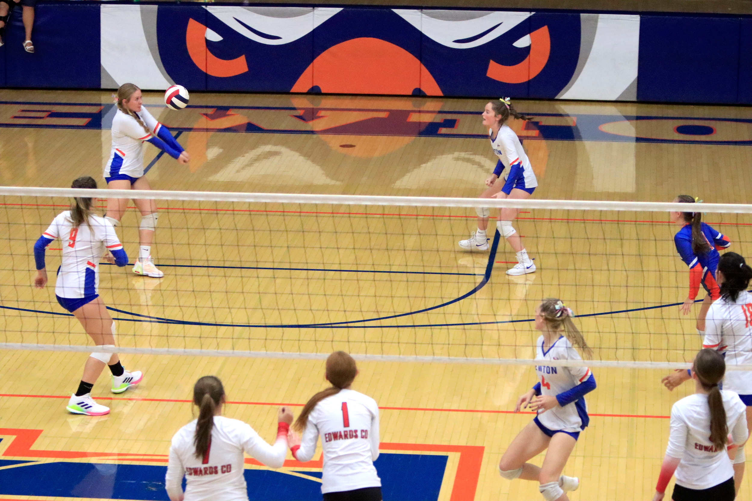 The Newton Lady Eagles varsity volleyball team fell to Edwards County in three sets on Thursday, September 7th. The freshman team split sets with scores of 12-25 and 25-16. The junior varsity team won in two sets with scores of 25-16 and 25-19. The varsity lost in three sets of 25-17, 18-25, and 16-25.