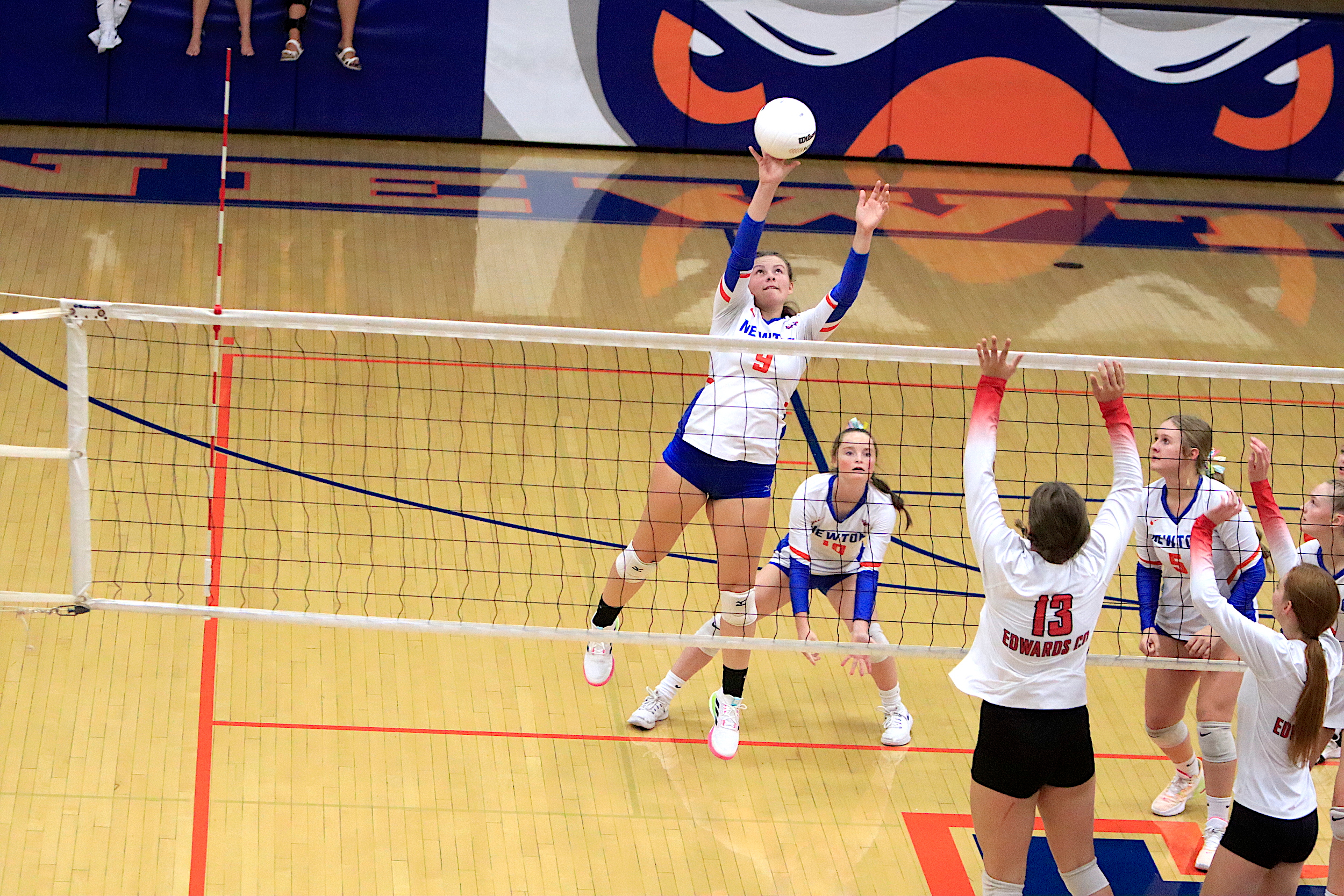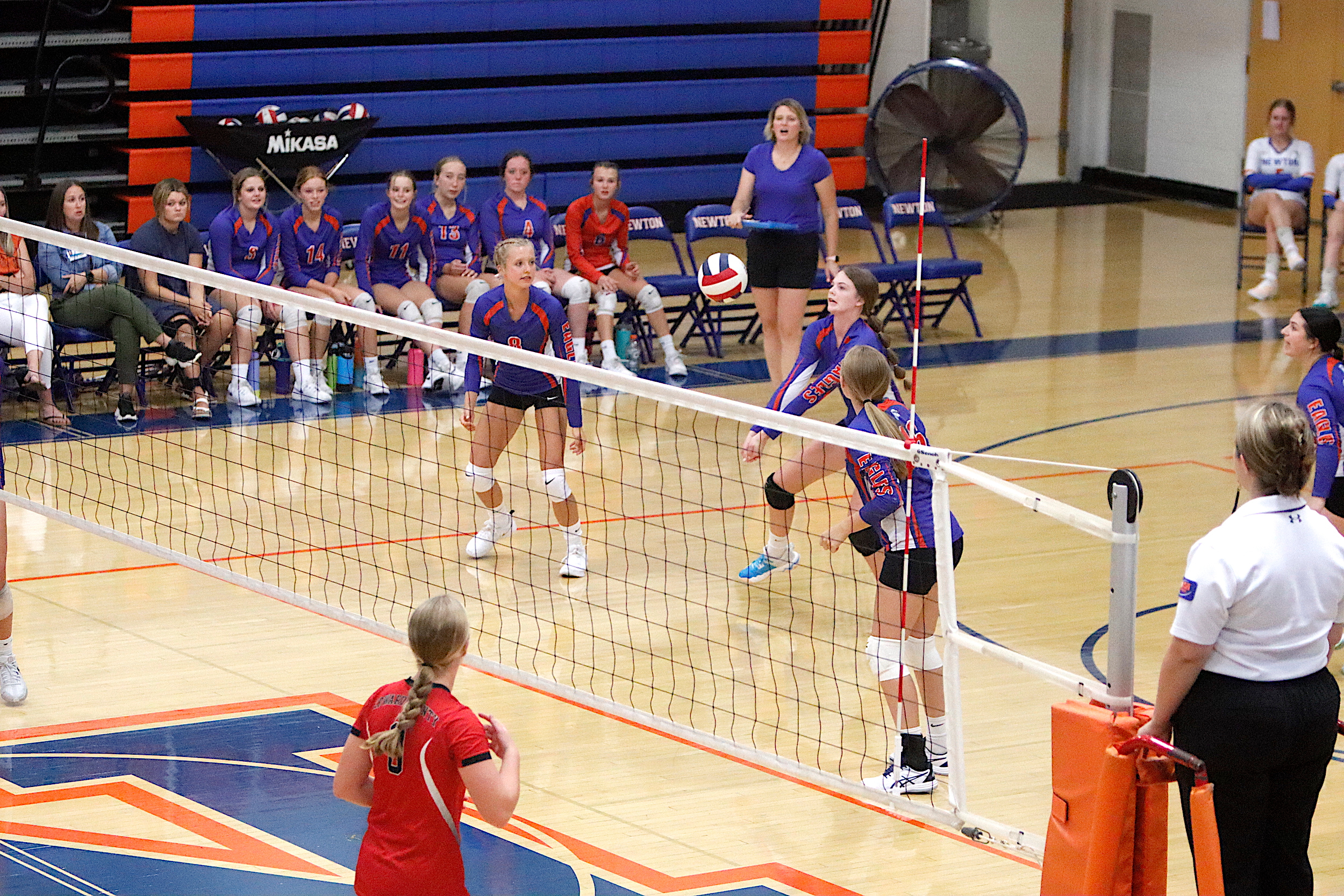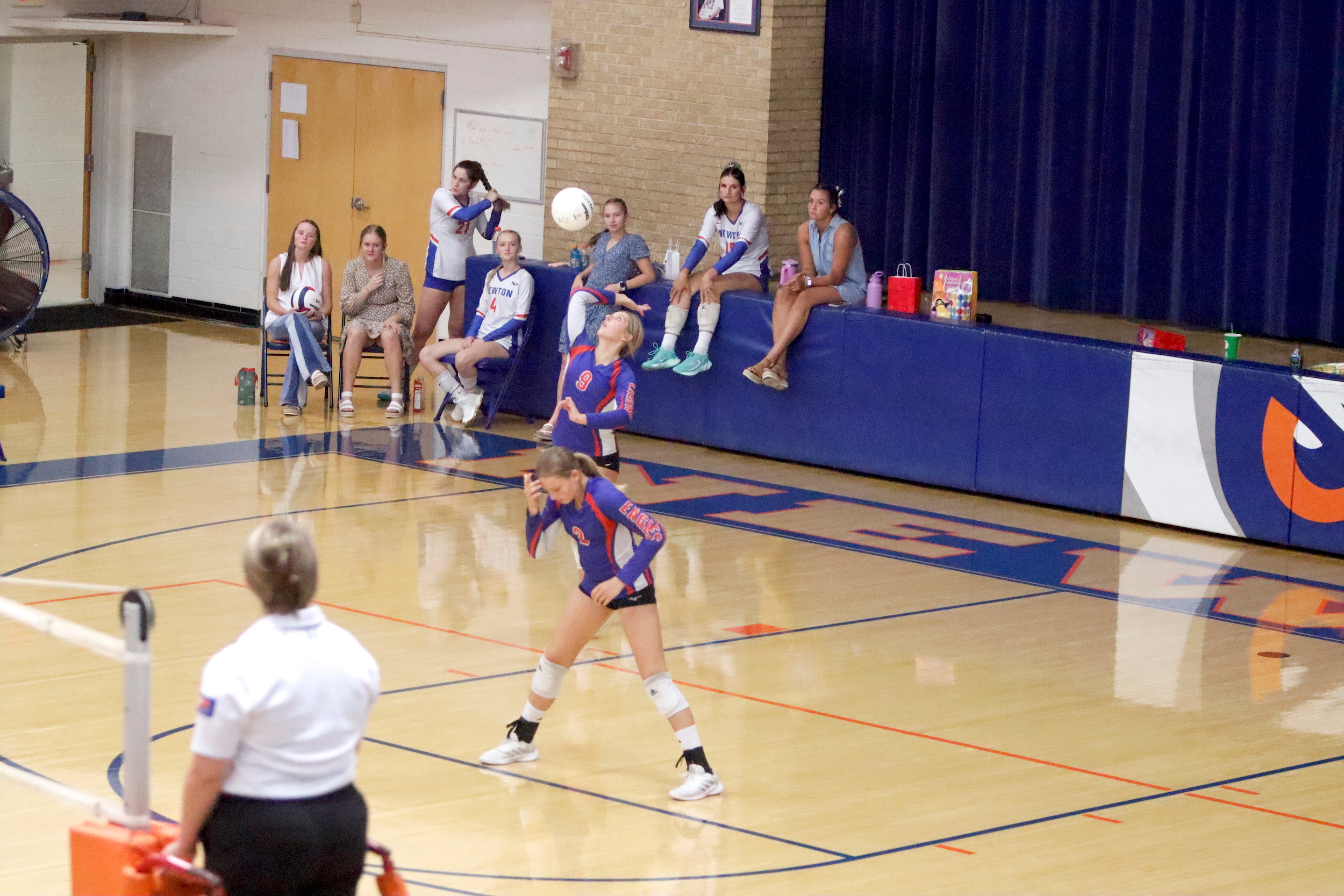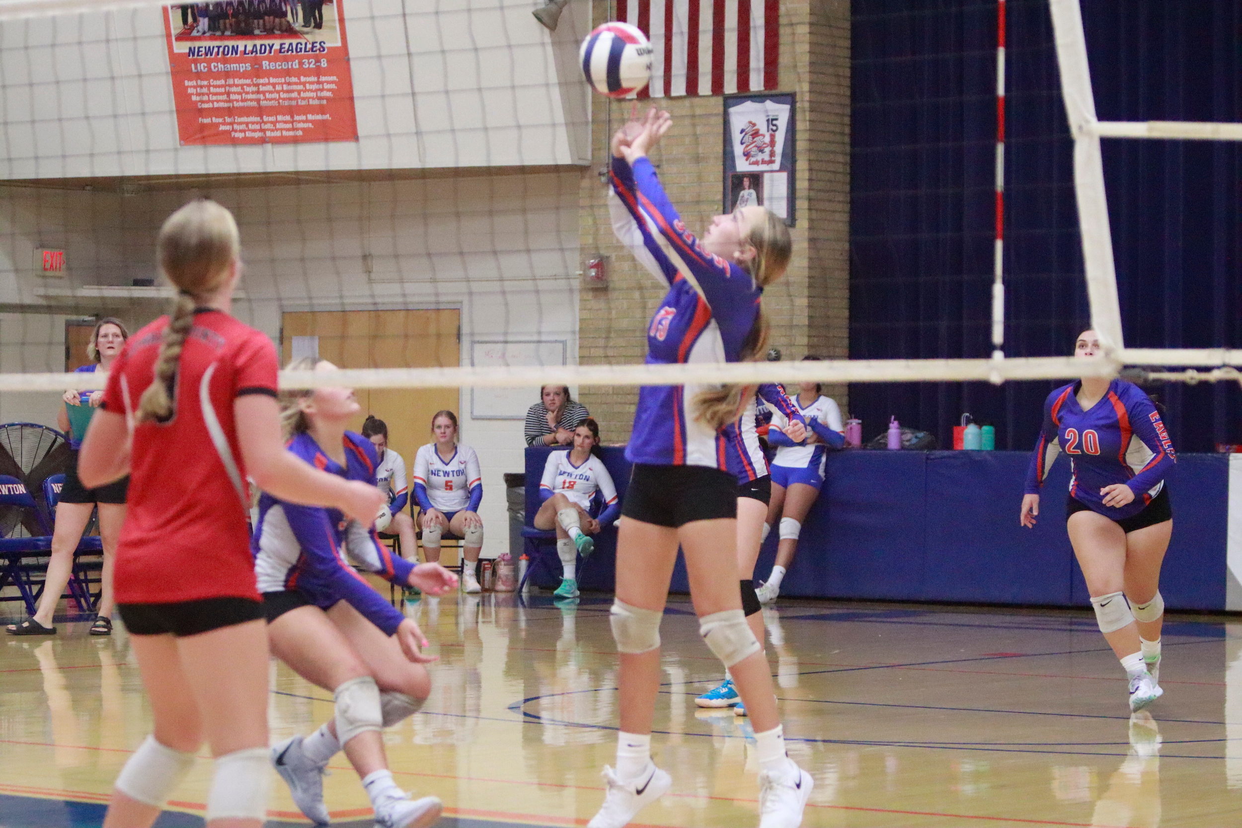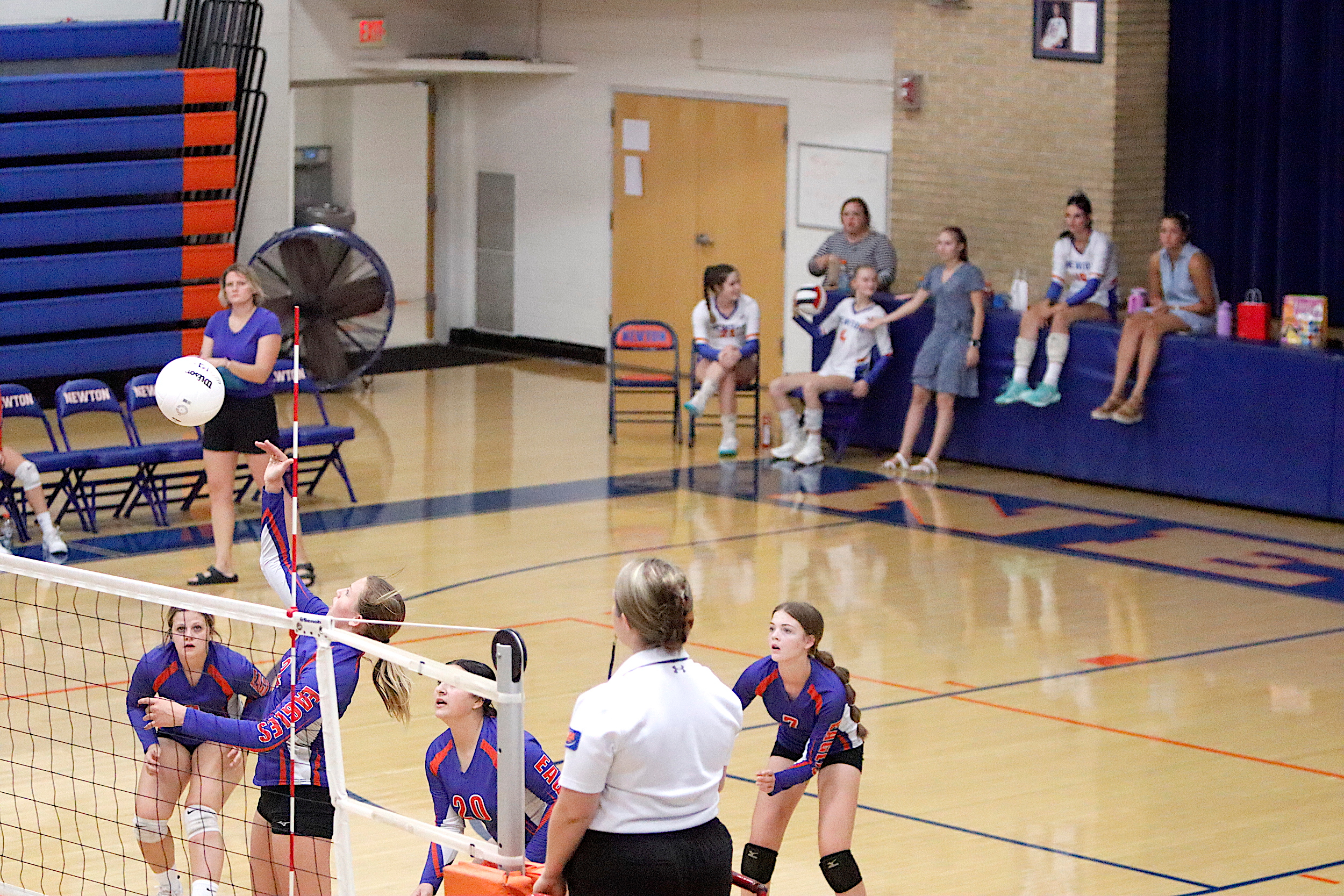 The Newton Lady Eagles varsity volleyball team fell to Edwards County in three sets on Thursday, September 7th. The freshman team split sets with scores of 12-25 and 25-16. The junior varsity team won in two sets with scores of 25-16 and 25-19. The varsity lost in three sets of 25-17, 18-25, and 16-25.