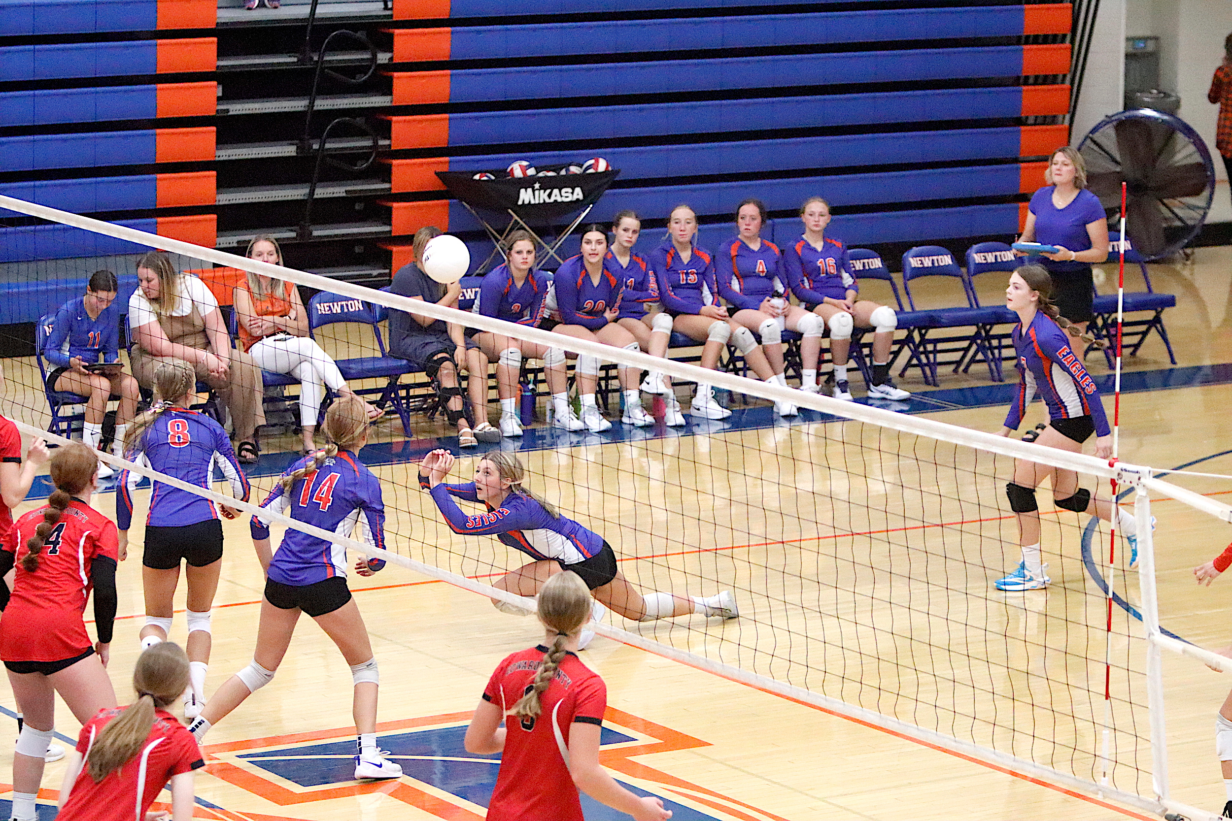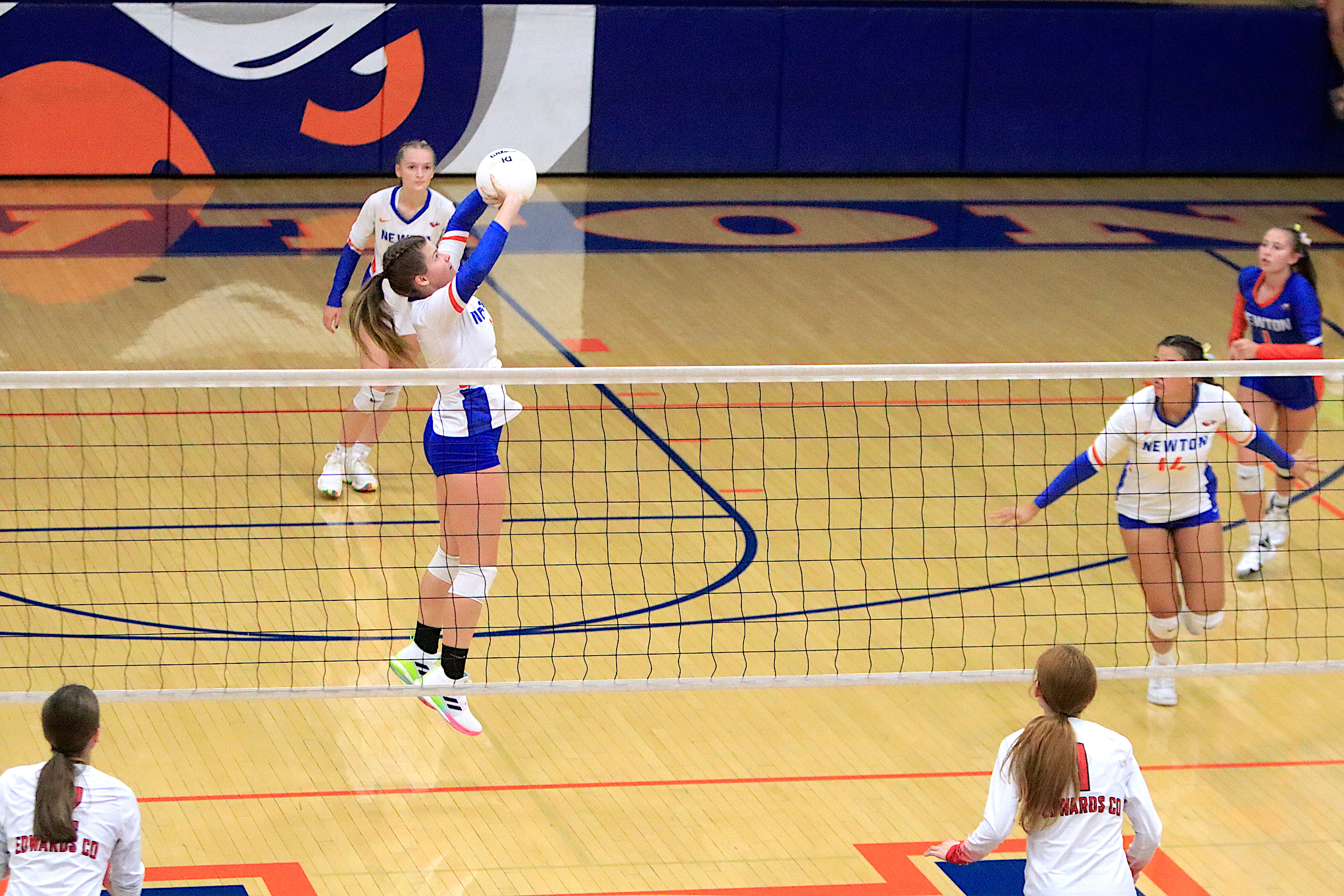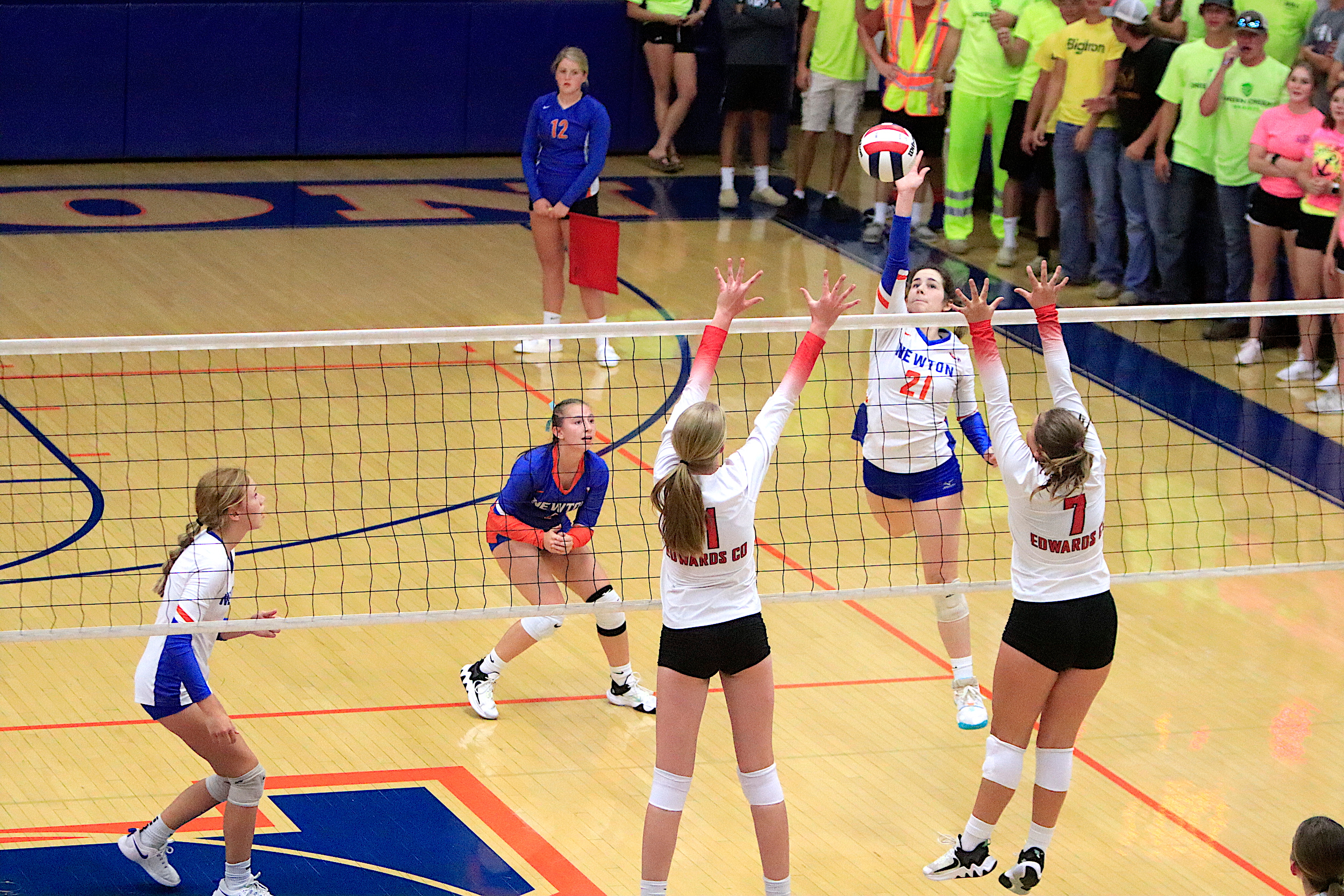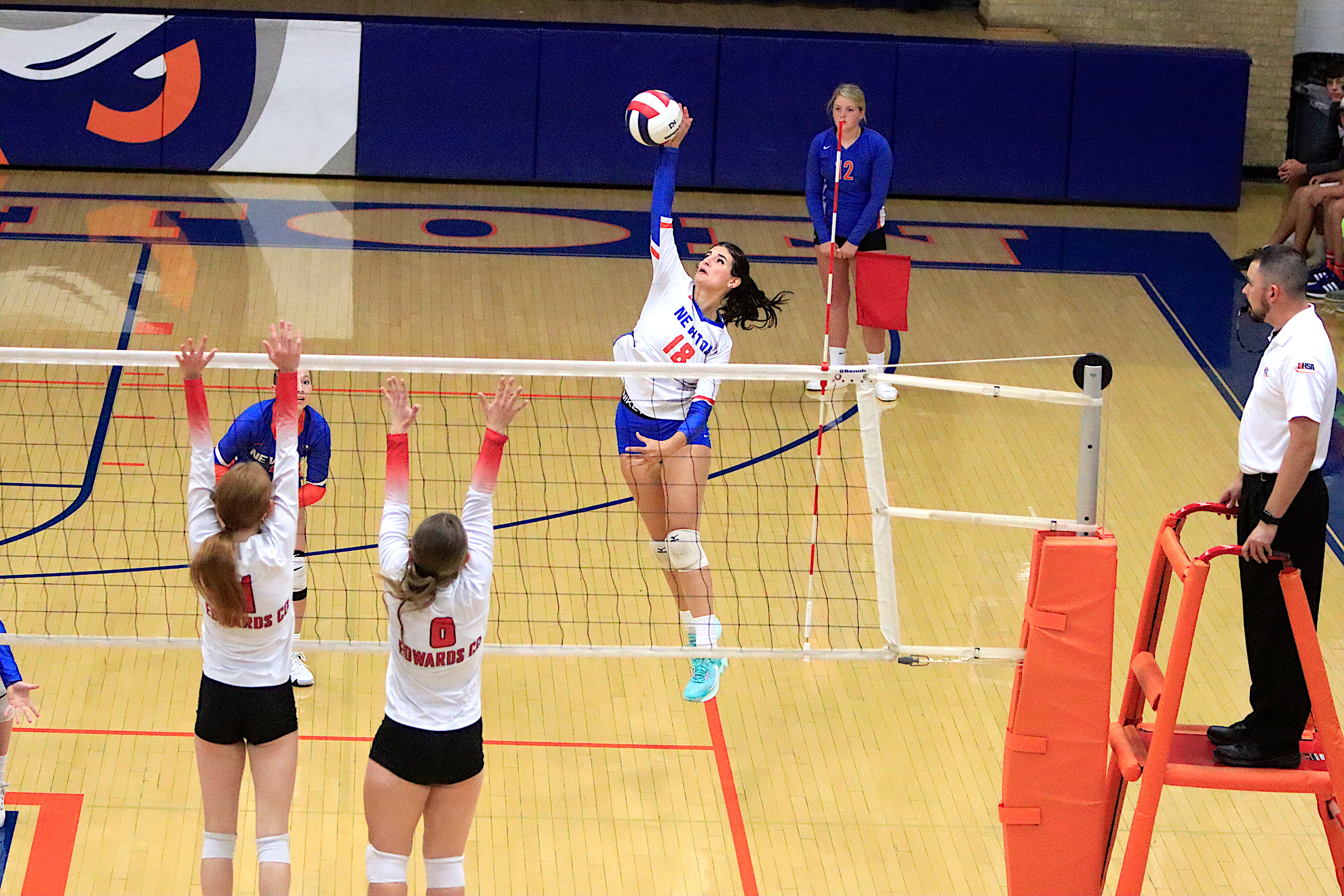 The Newton Lady Eagles varsity volleyball team fell to Edwards County in three sets on Thursday, September 7th. The freshman team split sets with scores of 12-25 and 25-16. The junior varsity team won in two sets with scores of 25-16 and 25-19. The varsity lost in three sets of 25-17, 18-25, and 16-25.