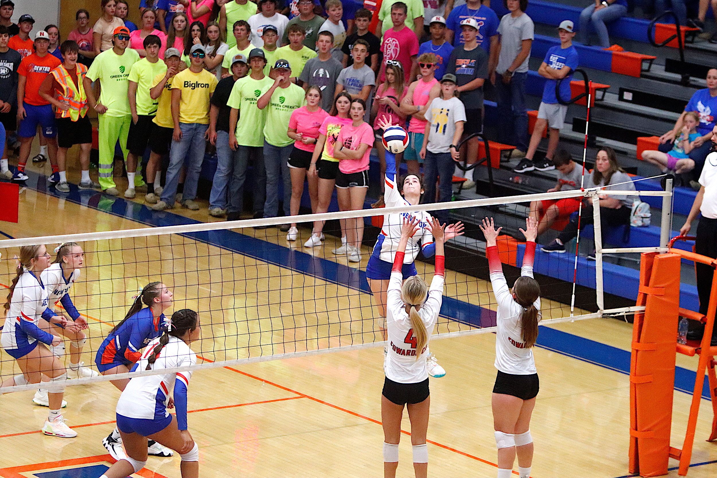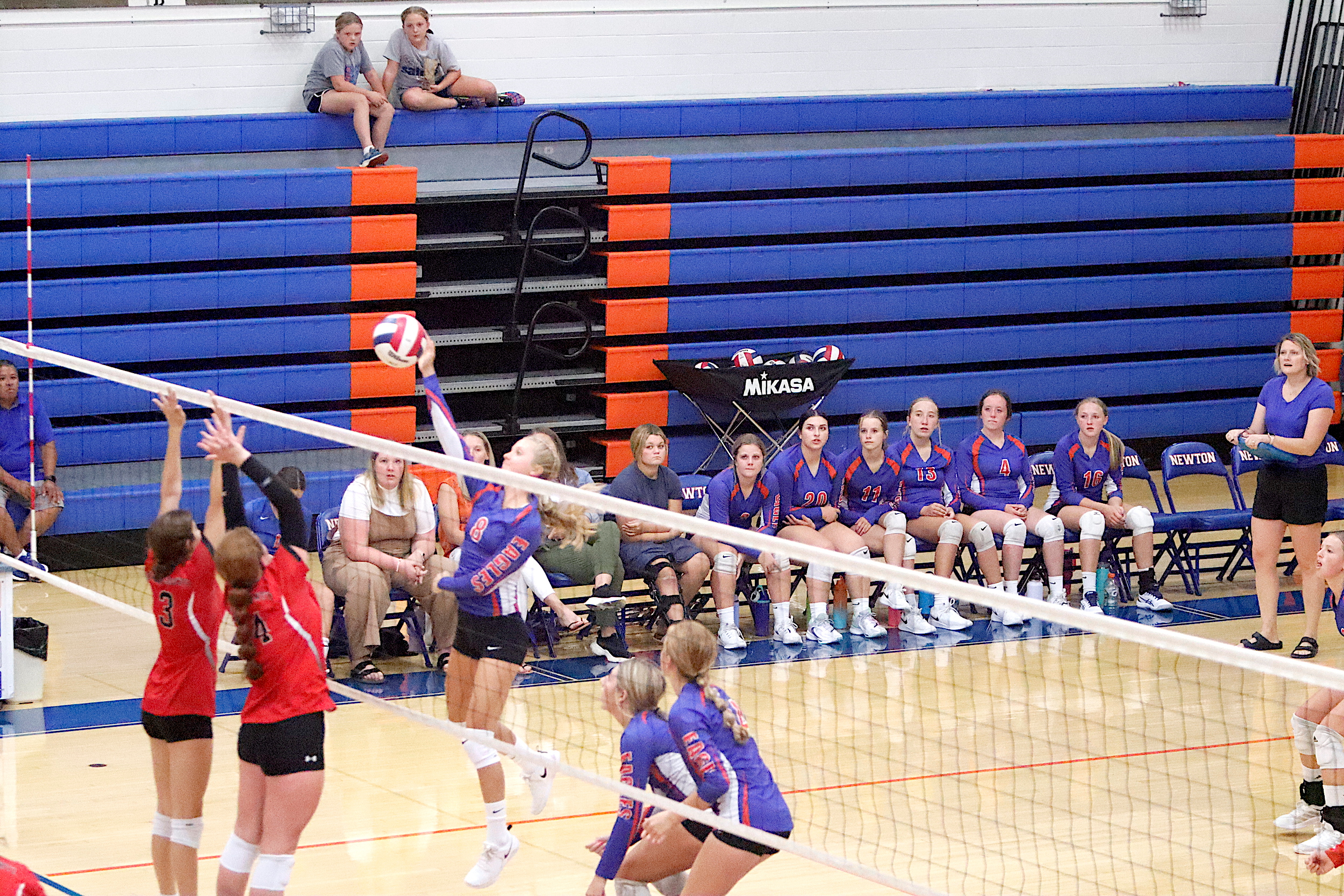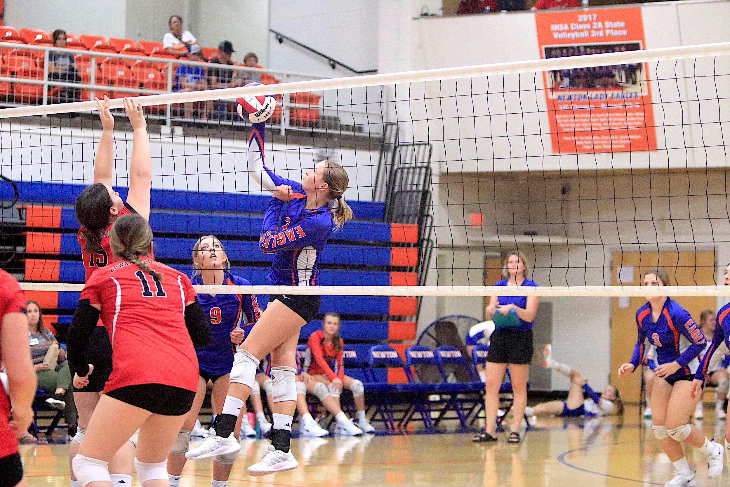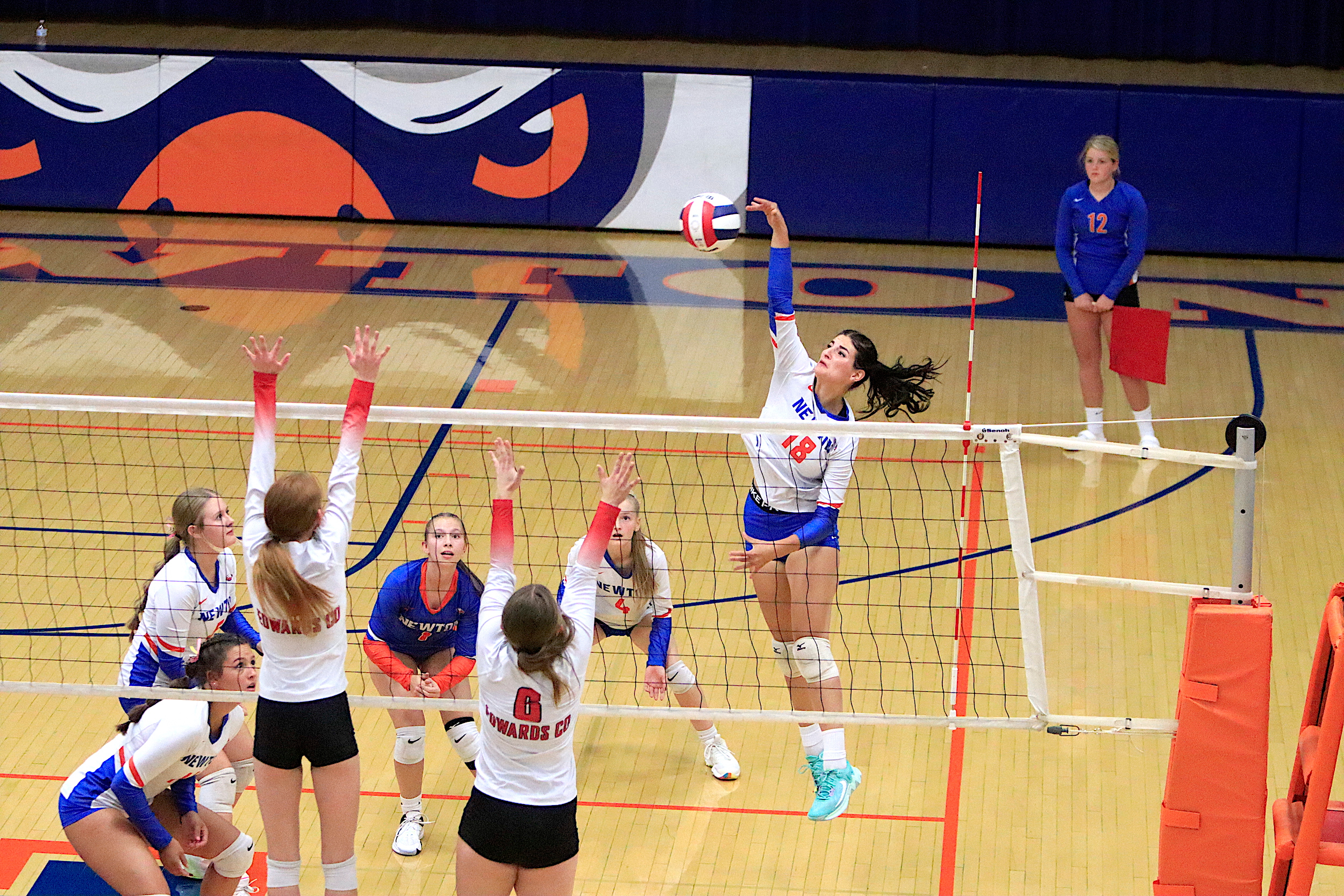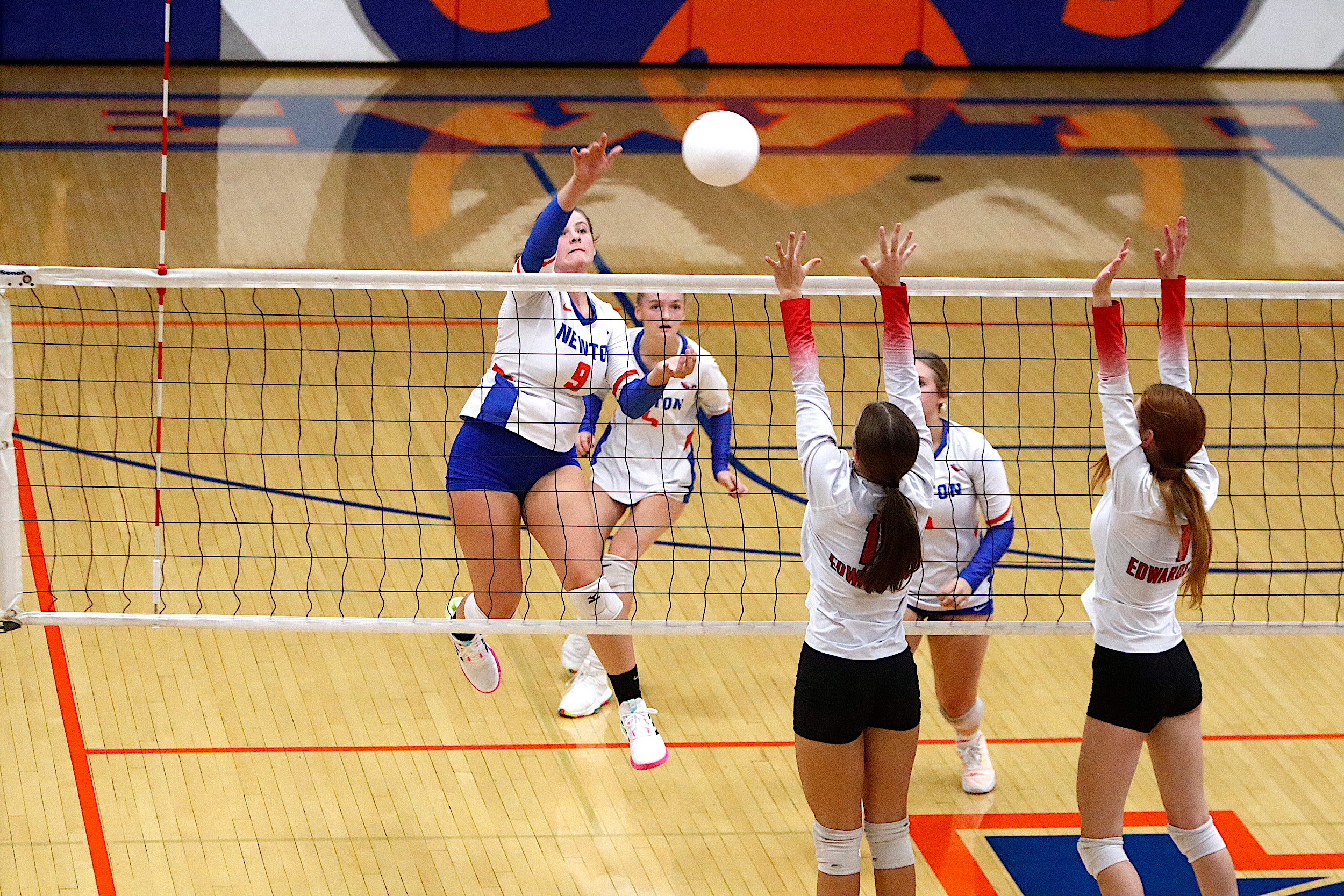 The Newton Lady Eagles varsity volleyball team fell to Edwards County in three sets on Thursday, September 7th. The freshman team split sets with scores of 12-25 and 25-16. The junior varsity team won in two sets with scores of 25-16 and 25-19. The varsity lost in three sets of 25-17, 18-25, and 16-25.