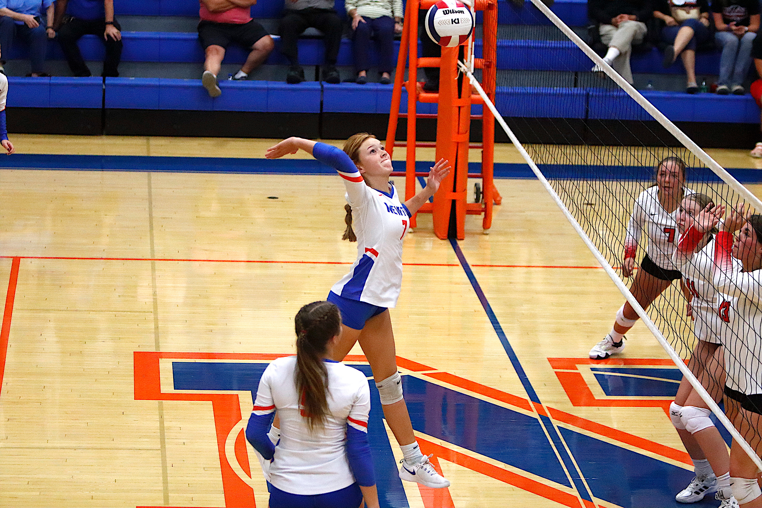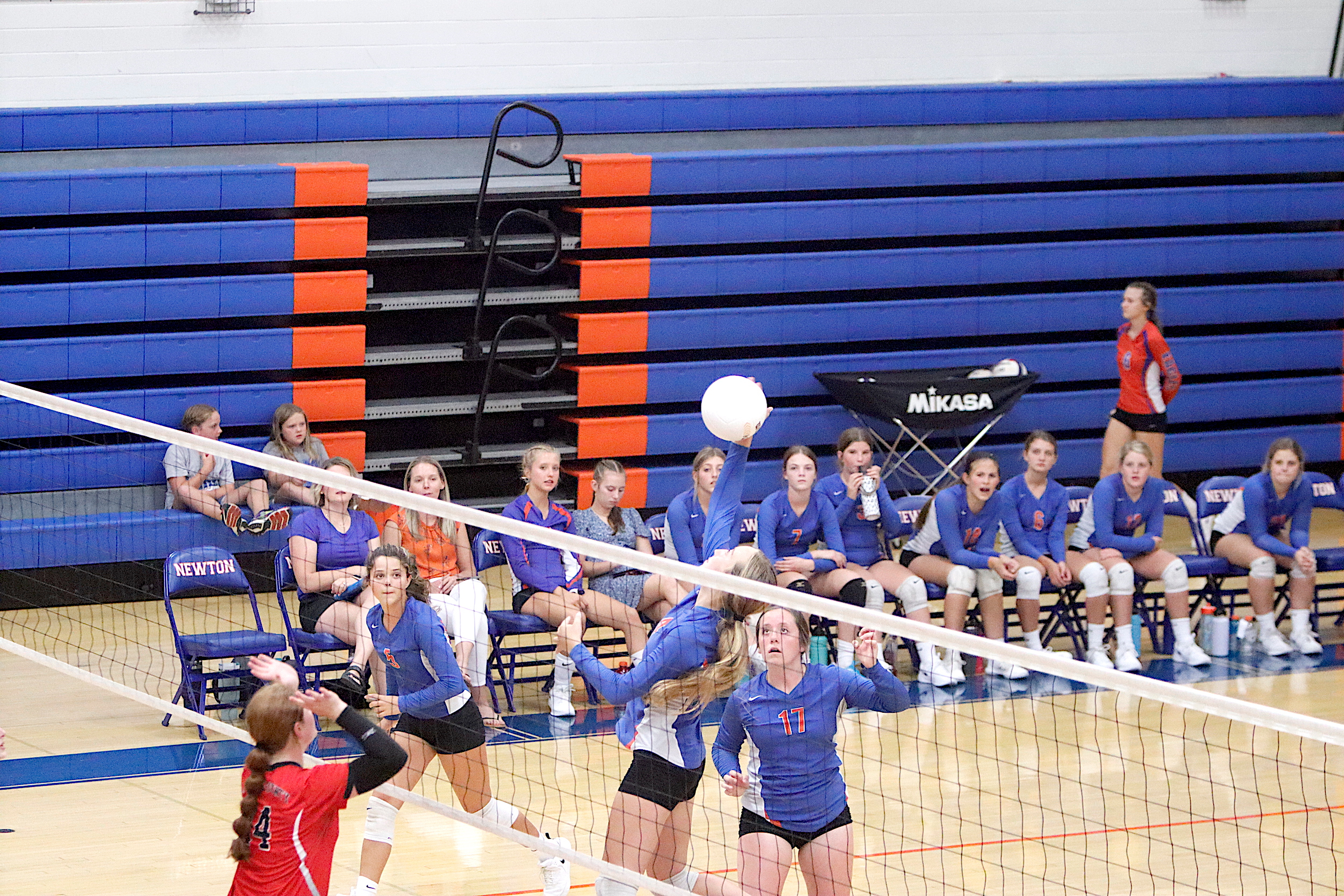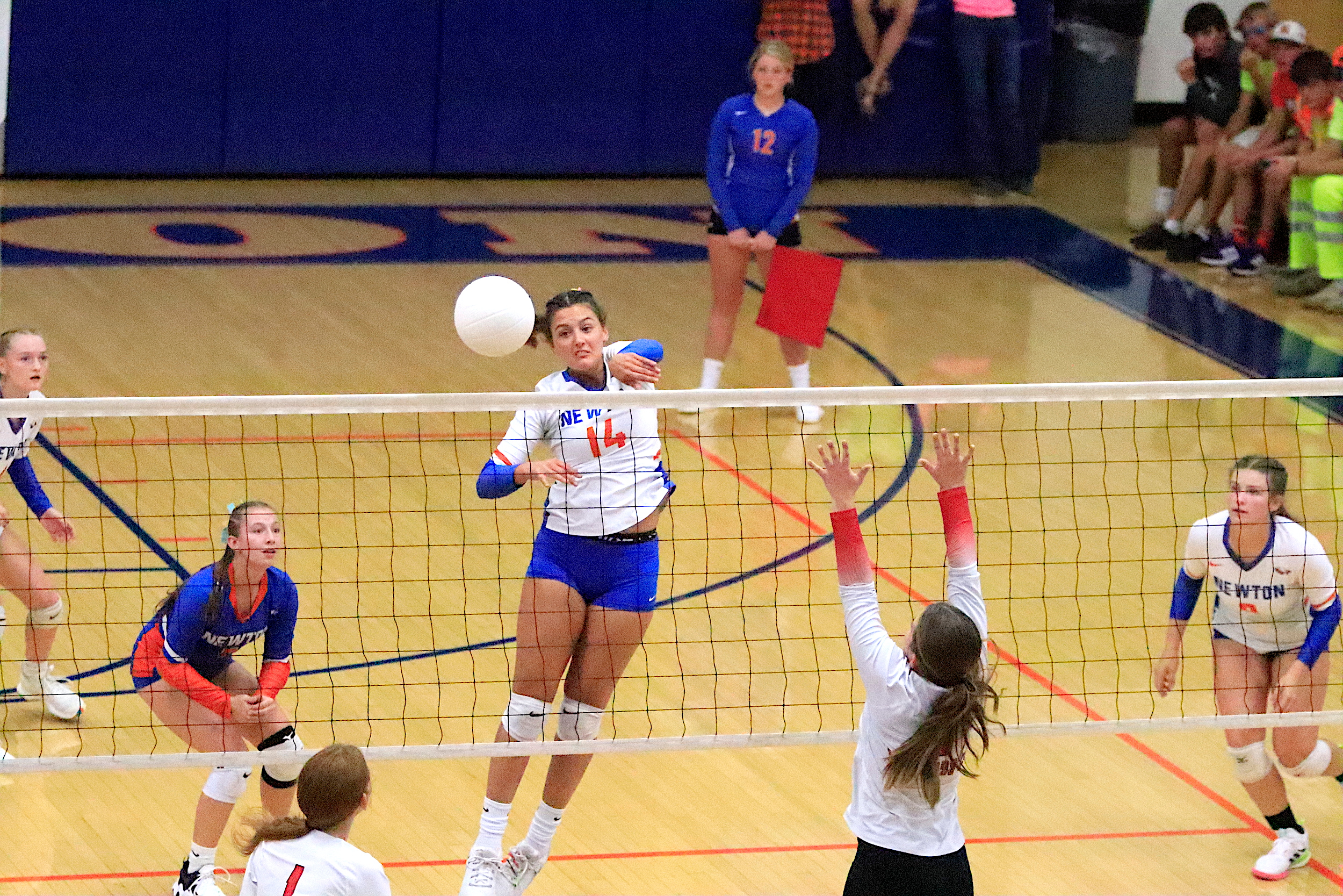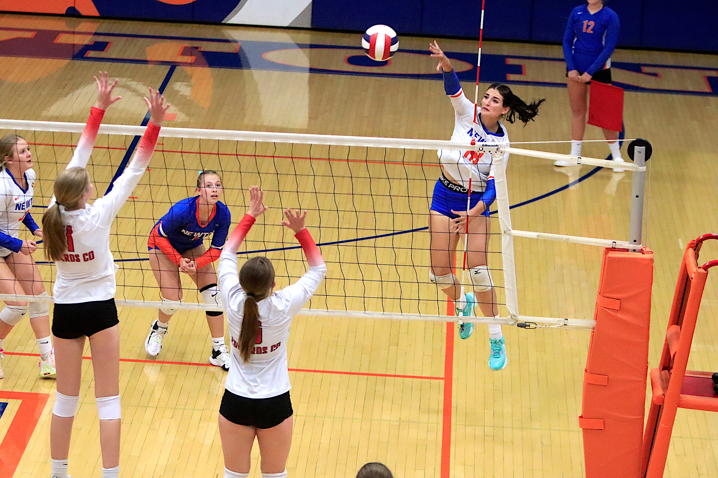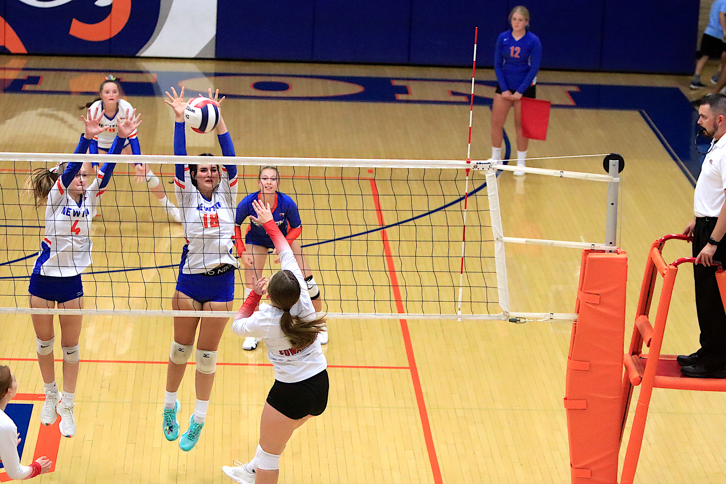 The Newton Lady Eagles varsity volleyball team fell to Edwards County in three sets on Thursday, September 7th. The freshman team split sets with scores of 12-25 and 25-16. The junior varsity team won in two sets with scores of 25-16 and 25-19. The varsity lost in three sets of 25-17, 18-25, and 16-25.