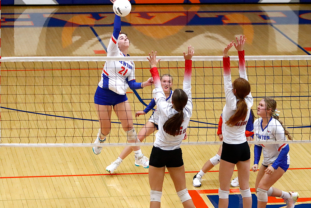 The Newton Lady Eagles varsity volleyball team fell to Edwards County in three sets on Thursday, September 7th. The freshman team split sets with scores of 12-25 and 25-16. The junior varsity team won in two sets with scores of 25-16 and 25-19. The varsity lost in three sets of 25-17, 18-25, and 16-25.