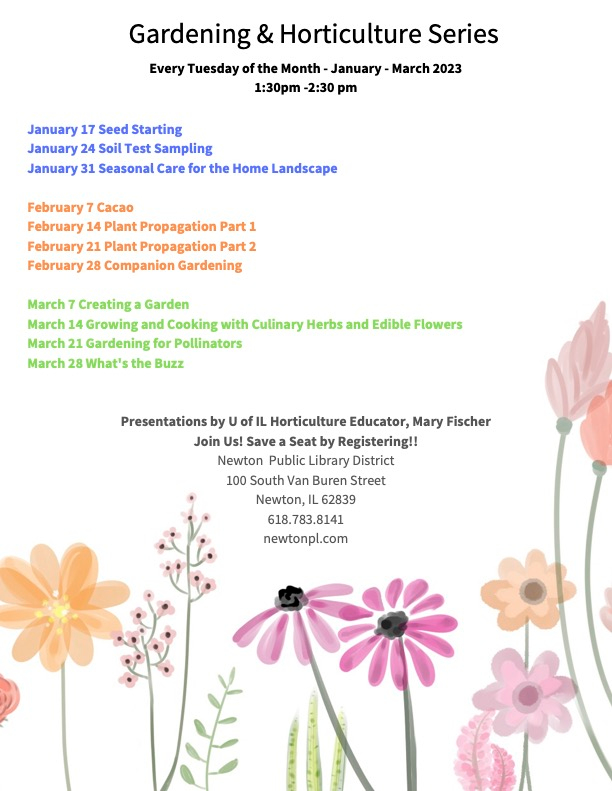 Presentations by U of IL Horticulture Educator, Mary Fischer Join Us! Save a Seat by Registering!!