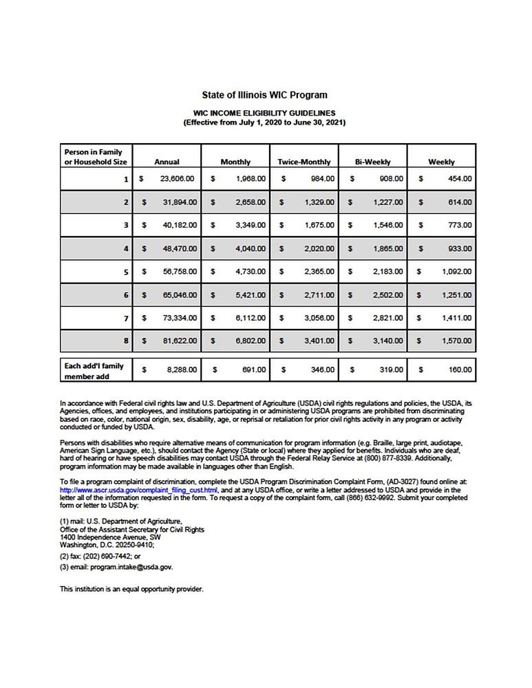 The Jasper County Health Department WIC Guidelines effective from July 1, 2020 to June 30, 2021