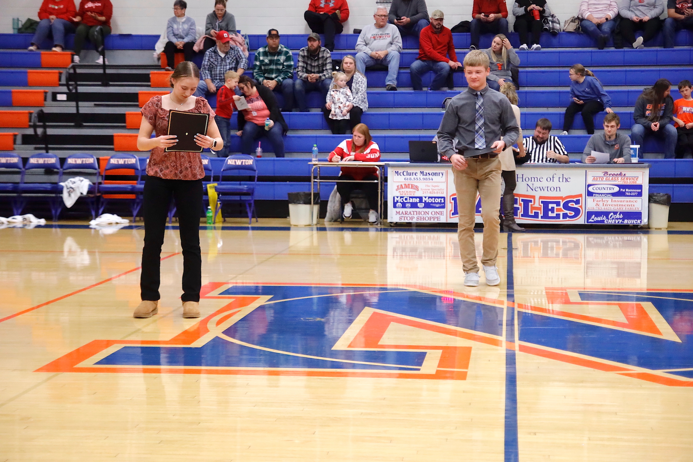 Five Newton Community High School seniors received the recognition of Illinois State Scholar and were recognized at the home basketball game against Effingham. These five students were Elley Bennett, Key Bergbower, Aleah Higgs, Katie Shamhart, and Luke Weber.