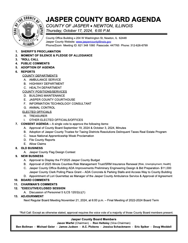 Jasper County Board Agenda for October