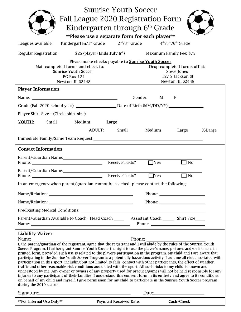 The Jasper County Youth Soccer program will be hosting registration for the fall season between now and July 8. More information can be found on the registration form. All forms will be considered early bird for fee pricing.