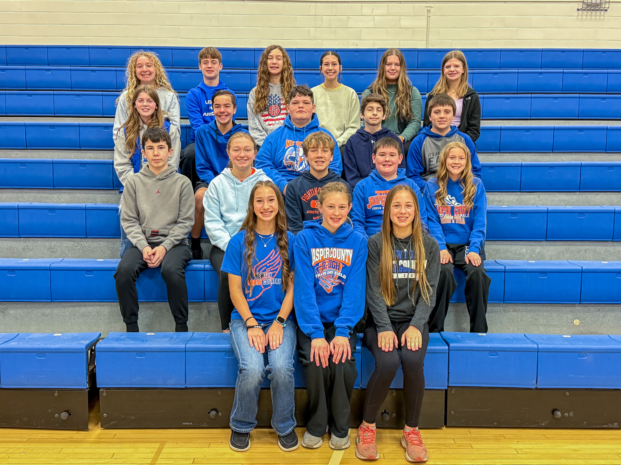 2025 JCJH Track Team:Front Row: Preston Harris, Silas Tabrizi, Cambell Ulm, Kendall Probst, Adam Kocher 2nd Row: Brayan Ramos, Xavier Neal, William Michl, Noah Johnson, Brendan Emmerich, Landen Gentry, Chase Kistner 3rd Row: Alexis Evans, Cambry Flasch, Amelia Kennedy, Haylee Line, Kimberly Bierman, Hayden Evans, Heather Bergbower, Nora Street, Camila Ramos, Jenna Hall, Sutton Helm Back Row: Coach Brooklyn Herman, Brooke Gentry, Chloe Holsapple, Riley Tarr, Kya Keller, Bethany Larson, Layla Kuhl, Ashtan Merrell, Tinley Lingafelter, Kraegan Groves, Jordyn McClure, Layla Thomann, Coach Troy Bierman
