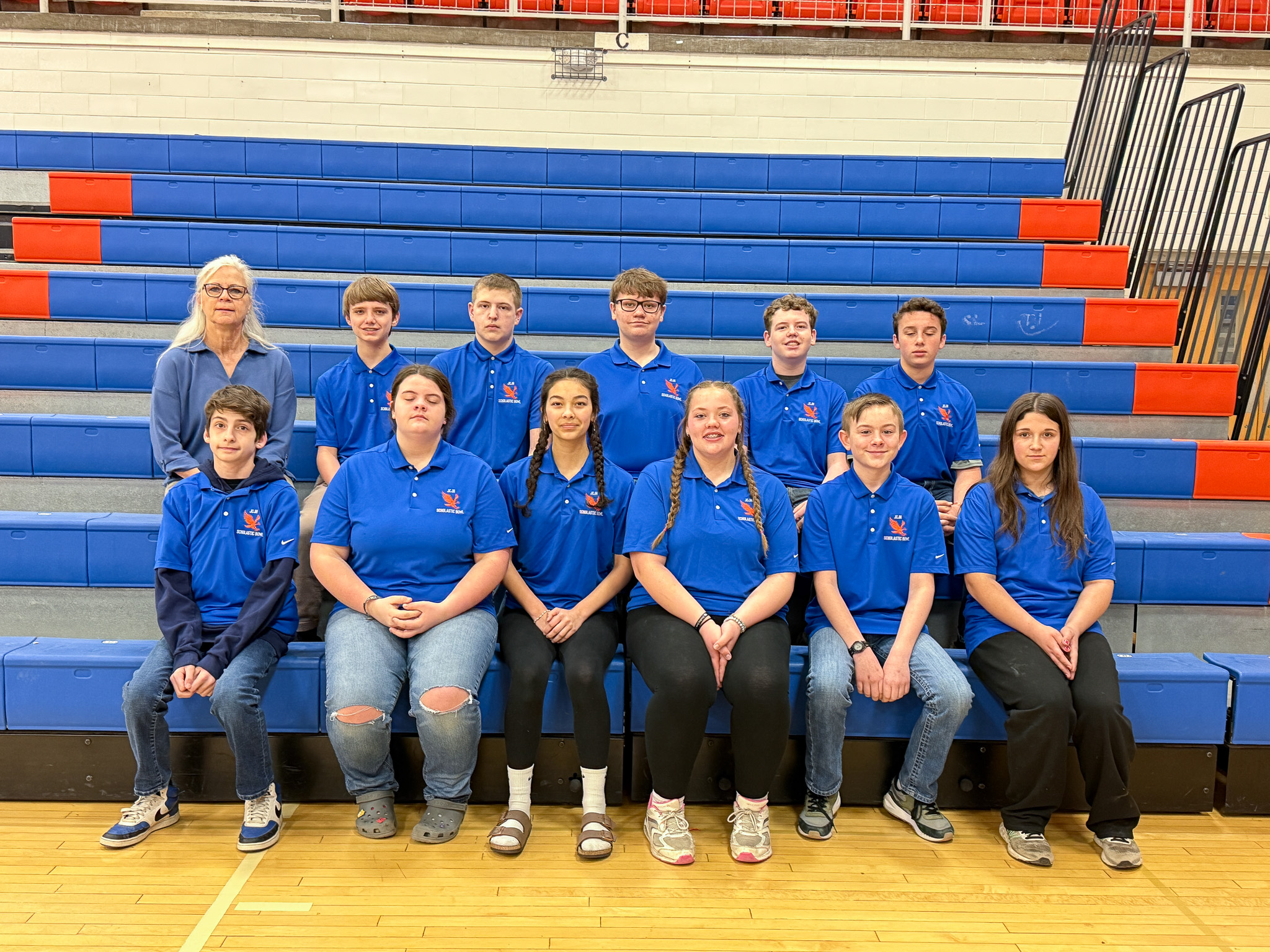 2025 Scholastic Bowl Front Row: Chase Coovert, Josey McGlashon, Jasmine Luthy, Bethany Larson, Ryan Kinkelaar, Bailey Keebler Back Row: Coach Deb Weiler, Drew Iffert, Jude Tracy, Carter Clark, Marshall Kuhn, Liam Kinkelaar