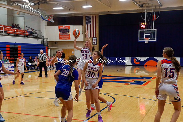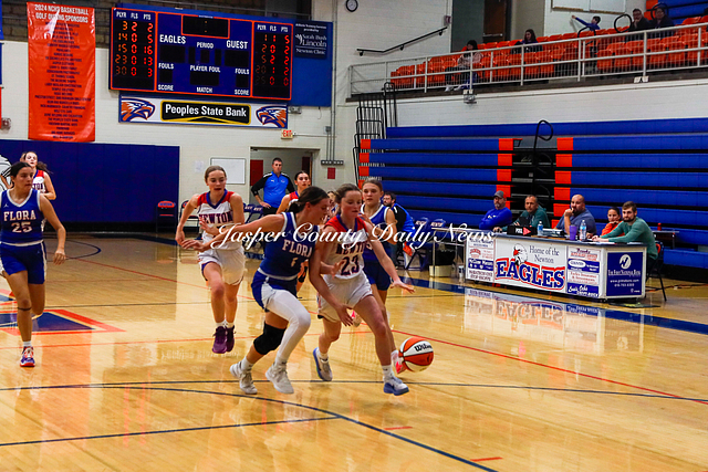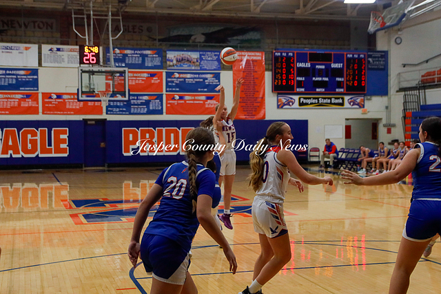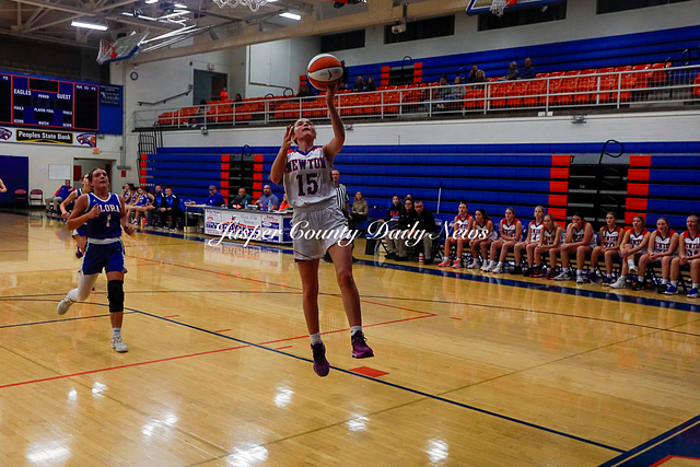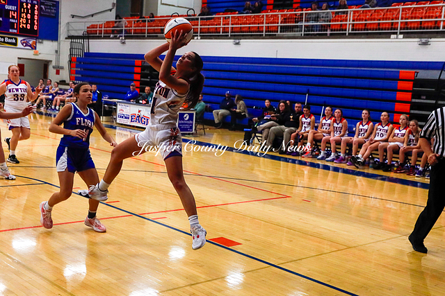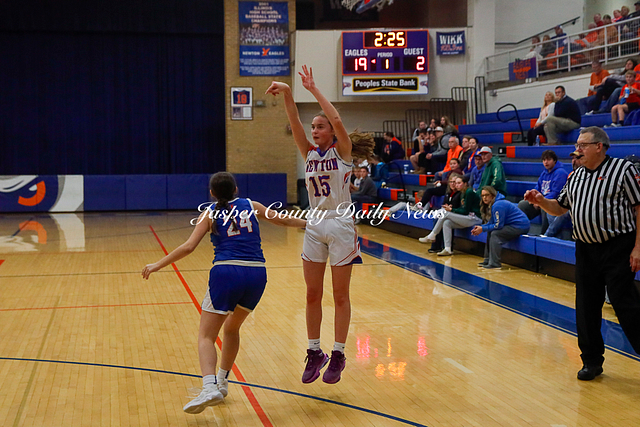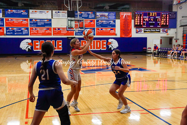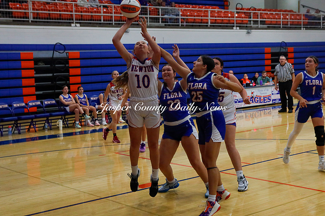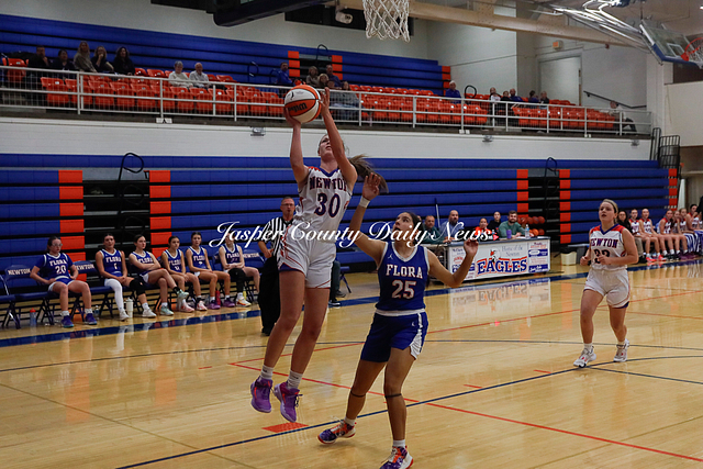 The Newton Lady Eagles are 3-0 after winning their first game of the Bob Kerans Tournament against Flora. The Eagles soared to victory with a first quarter score of 25-2 and continued to lead throughout the game until the final buzzer where the score was 52-19.