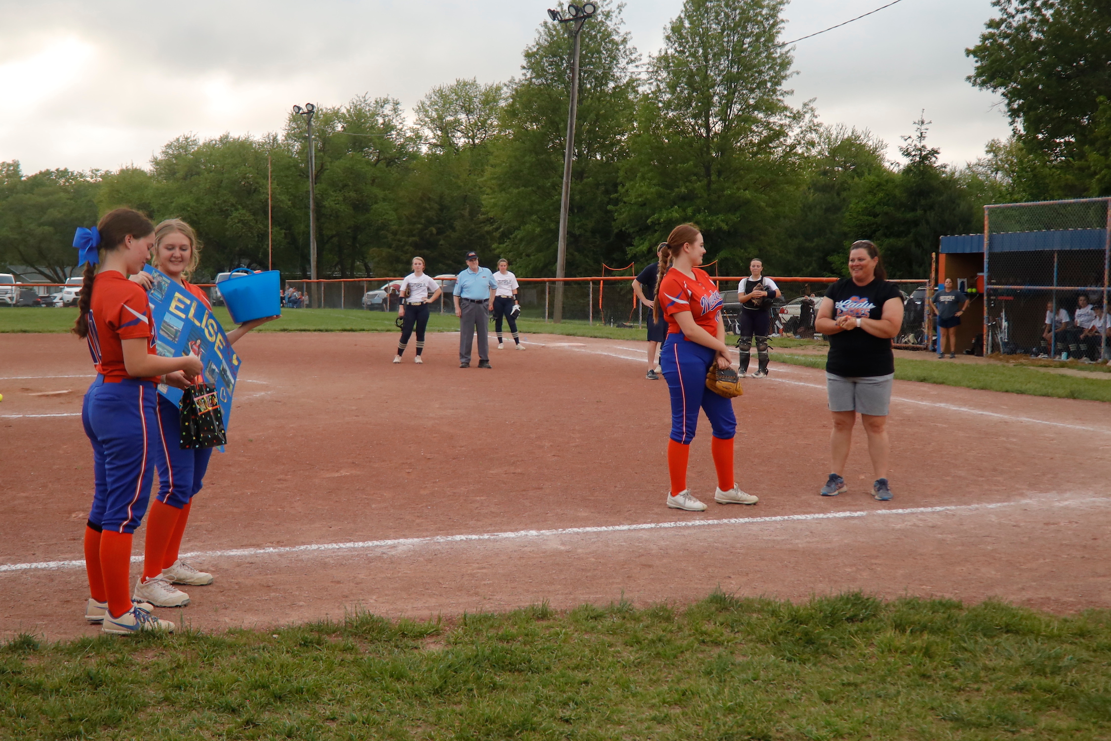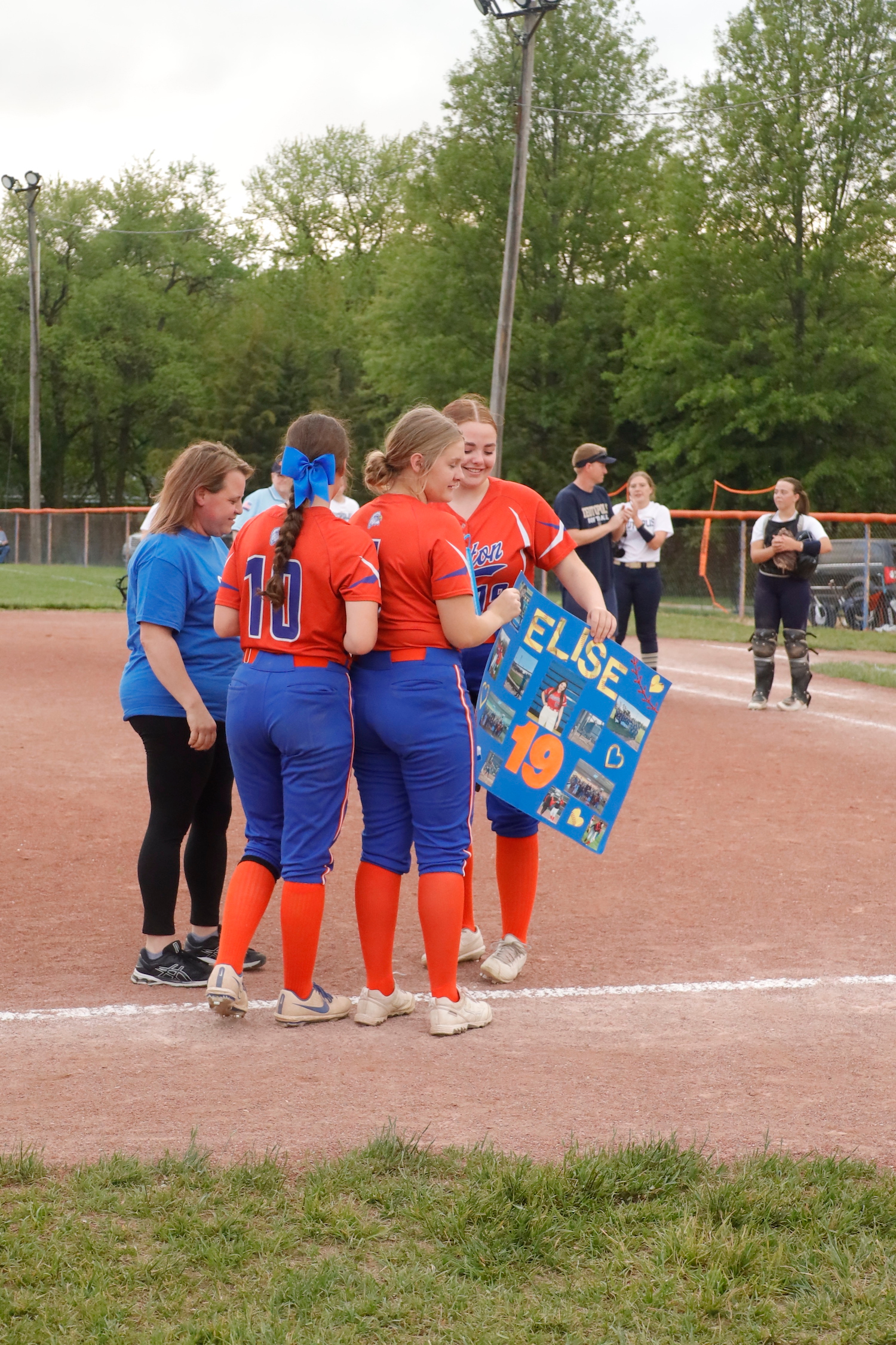 The Newton Lady Eagles recognized Craig Carr for his retirement as the Athletic Director of Newton Community High School. They also recognized Elise Denoncin, foreign exchange daughter of host parents Jeffrey and Kristie Finley, since she was sick on Senior Night.