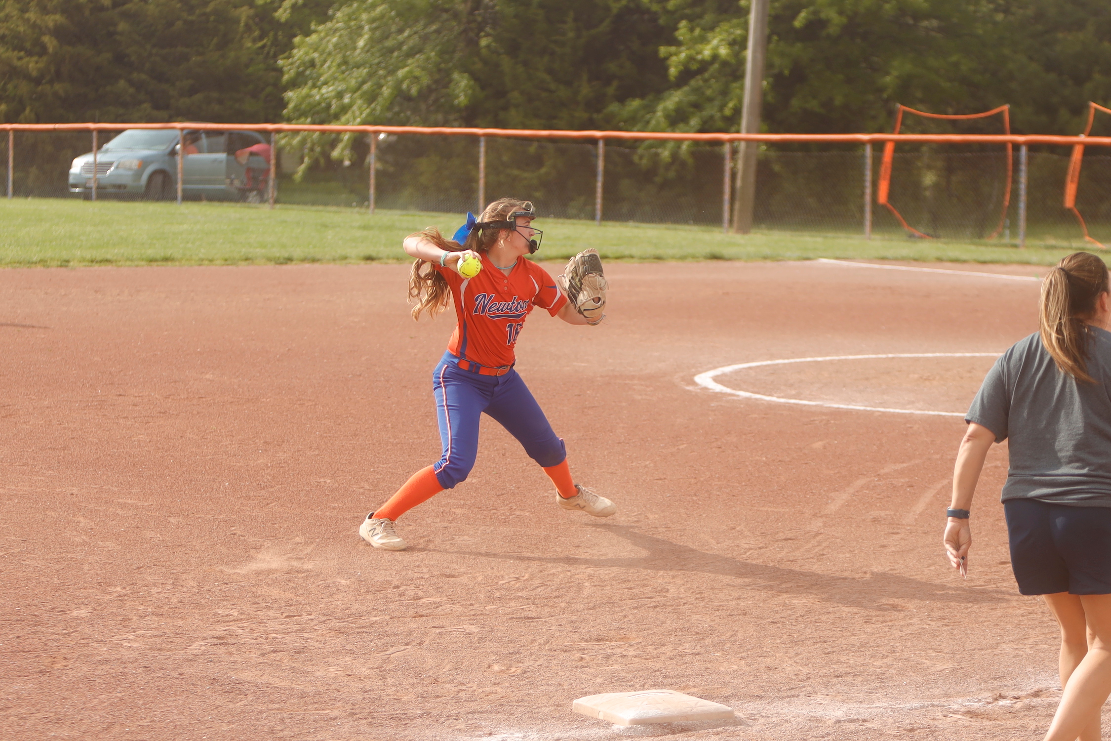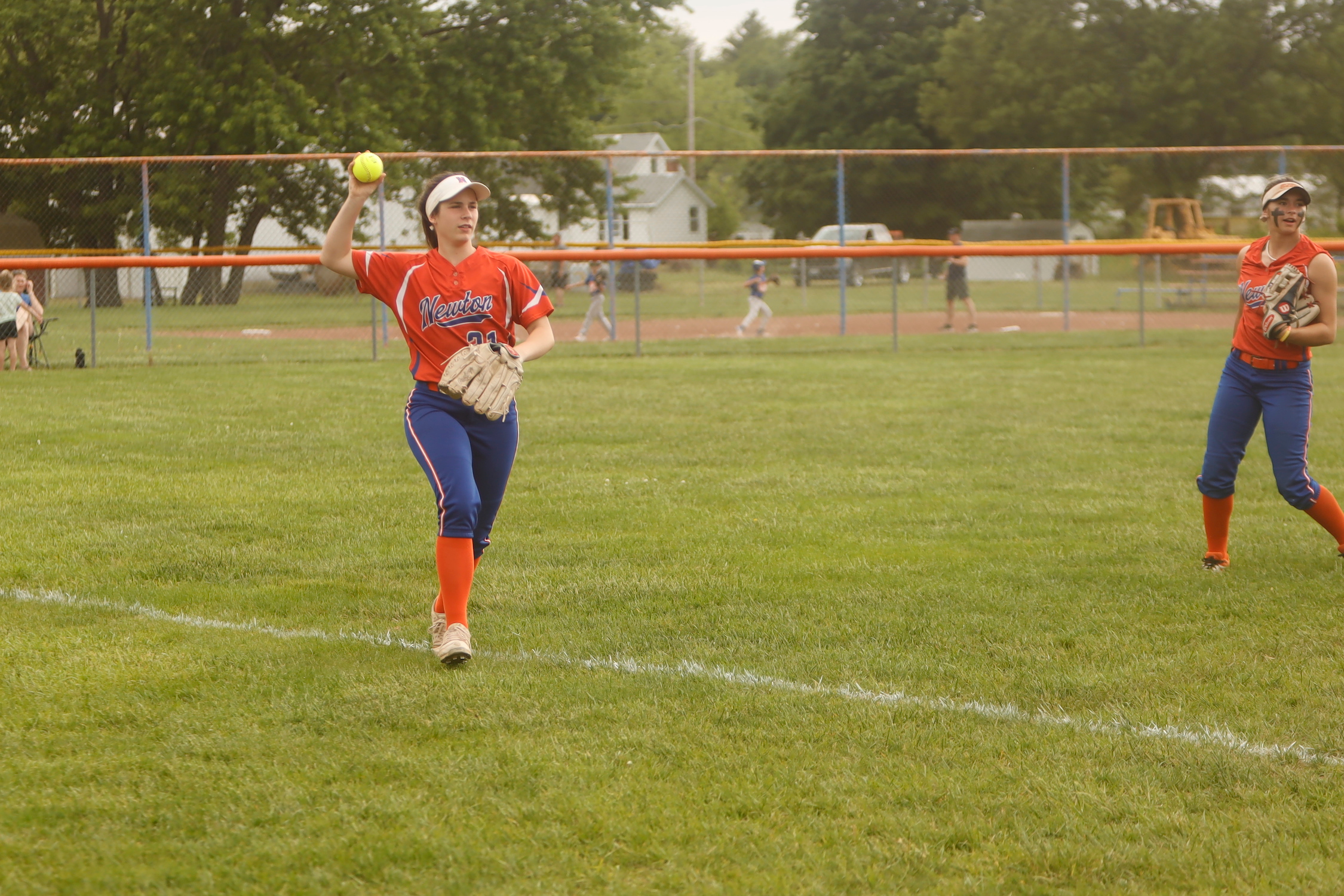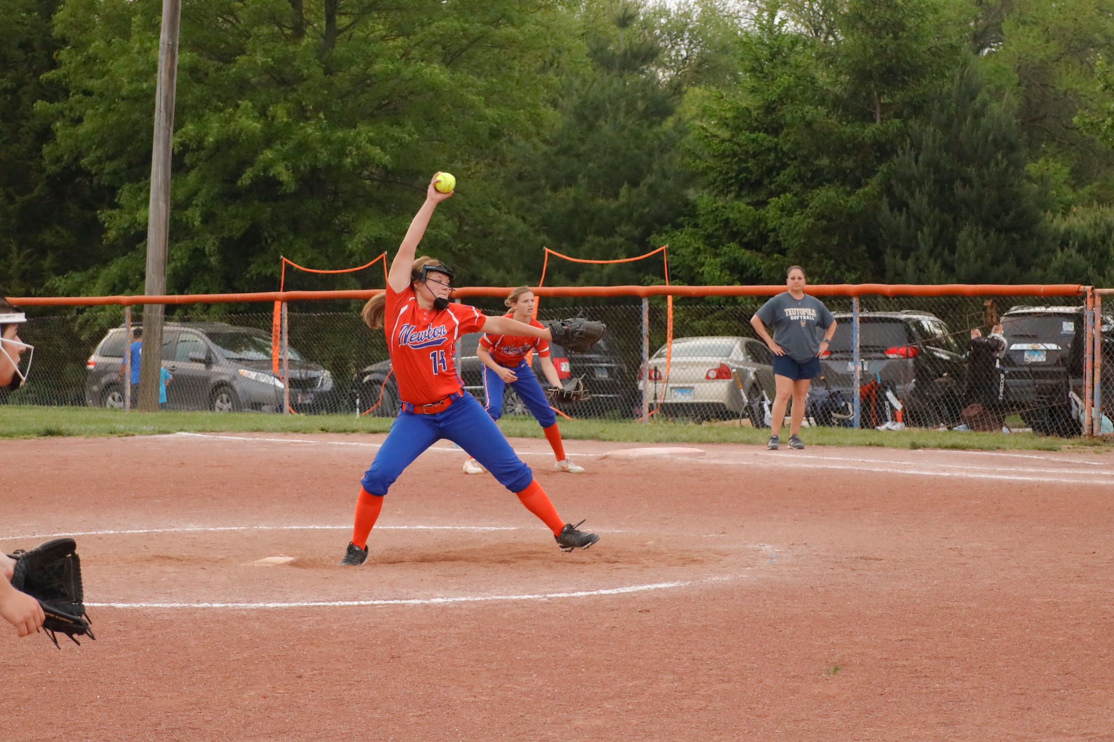 Kayla Kocher started the game for Newton Varsity Lady Eagles. The righty lasted five innings, allowing six hits and four runs while striking out three