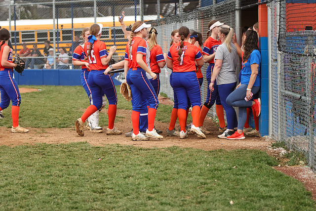 Claire Probst (#15) led the way, going 3-for-4 with a double and 4 RBIs.