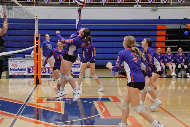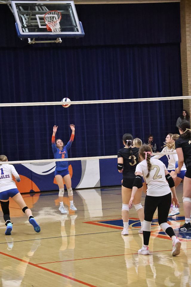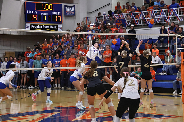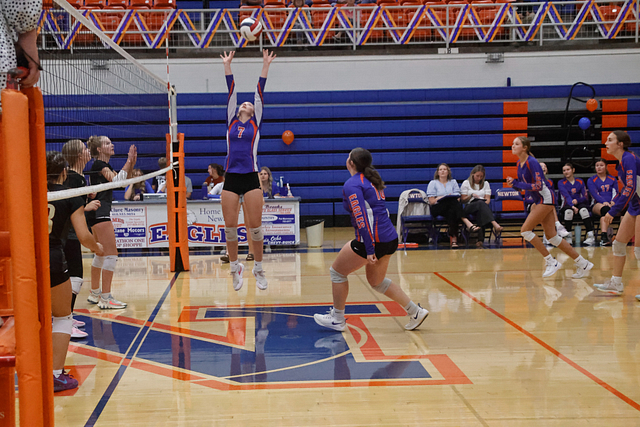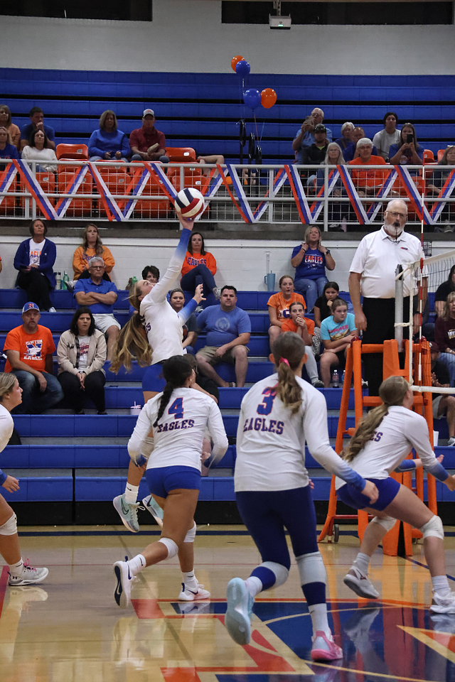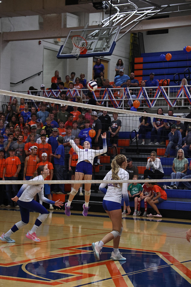 The Lady Eagles rebounded Wednesday night at Marshall, where both the JV and varsity teams secured victories. The JV won 29-27, 25-18, while the varsity squad battled back after dropping the opening set to win 20-25, 25-18, 25-19 — improving to 15-11 on the season.