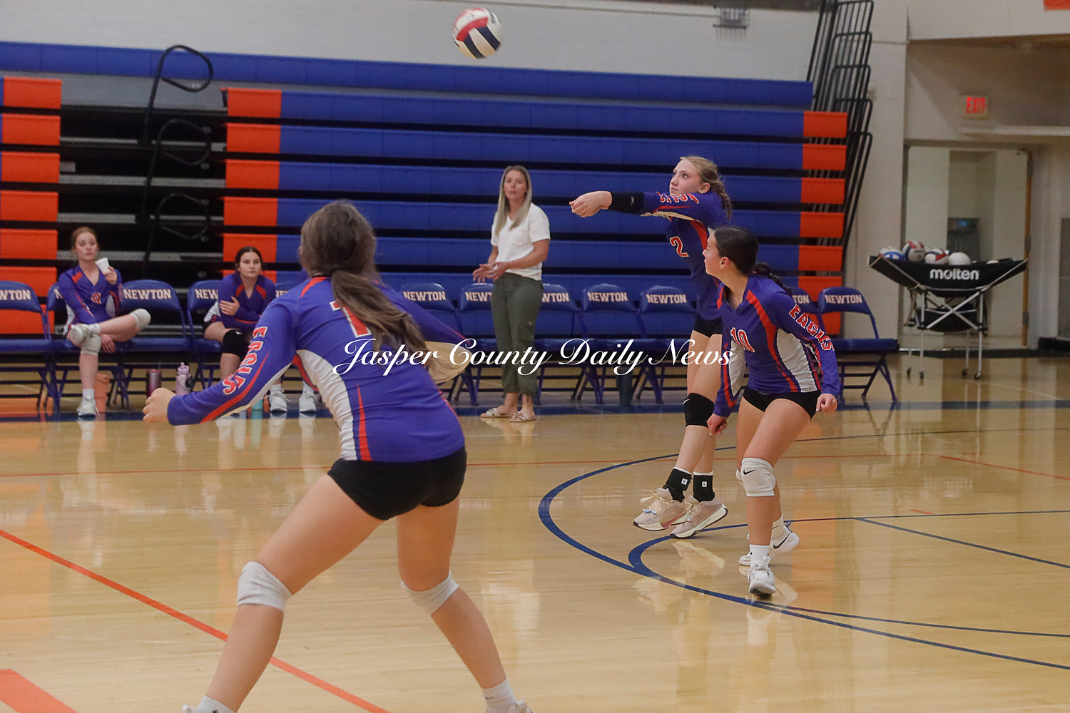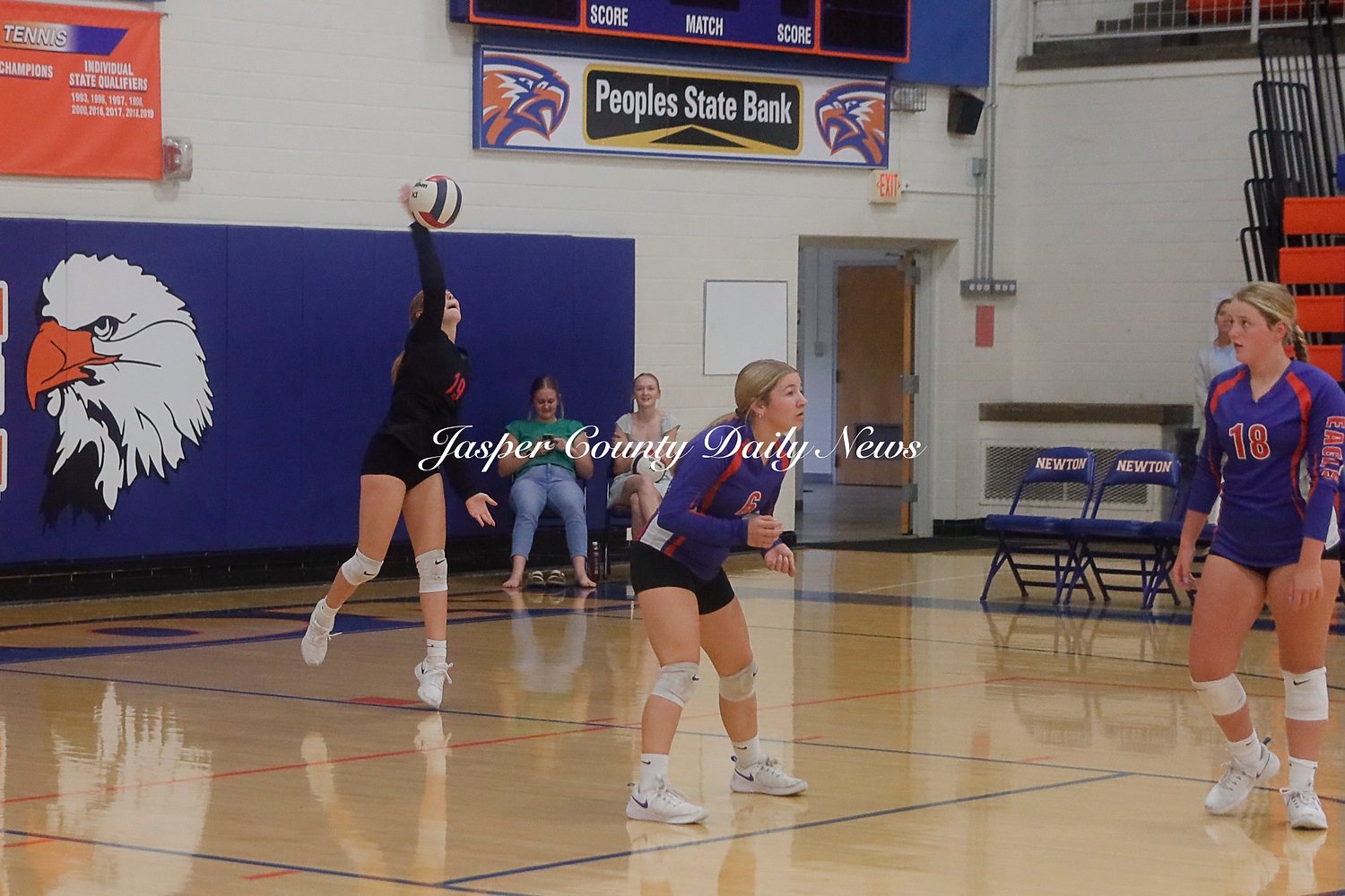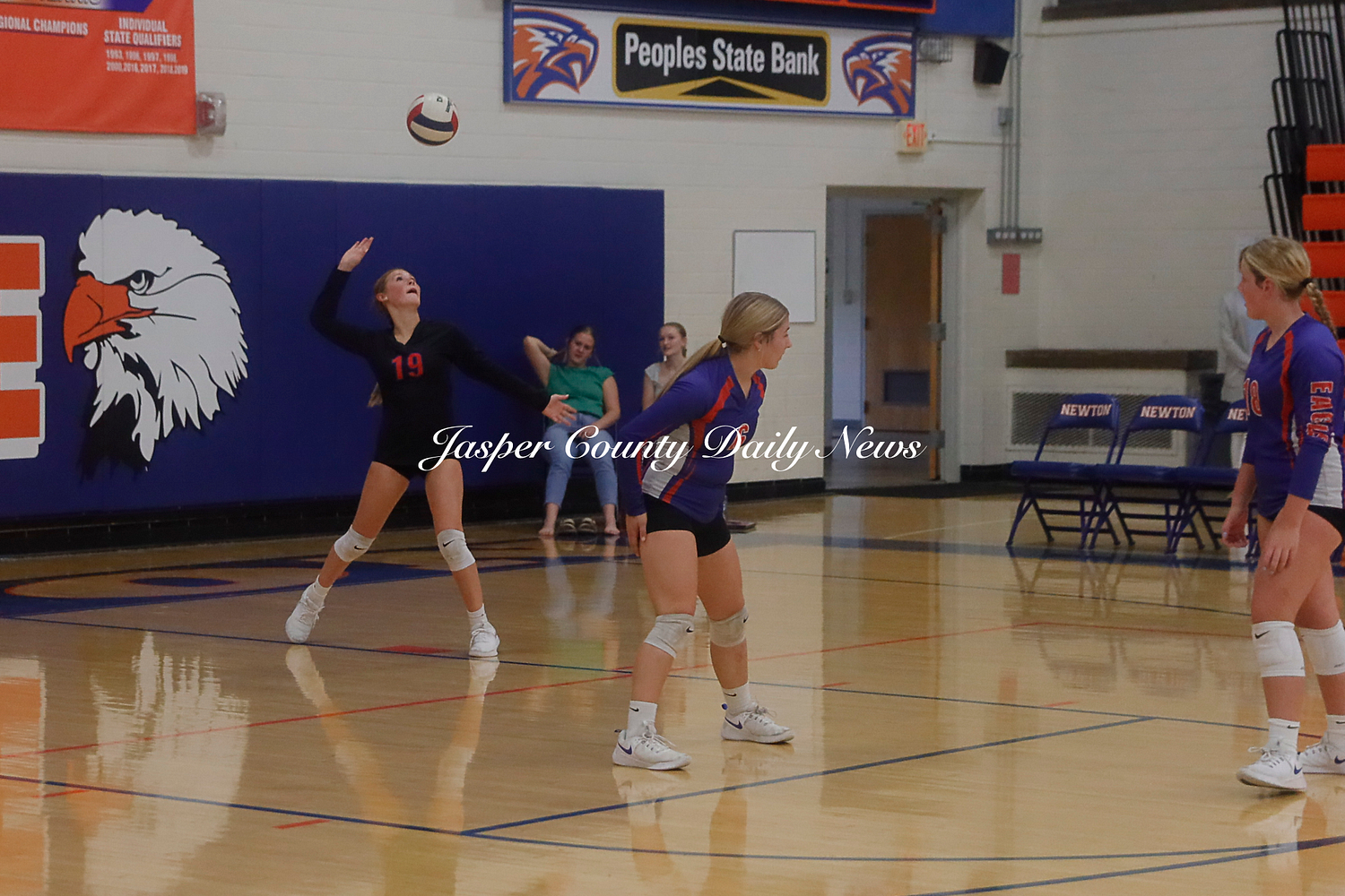 The Newton Lady Eagles won both their JV and Varsity games against Marshall. The Junior Varsity team won in three sets 25-11, 17-25, and 15-7. The varsity won in two sets of 35-21 and 25-19.
