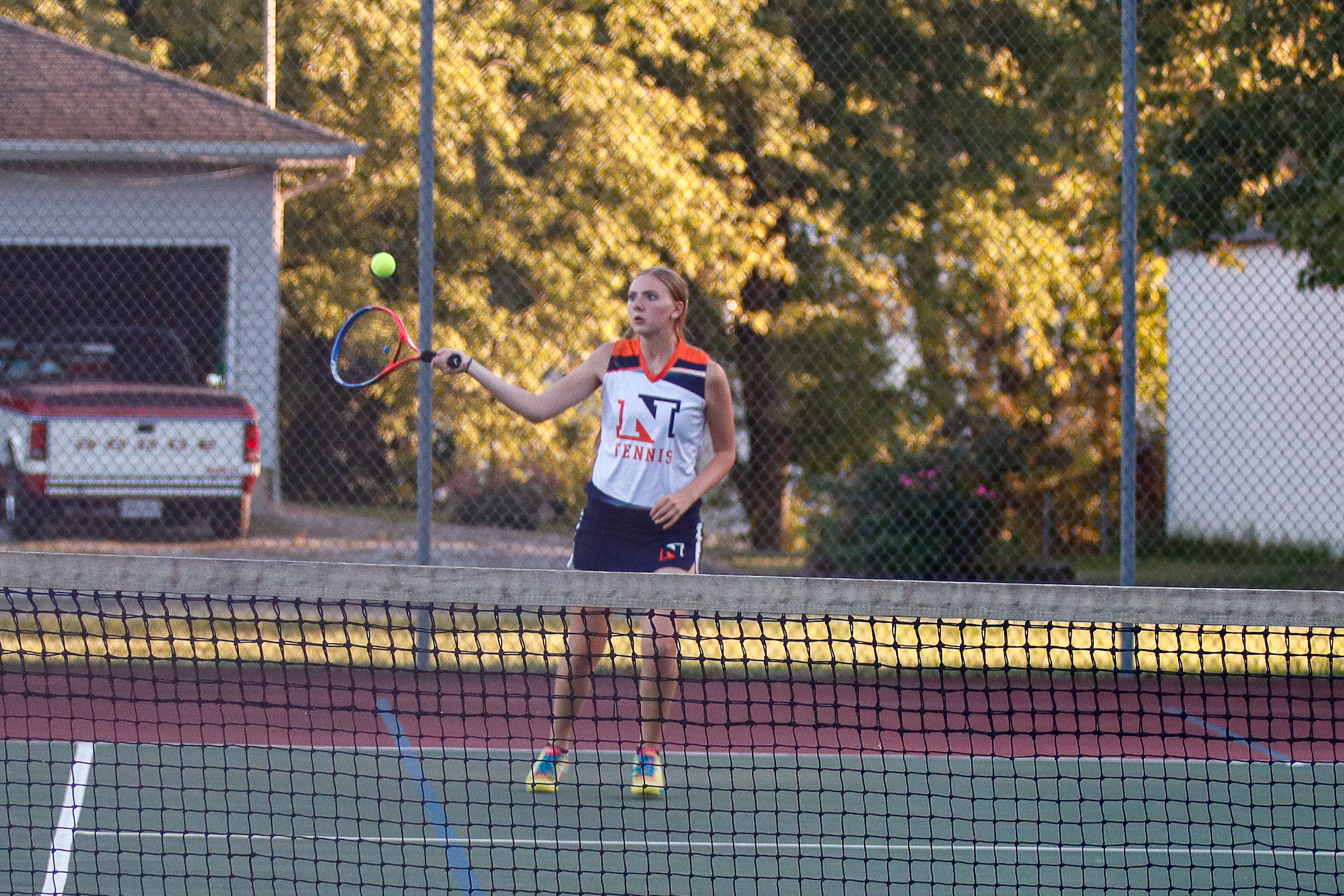 The Newton Lady Eagles Tennis team sweeps Mt Carmel with a final score of 9-0. All of the Lady Eagles won both their singles and doubles matches.