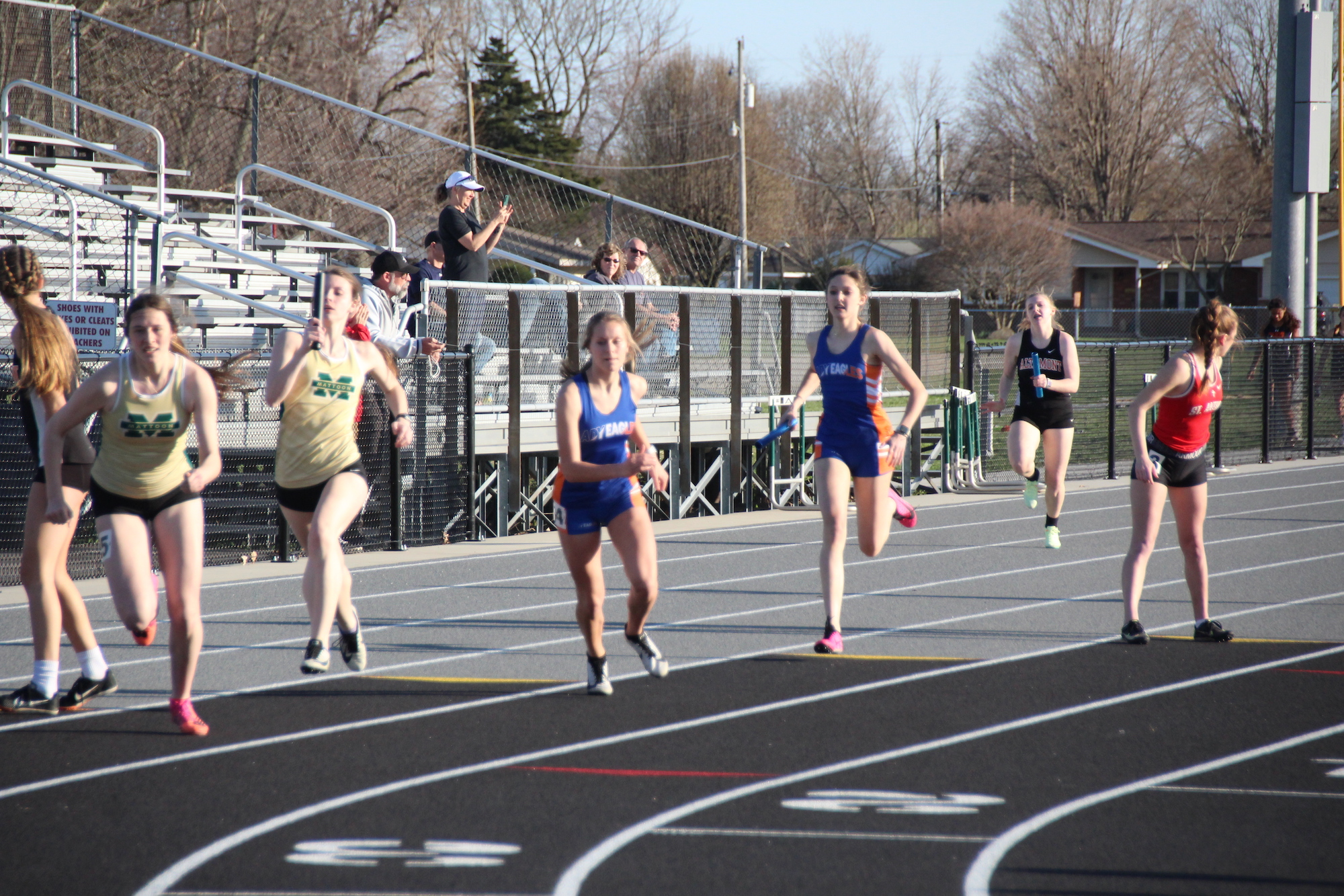The Newton Lady Eagles won this meet with 180 points. Mattoon scored second with 114 points. Olney placed third with 82.5 points. Effingham placed fourth with 75 points. Paris placed fifth with 53 points and Altamont placed sixth with 27 points.